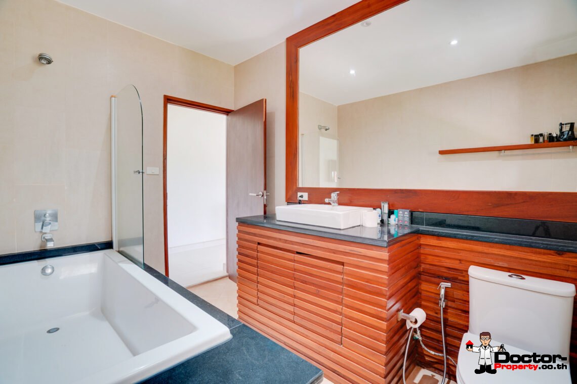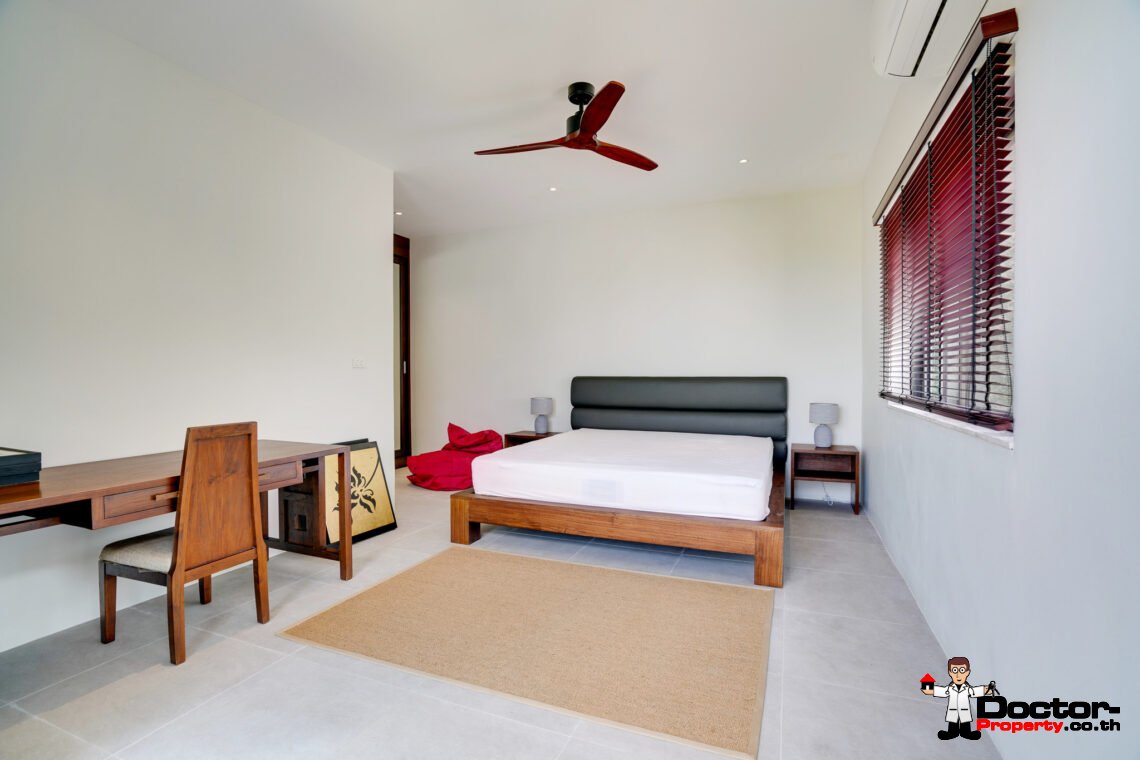 This stunning 4-bedroom pool villa, located in the serene area of Plai Laem, Koh Samui, offers an exceptional living experience with breathtaking sea views. Designed with high-end finishes and a contemporary style, this property boasts a spacious open-plan layout, perfect for relaxation and entertainment. Each of the four luxurious bedrooms comes with its private ensuite bathroom, ensuring comfort and privacy.