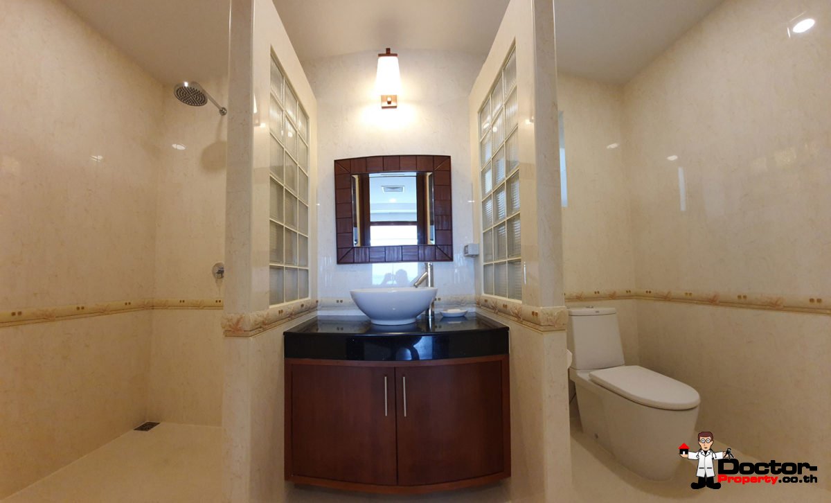 - Air-conditioned upper-level master bedroom (1) opens out to a large balcony. Ensuite bathroom with a two-person terrazzo bathtub. Built-in fitted wardrobe. His and her washbasin counters with top-grade gold speckled granite and built-in cabinets. Rainshower