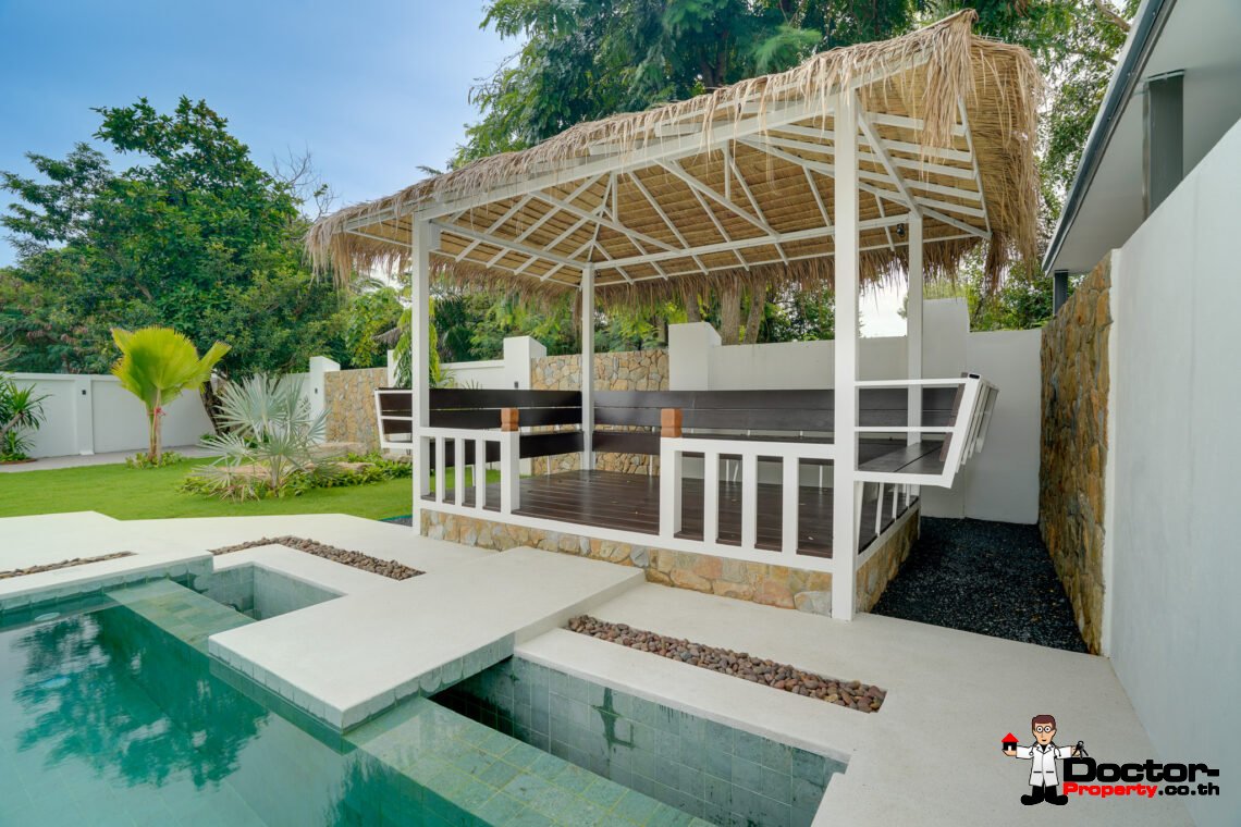 This beautifully renovated 4-bedroom villa in the heart of Bang Rak, Koh Samui, presents a rare opportunity to own a modern, unfurnished home on a spacious 712 sqm plot. Boasting a fresh, contemporary design. The villa is designed for maximum comfort, privacy, and convenience, featuring a private pool, open-plan living areas, and a large outdoor space perfect for entertaining or relaxing in the tropical paradise.