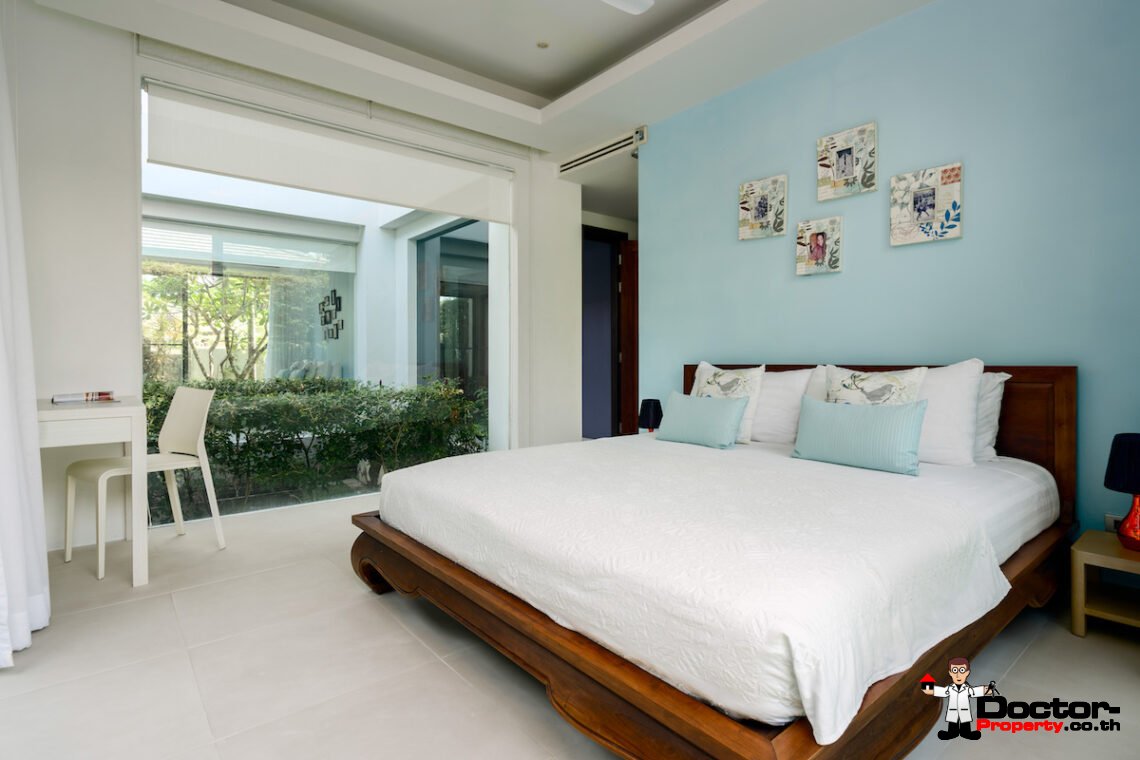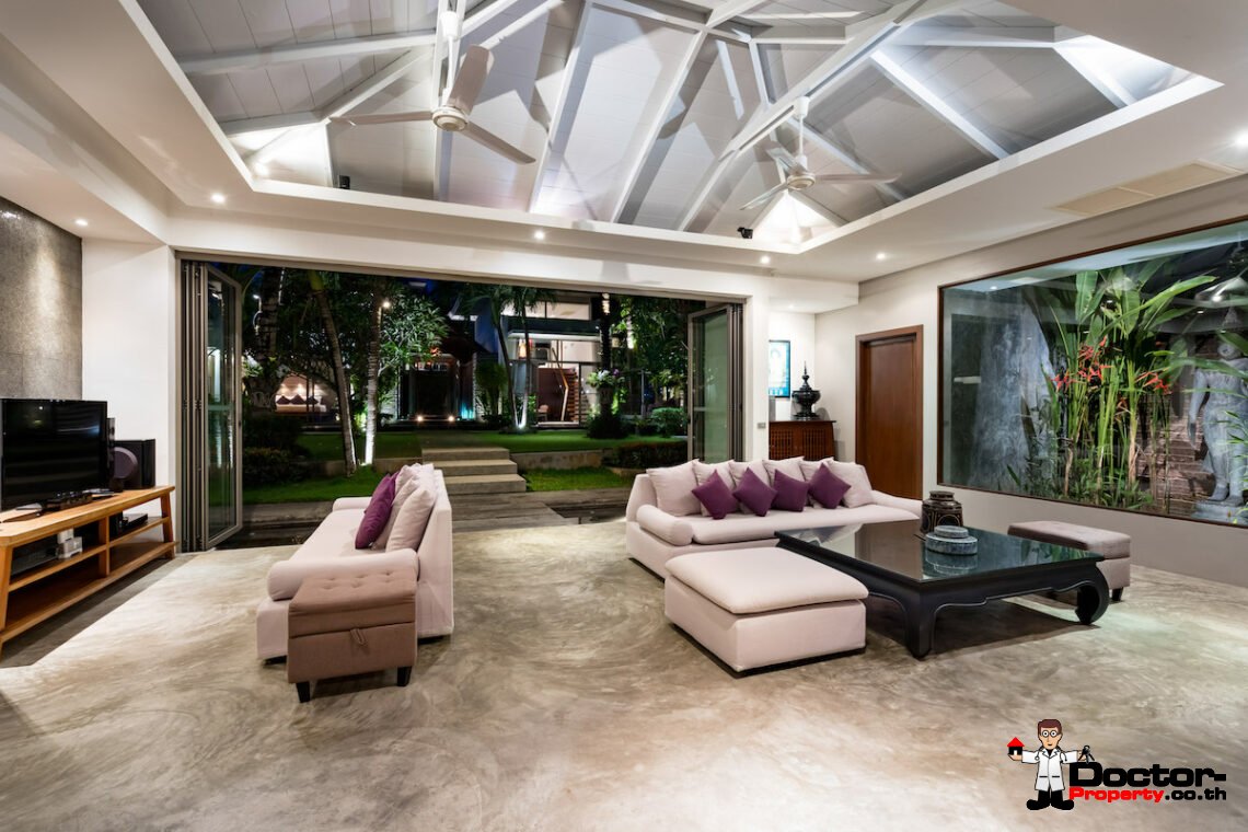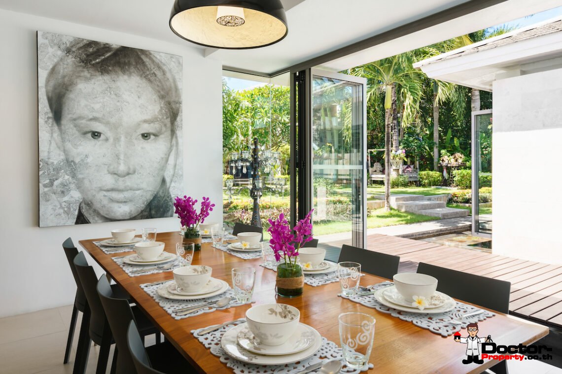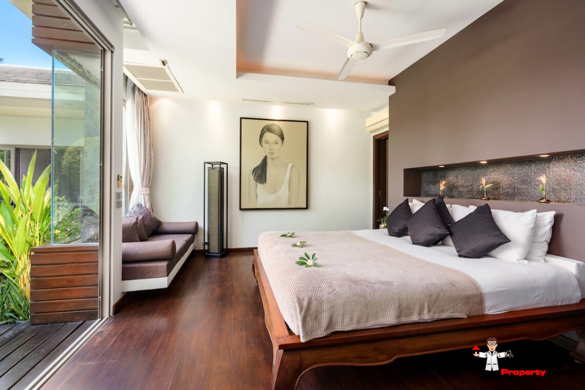 This beautiful beach villa consists of a total of 8 bedrooms and is designed in a modern design and was created with high-quality materials. The luxurious interiors (Philippe Stark – Italian luxury brand and Nouvelle Vague – Thai artist) have been perfectly harmonized and you will immediately feel at home in this beach villa. This property also includes 2 infinity pools and a beautifully landscaped garden with a sala right on the beach.