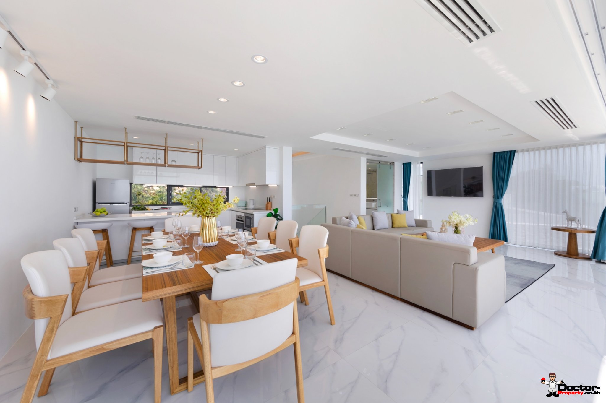 The master suite enjoys direct access to the pool terrace and uninterrupted sea views, while the additional bedrooms are generously proportioned, each with en‑suite facilities. A modern kitchen, ample storage, and landscaped surroundings further enhance the villa’s appeal. The design balances functionality with luxury, making it ideal for permanent residence or as a high‑yield holiday rental investment.