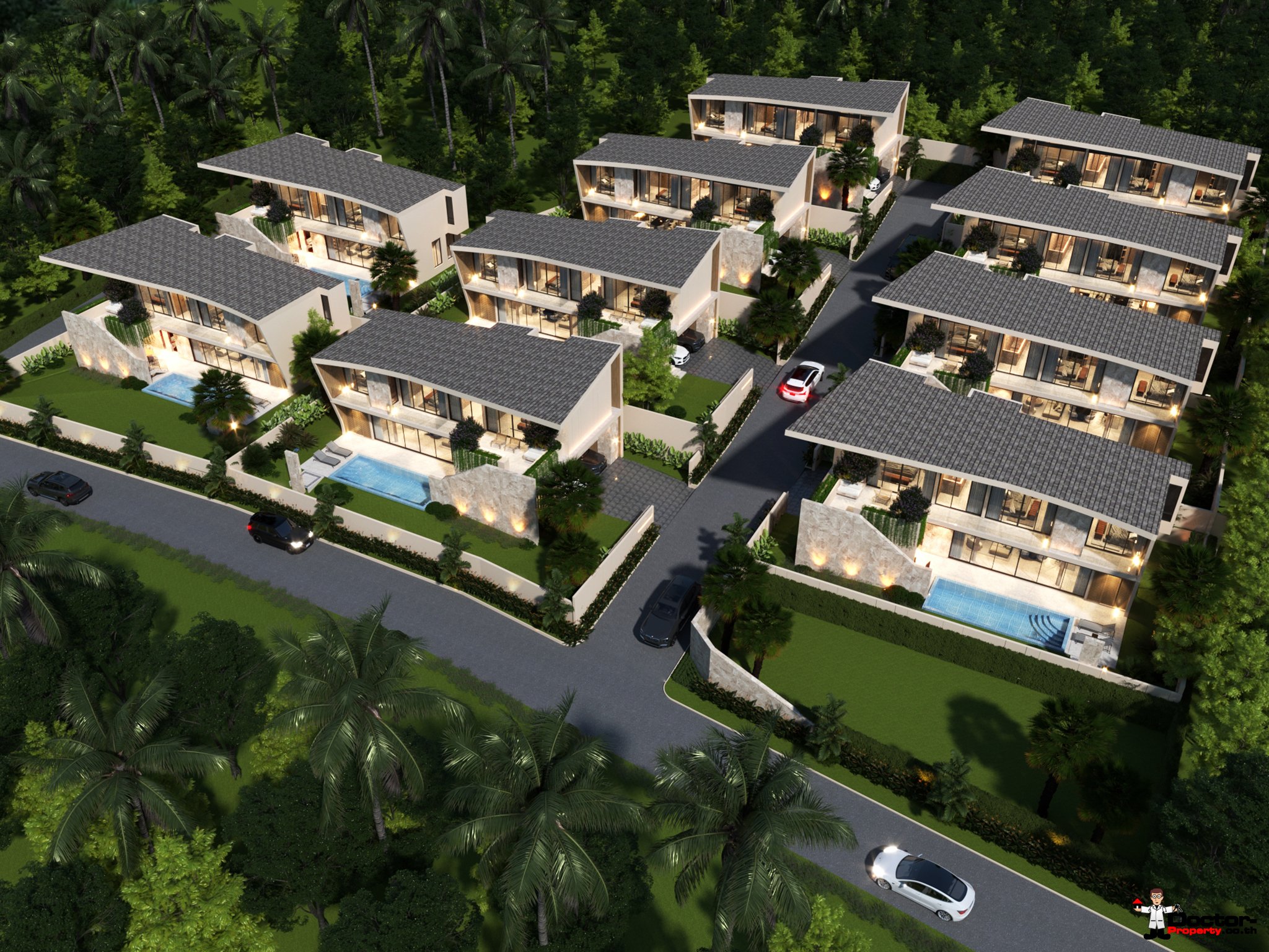Two-Storey Villas Nestled just 500 meters from Lamai Beach, this boutique development presents an exclusive collection of 10 two-storey villas, thoughtfully designed to redefine modern tropical living. Each residence features spacious interiors, open-plan layouts, and seamless connections to outdoor spaces, complemented by lush landscaping and underground electricity infrastructure. With three bedrooms, three-and-a-half bathrooms, a private swimming pool, landscaped garden, and a second-floor terrace ideal for sunset views, these villas offer both elegance and functionality. High-quality construction and superior craftsmanship ensure lasting value, making them an exceptional choice for families, couples, or investors seeking a premium retreat in Koh Samui.