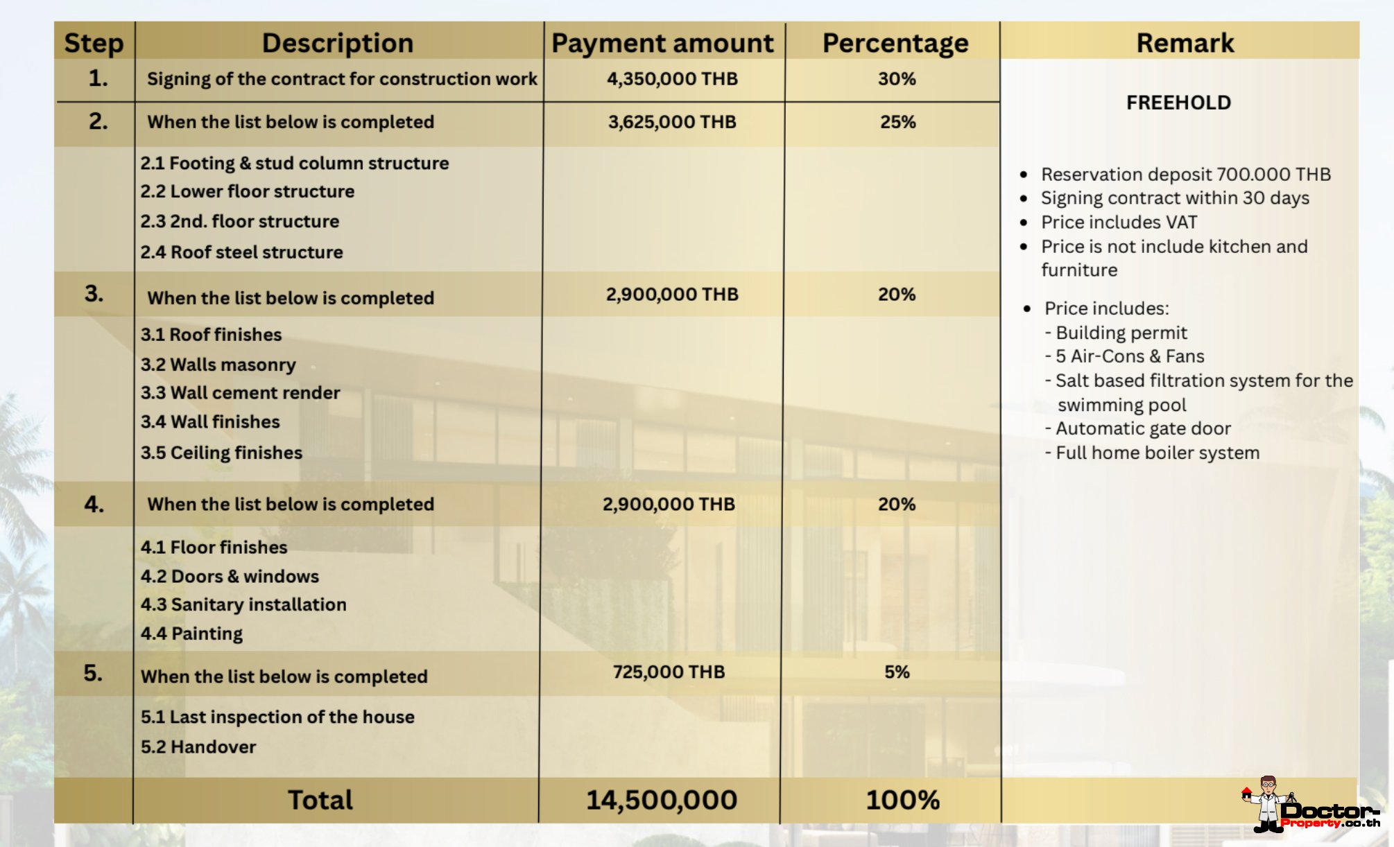 - Furniture Package: 1,300,000 THB