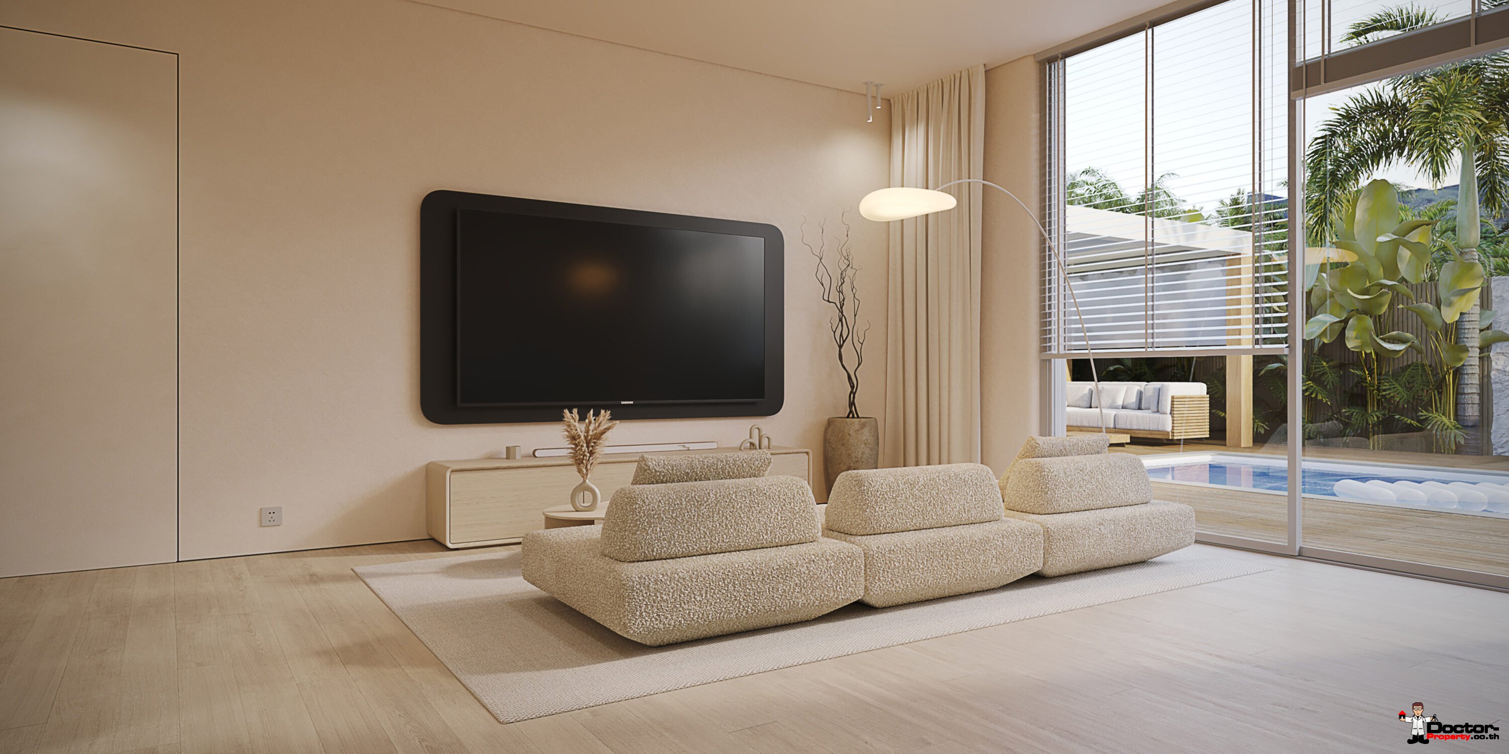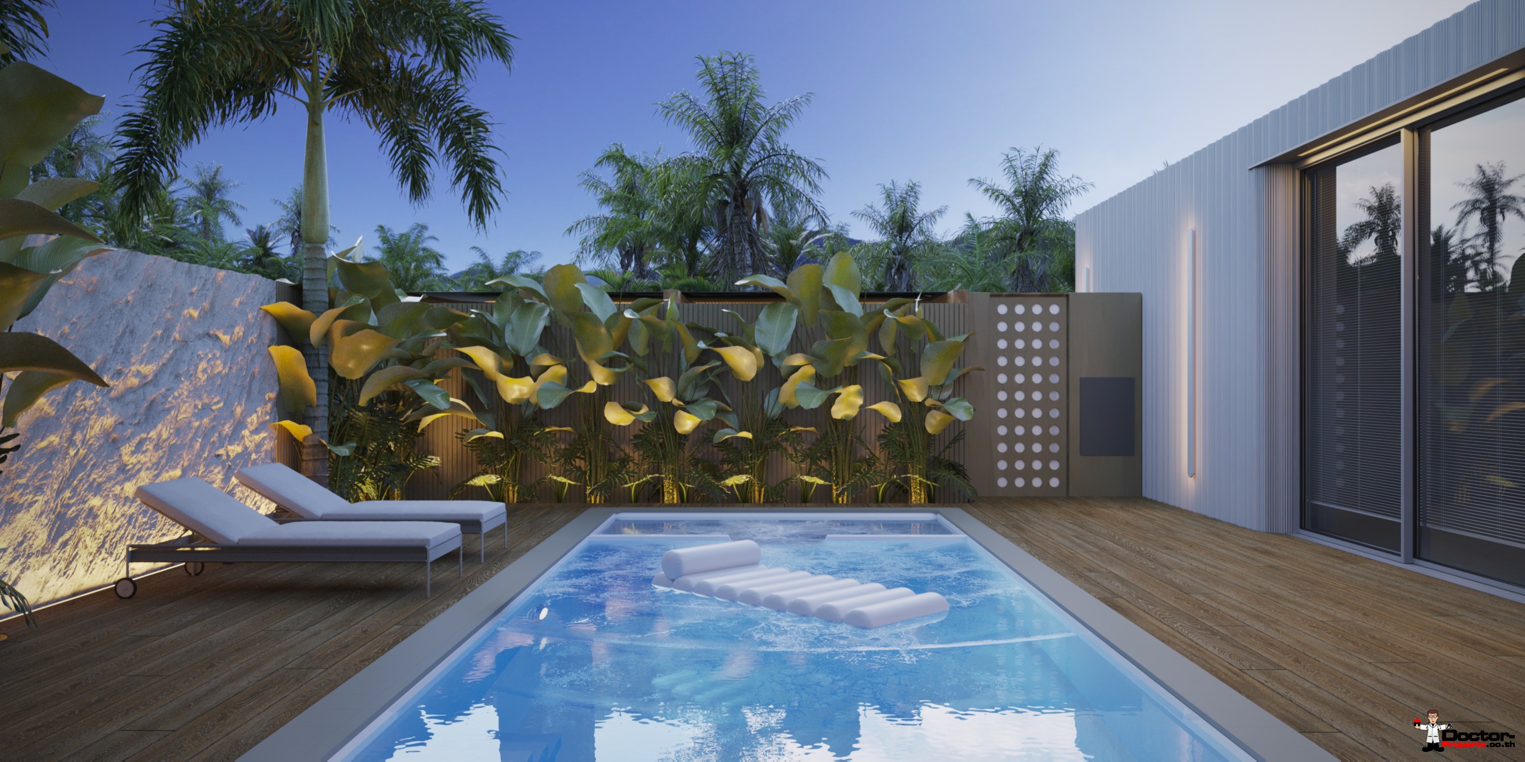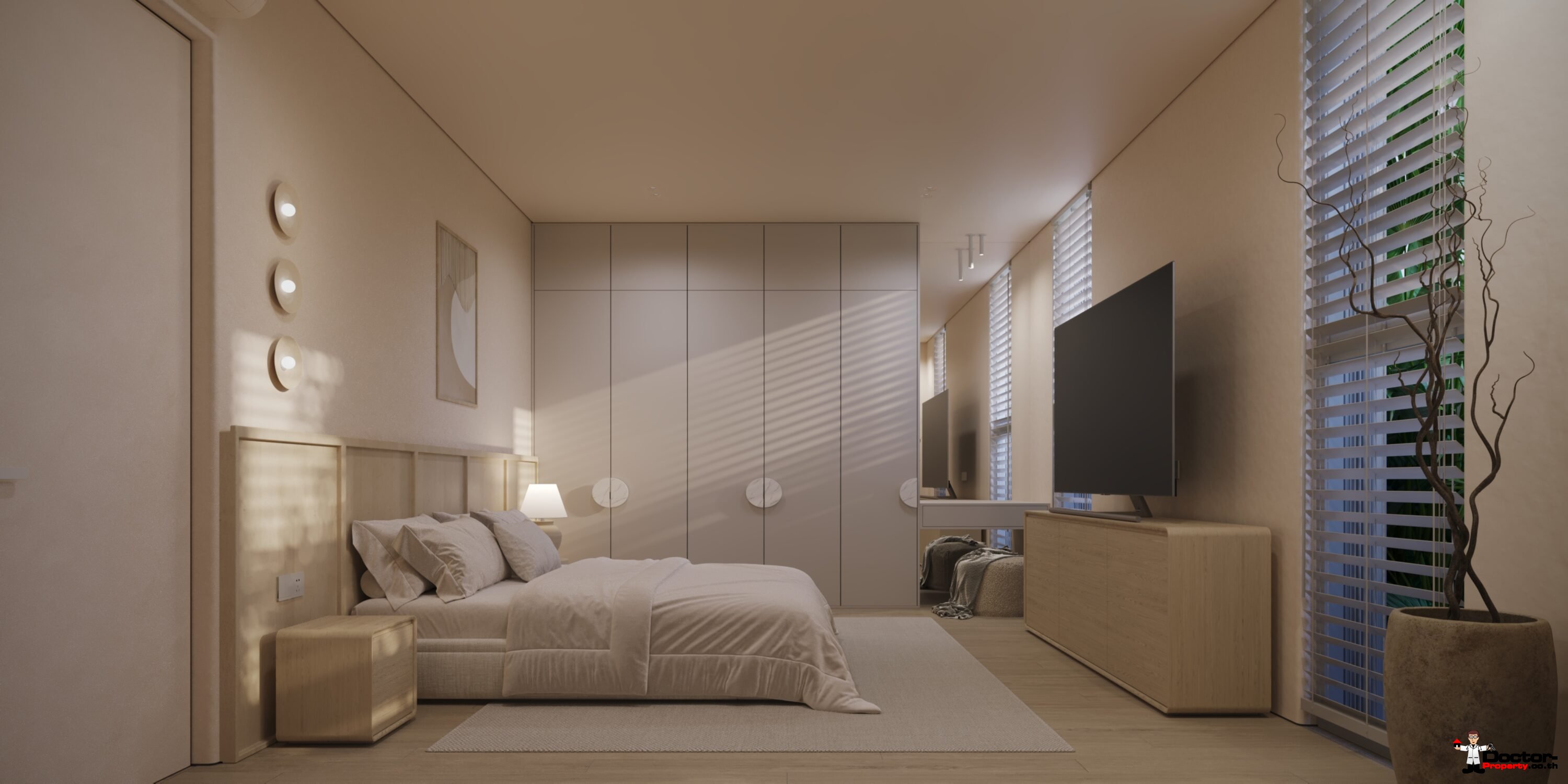 This exclusive two‑bedroom pool villa designed with a harmonious fusion of modern architecture and Wabi‑Sabi inspired elegance, the residence combines comfort, practicality, and sophistication. The property features spacious interiors, premium finishes, and a private swimming pool with integrated jacuzzi, all meticulously crafted to match the 3D renderings with real materials and furnishings. Built with a steel frame structure and energy‑efficient insulated panels, the villa ensures durability, sustainability, and long‑lasting quality.