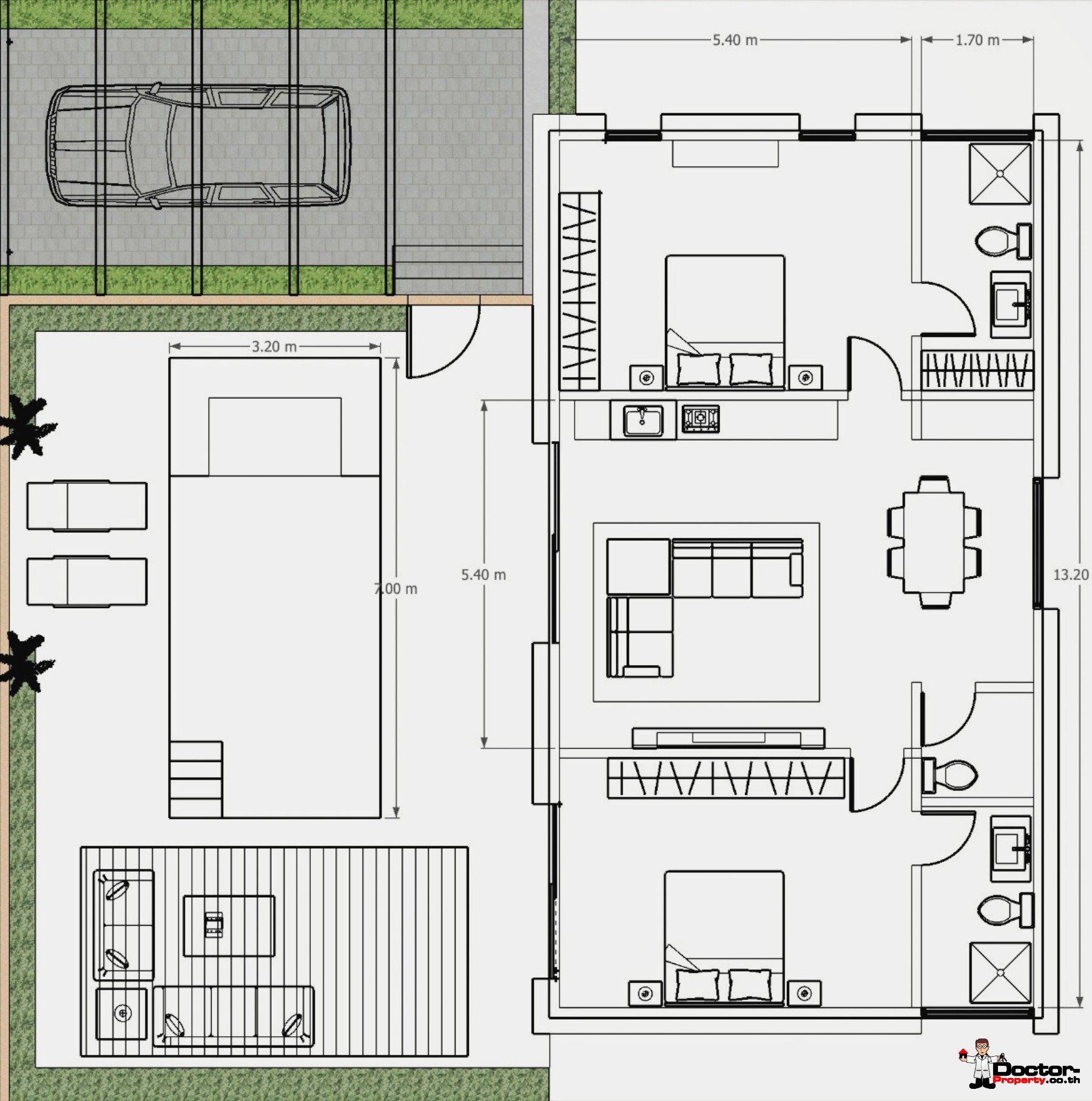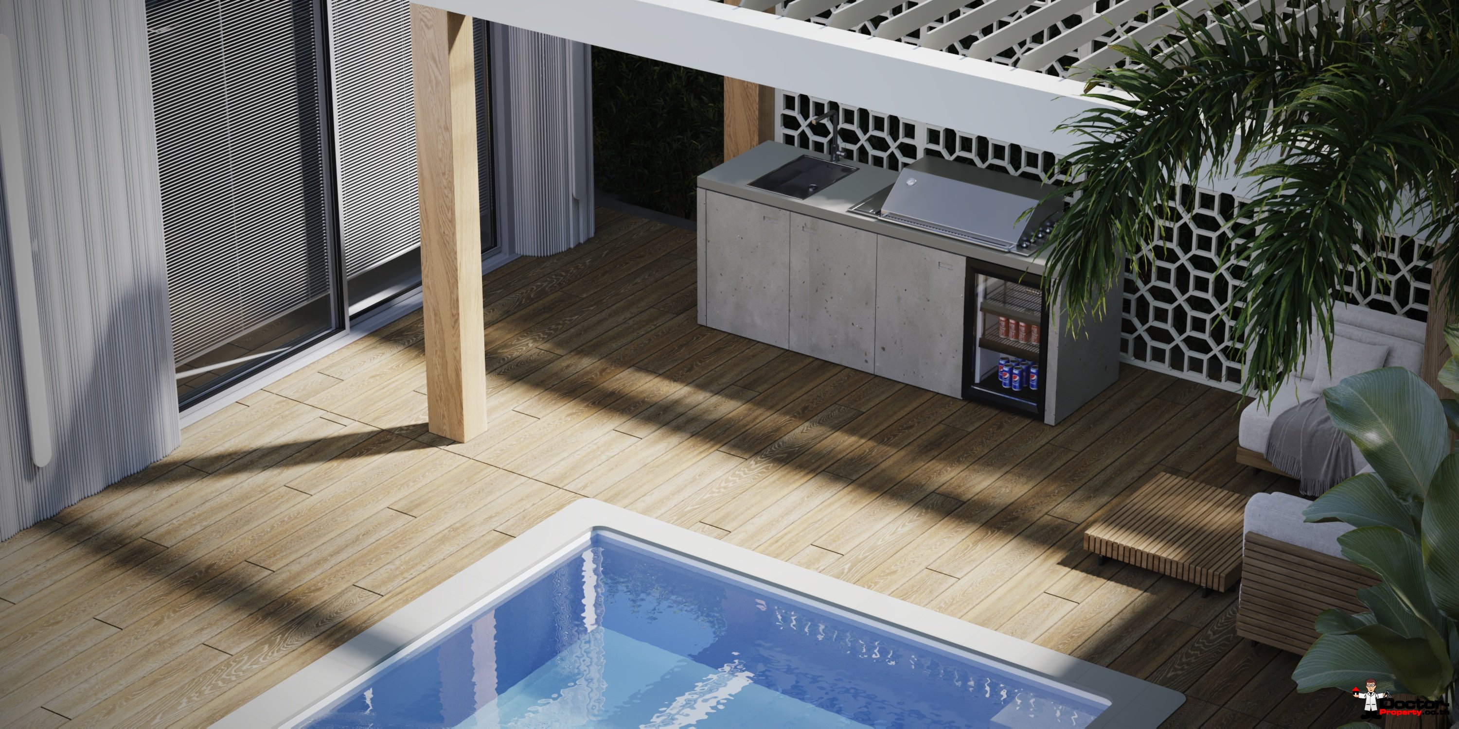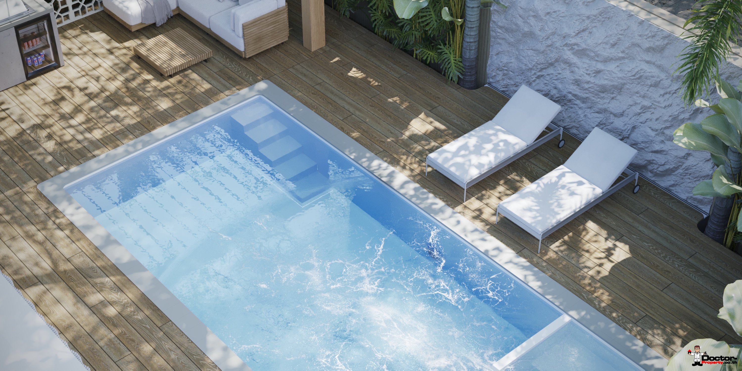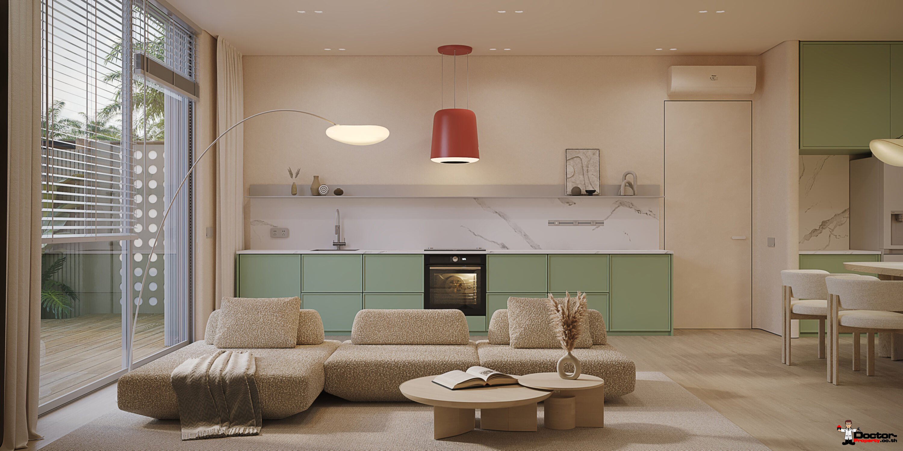 This exclusive two‑bedroom pool villa designed with a harmonious fusion of modern architecture and Wabi‑Sabi inspired elegance, the residence combines comfort, practicality, and sophistication. The property features spacious interiors, premium finishes, and a private swimming pool with integrated jacuzzi, all meticulously crafted to match the 3D renderings with real materials and furnishings. Built with a steel frame structure and energy‑efficient insulated panels, the villa ensures durability, sustainability, and long‑lasting quality.