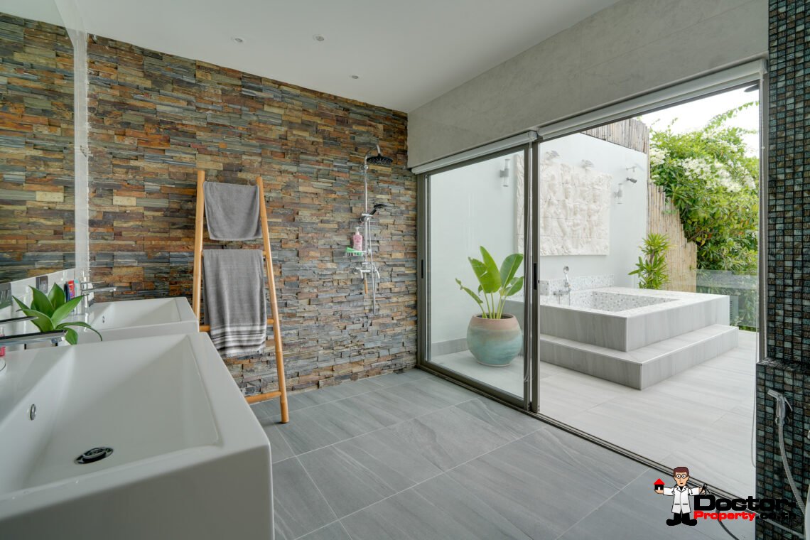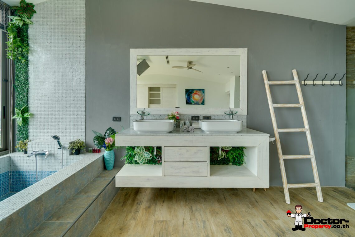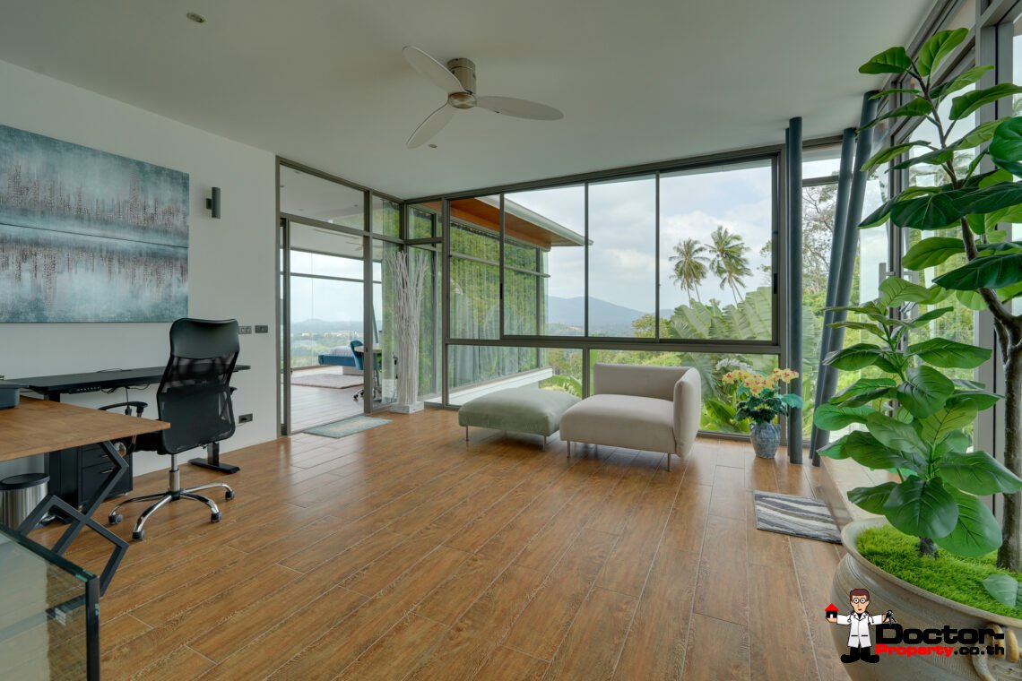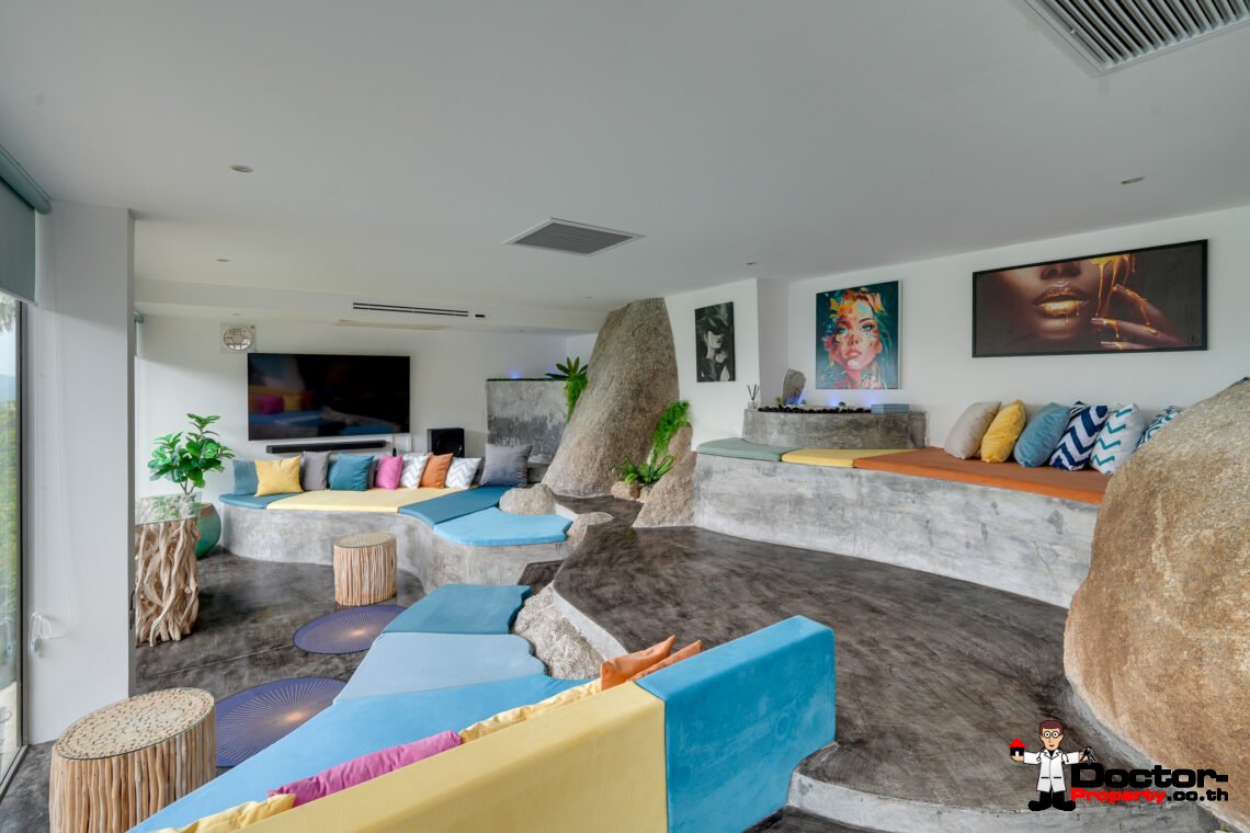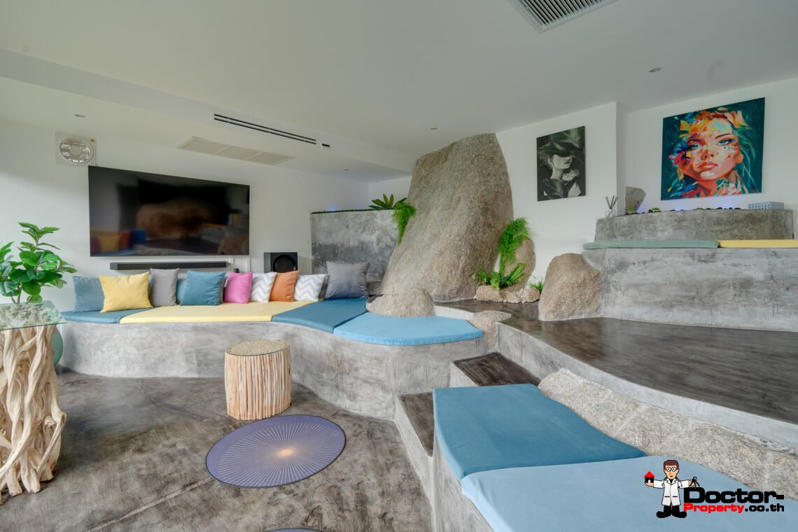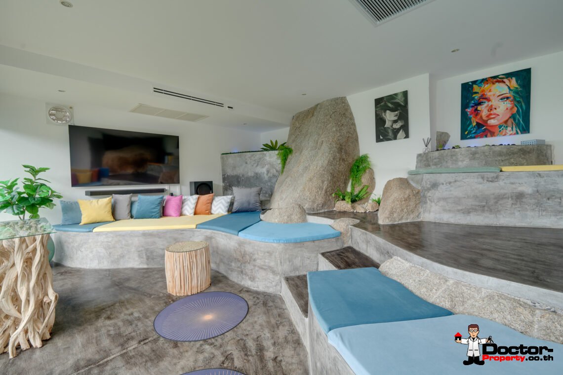 Convenience and accessibility further enhance the desirability of this residence. Hua Thanon provides a peaceful setting whilst remaining well connected to key destinations across the island. The villa is situated within close proximity to pristine beaches, traditional markets, and a diverse selection of dining establishments. Chaweng, renowned for its vibrant nightlife and extensive shopping facilities, is approximately a 25–30 minute drive away, while Samui International Airport offers effortless travel connections. This harmonious blend of modern design, expansive living space, and panoramic vistas ensures that the villa represents both an exceptional lifestyle choice and a sound investment opportunity within Koh Samui’s flourishing property market.