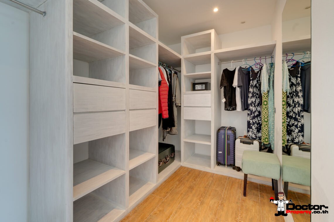 Presenting a distinguished two‑storey villa in the serene enclave of Hua Thanon, Koh Samui. Set upon an expansive land plot of 800 square metres, this villa has been meticulously crafted to harmonise contemporary architecture with the island’s natural splendour. Offering a generous living area of 381 square metres, the property provides ample space for refined family living and sophisticated entertaining. Comprising three bedrooms and three and a half bathrooms, each finished to an exceptional standard, the villa embodies comfort, elegance, and modern tropical design.