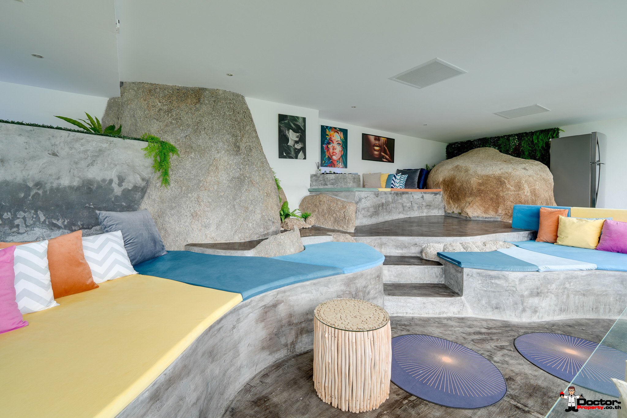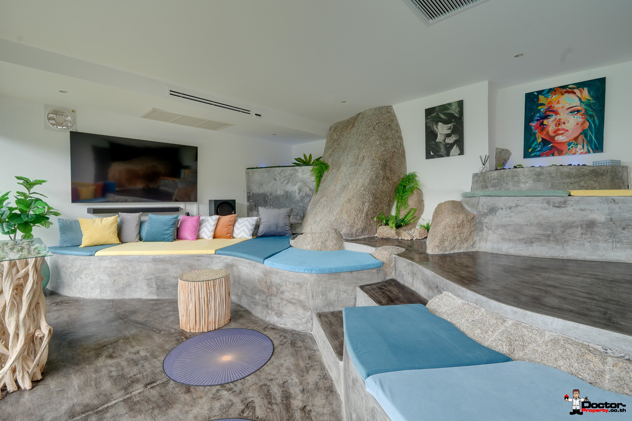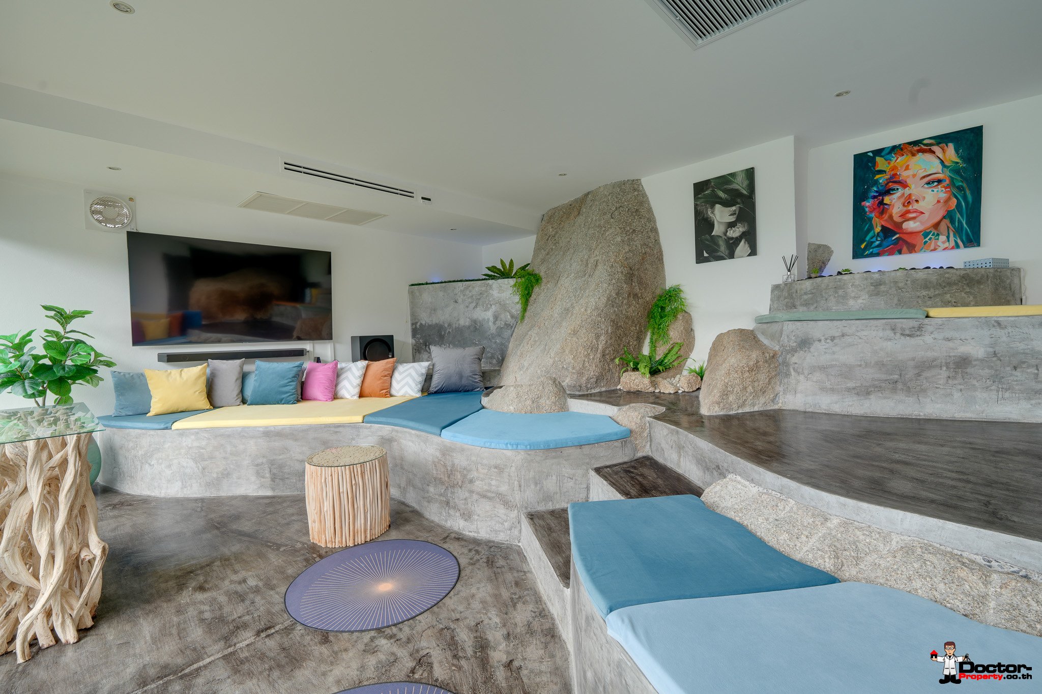 Convenience and accessibility further enhance the desirability of this residence. Hua Thanon provides a peaceful setting whilst remaining well connected to key destinations across the island. The villa is situated within close proximity to pristine beaches, traditional markets, and a diverse selection of dining establishments. Chaweng, renowned for its vibrant nightlife and extensive shopping facilities, is approximately a 25–30 minute drive away, while Samui International Airport offers effortless travel connections. This harmonious blend of modern design, expansive living space, and panoramic vistas ensures that the villa represents both an exceptional lifestyle choice and a sound investment opportunity within Koh Samui’s flourishing property market.