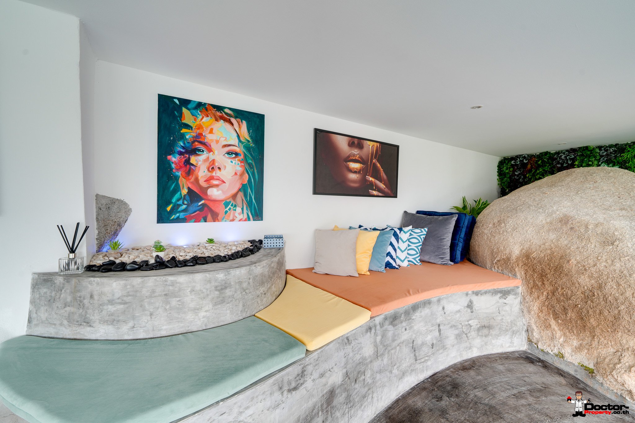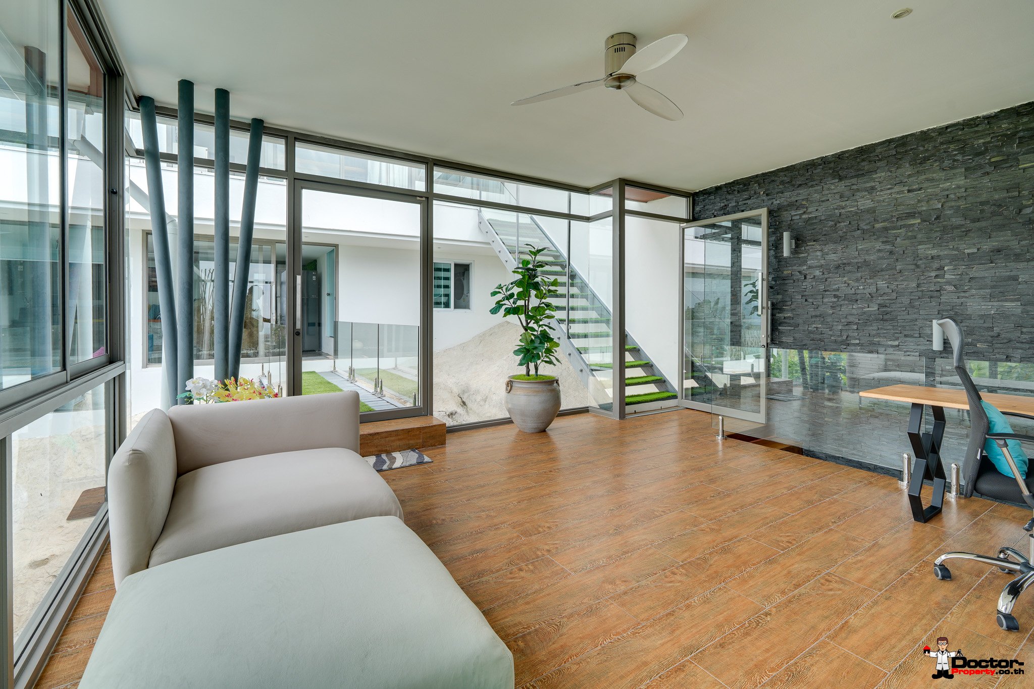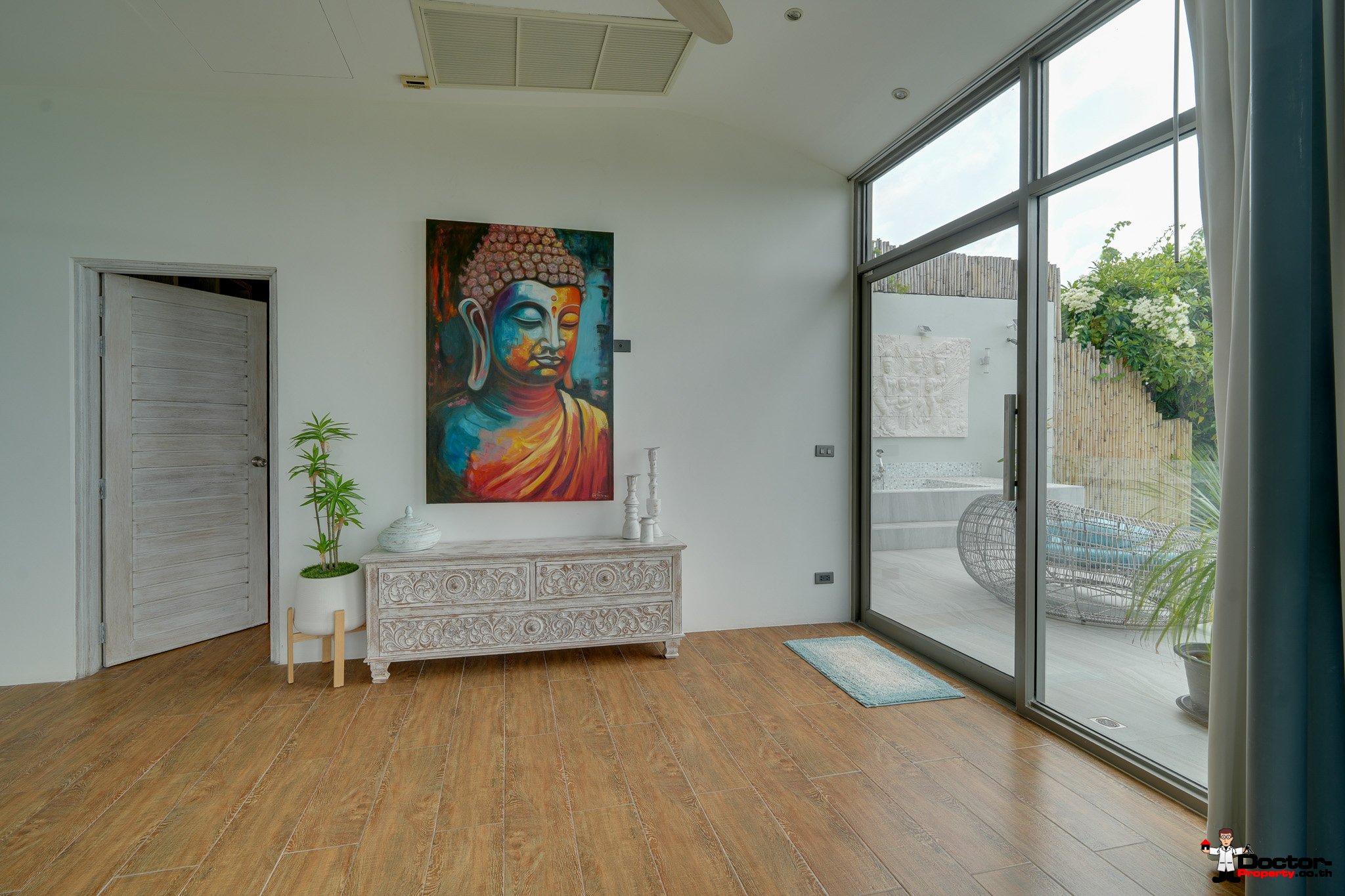 Convenience and accessibility further enhance the desirability of this residence. Hua Thanon provides a peaceful setting whilst remaining well connected to key destinations across the island. The villa is situated within close proximity to pristine beaches, traditional markets, and a diverse selection of dining establishments. Chaweng, renowned for its vibrant nightlife and extensive shopping facilities, is approximately a 25–30 minute drive away, while Samui International Airport offers effortless travel connections. This harmonious blend of modern design, expansive living space, and panoramic vistas ensures that the villa represents both an exceptional lifestyle choice and a sound investment opportunity within Koh Samui’s flourishing property market.