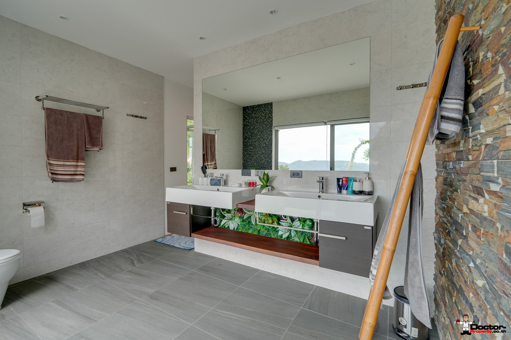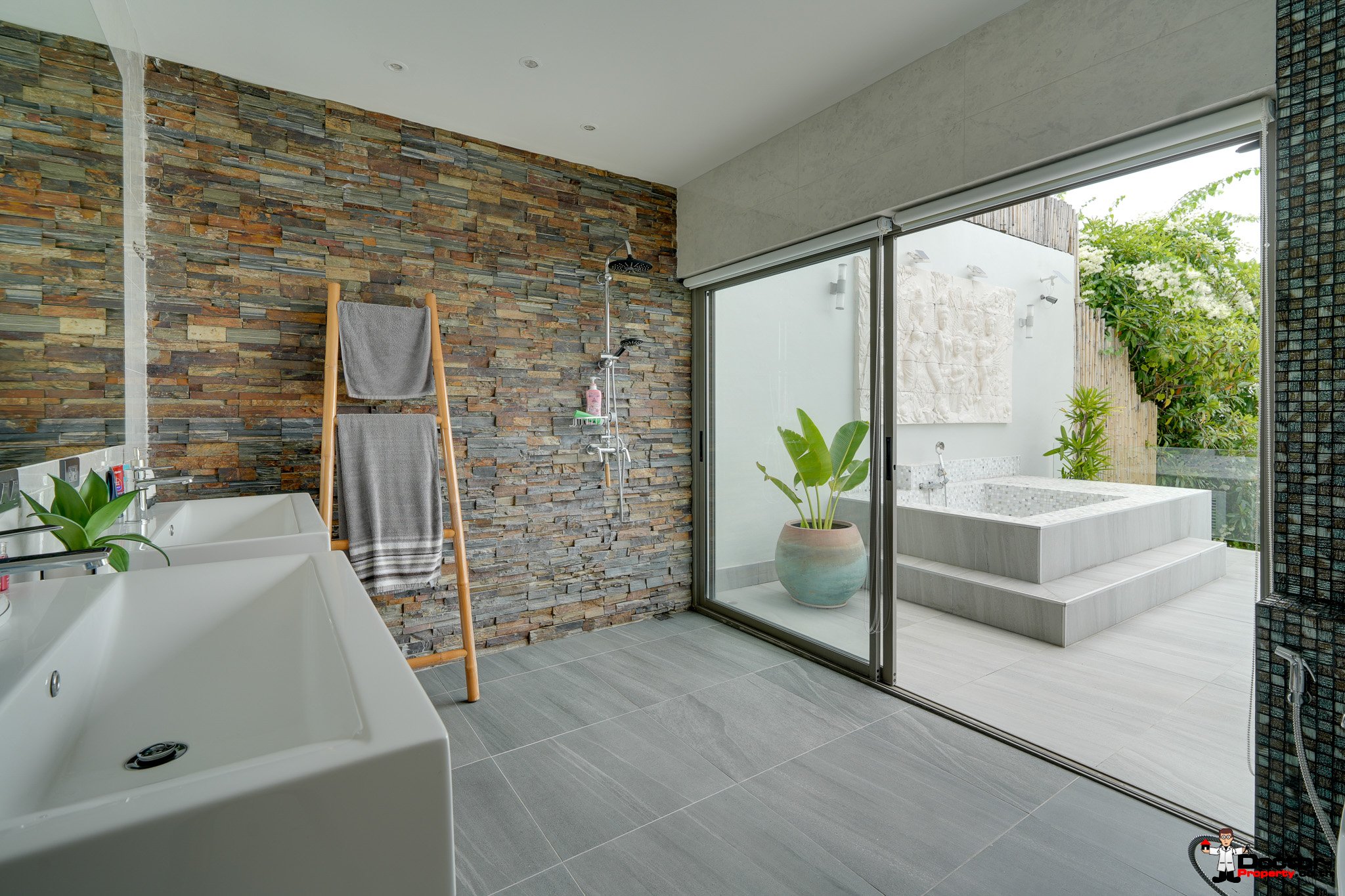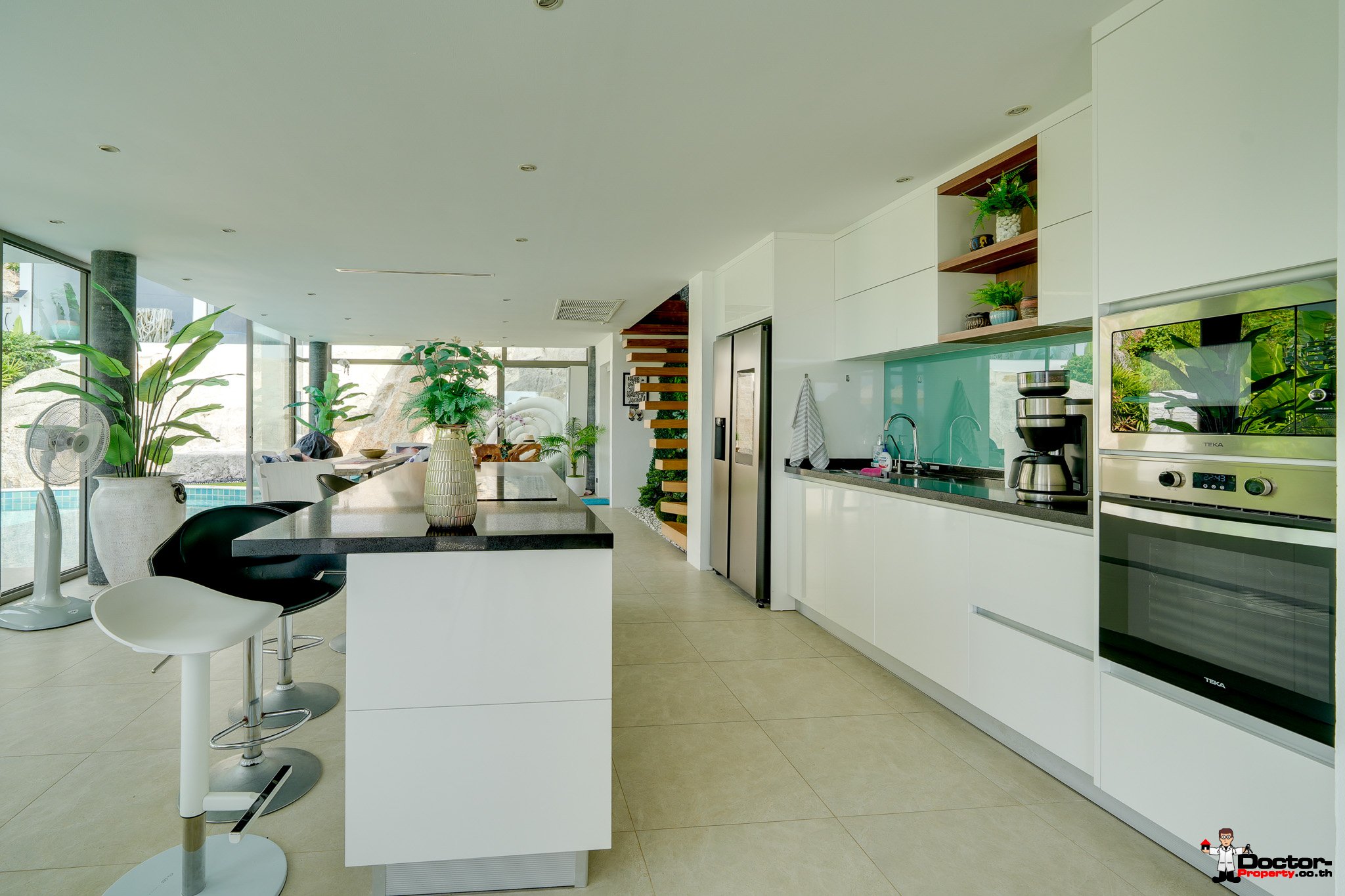 The interiors have been conceived with an emphasis on open‑plan living, seamlessly connecting indoor and outdoor spaces. Floor‑to‑ceiling windows frame panoramic vistas of the sea and surrounding mountains, while inviting abundant natural light into the home. At the heart of the property lies a private swimming pool, perfectly positioned to capture the tranquil atmosphere of the tropical landscape. Spacious terraces and landscaped gardens further enhance the sense of resort‑style living, creating a harmonious environment for relaxation and leisure.