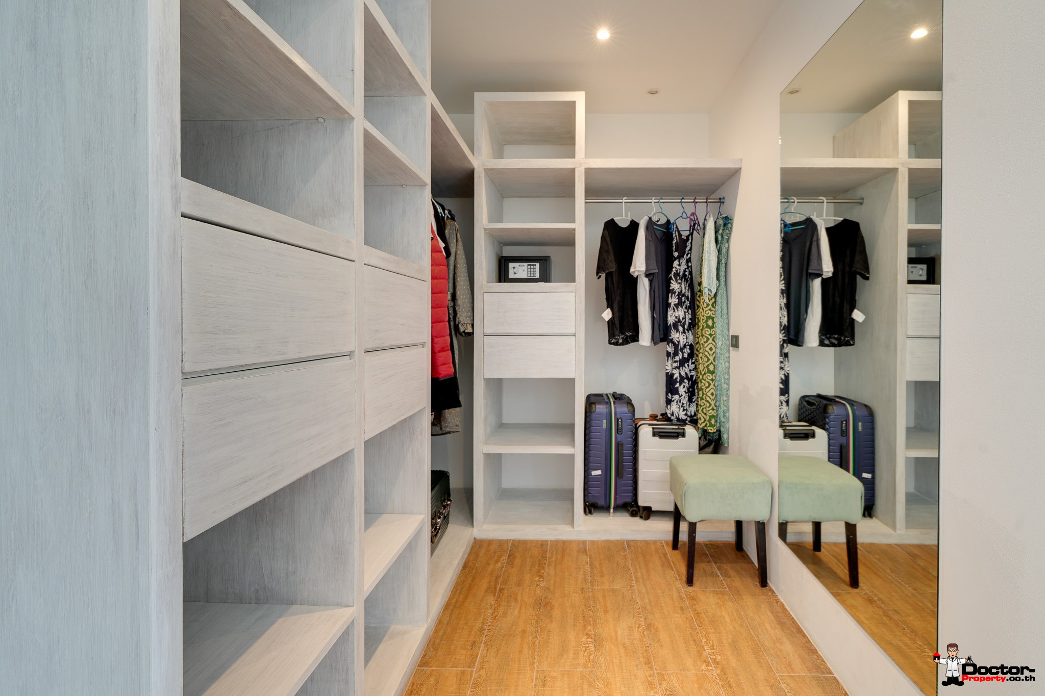 Presenting a distinguished two‑storey villa in the serene enclave of Hua Thanon, Koh Samui. Set upon an expansive land plot of 800 square metres, this villa has been meticulously crafted to harmonise contemporary architecture with the island’s natural splendour. Offering a generous living area of 381 square metres, the property provides ample space for refined family living and sophisticated entertaining. Comprising three bedrooms and three and a half bathrooms, each finished to an exceptional standard, the villa embodies comfort, elegance, and modern tropical design.