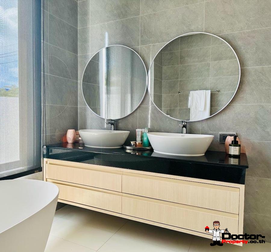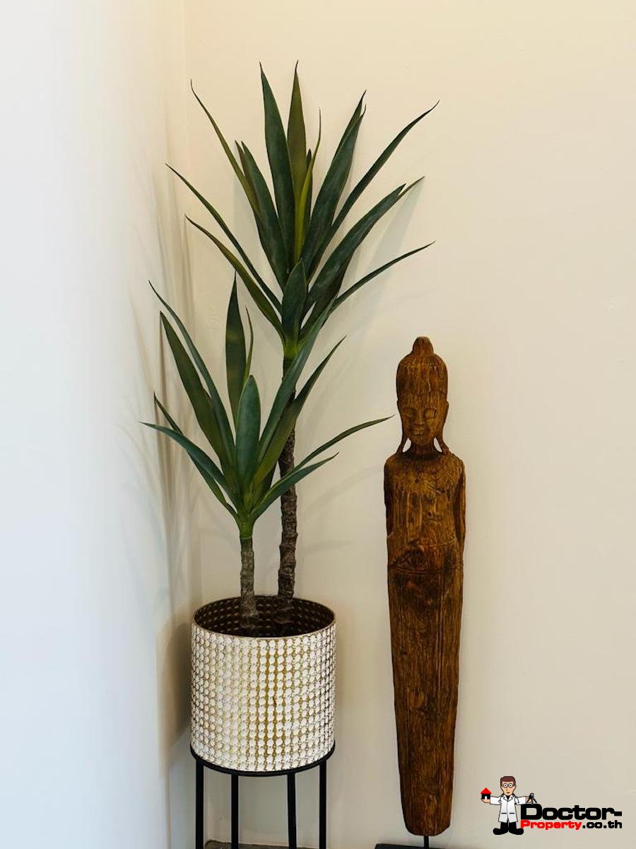 Envisioned as a haven of privacy and exclusivity, this villa is offered as a freehold property, granting you ownership in your private name. The land, a cornerstone of this investment, is available on a secure lease for an attractive fixed rate of THB 90,000 annually.