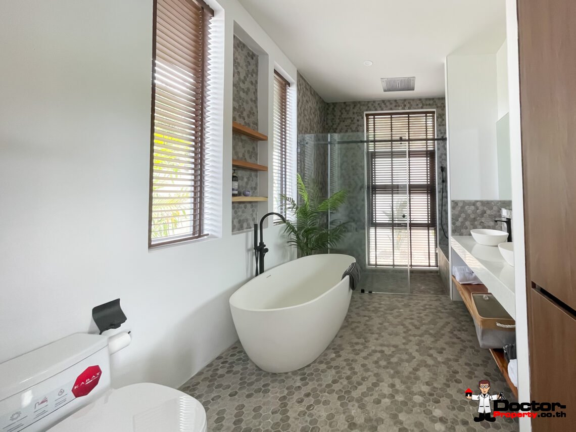 Discover this new villa in Plai Laem, Koh Samui. Situated on the north coast of the island, Plai Laem boasts prime status within Koh Samui, renowned for landmarks such as the Big Buddha (Wat Phra Yai), Plai Laem temple, Choeng Mon Beach, and its proximity to various 5-star resorts. The villa enjoys convenient accessibility, facilitating easy exploration of Koh Samui’s attractions.