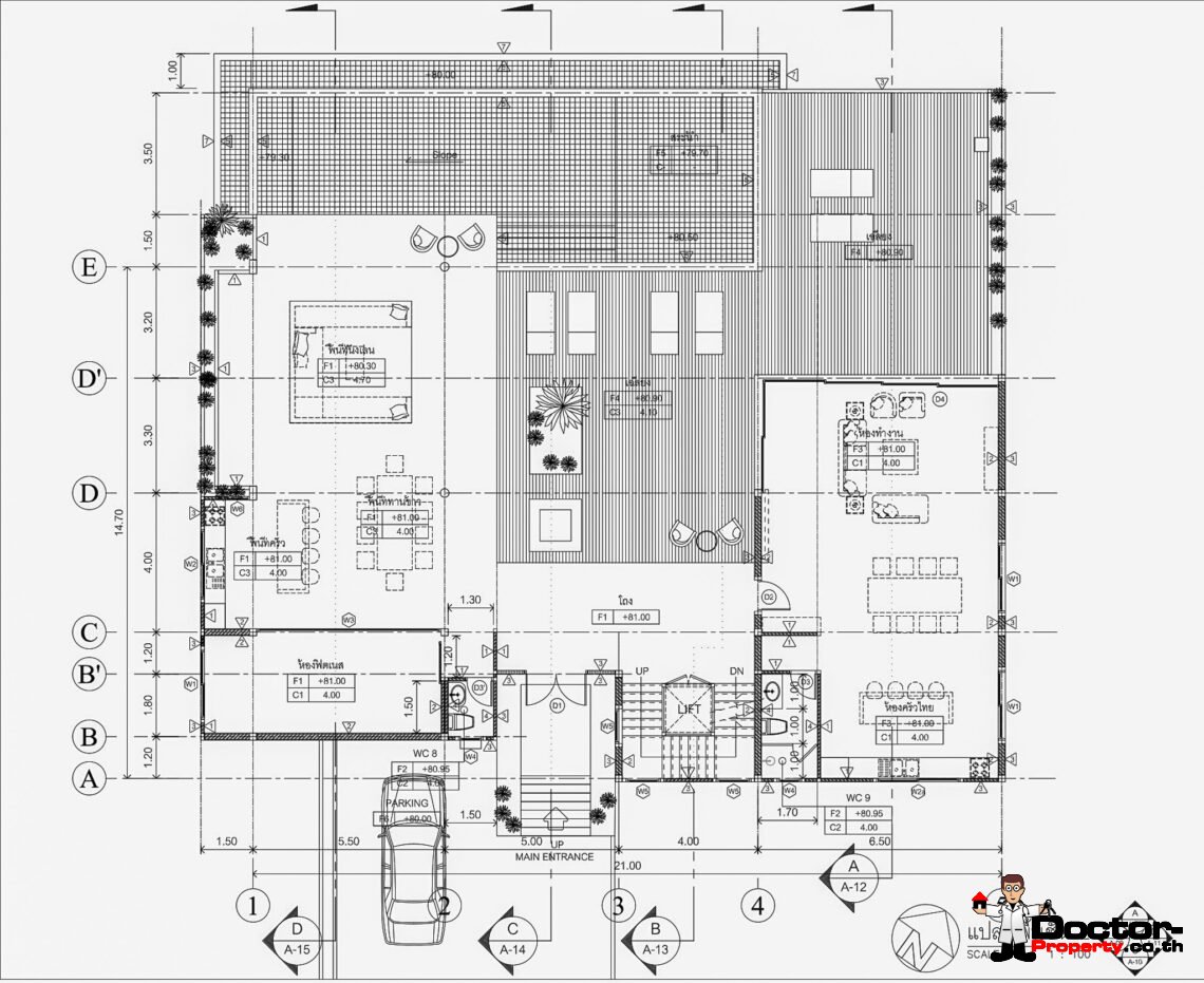 Type A – Villas 1, 2, and 3 These expansive residences feature 4 main bedrooms plus an additional 2 bedrooms, offering a generous built area of 800 sqm. Land sizes are equally impressive: Villa 1 – 923.10 sqm, Villa 2 – 899 sqm, and Villa 3 – 923.20 sqm.