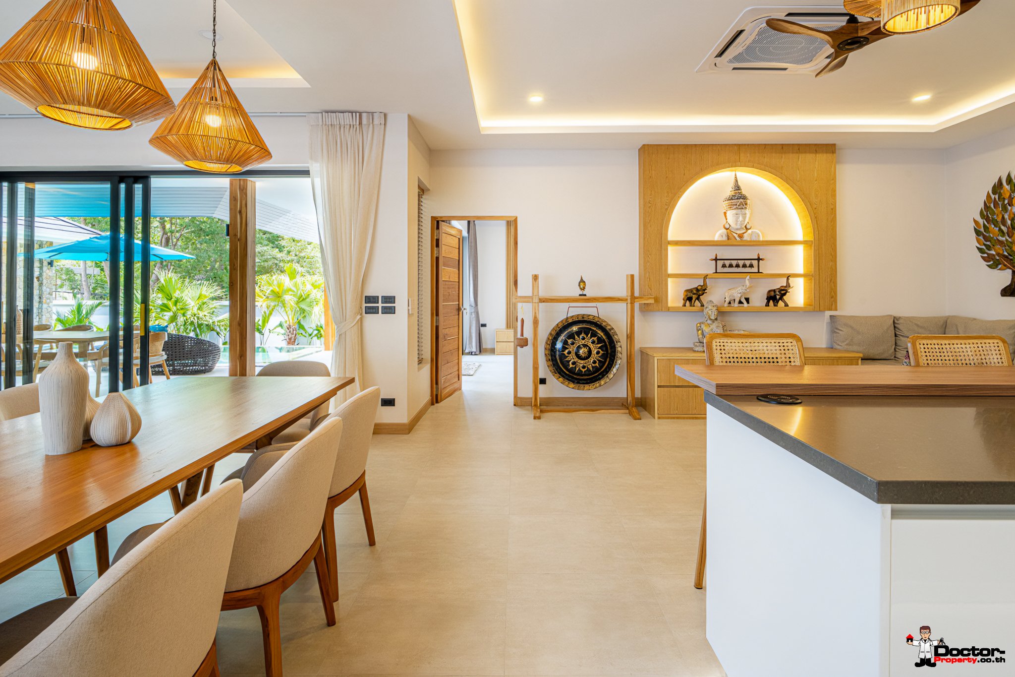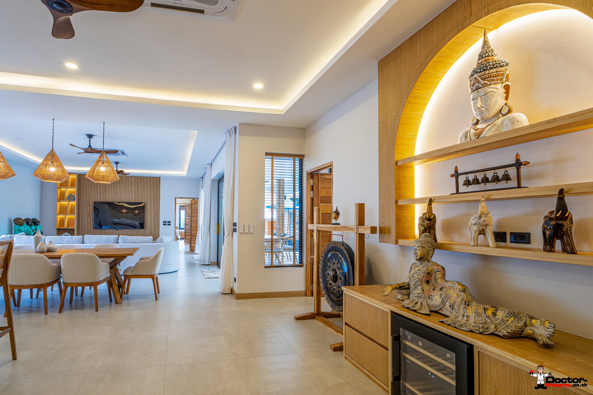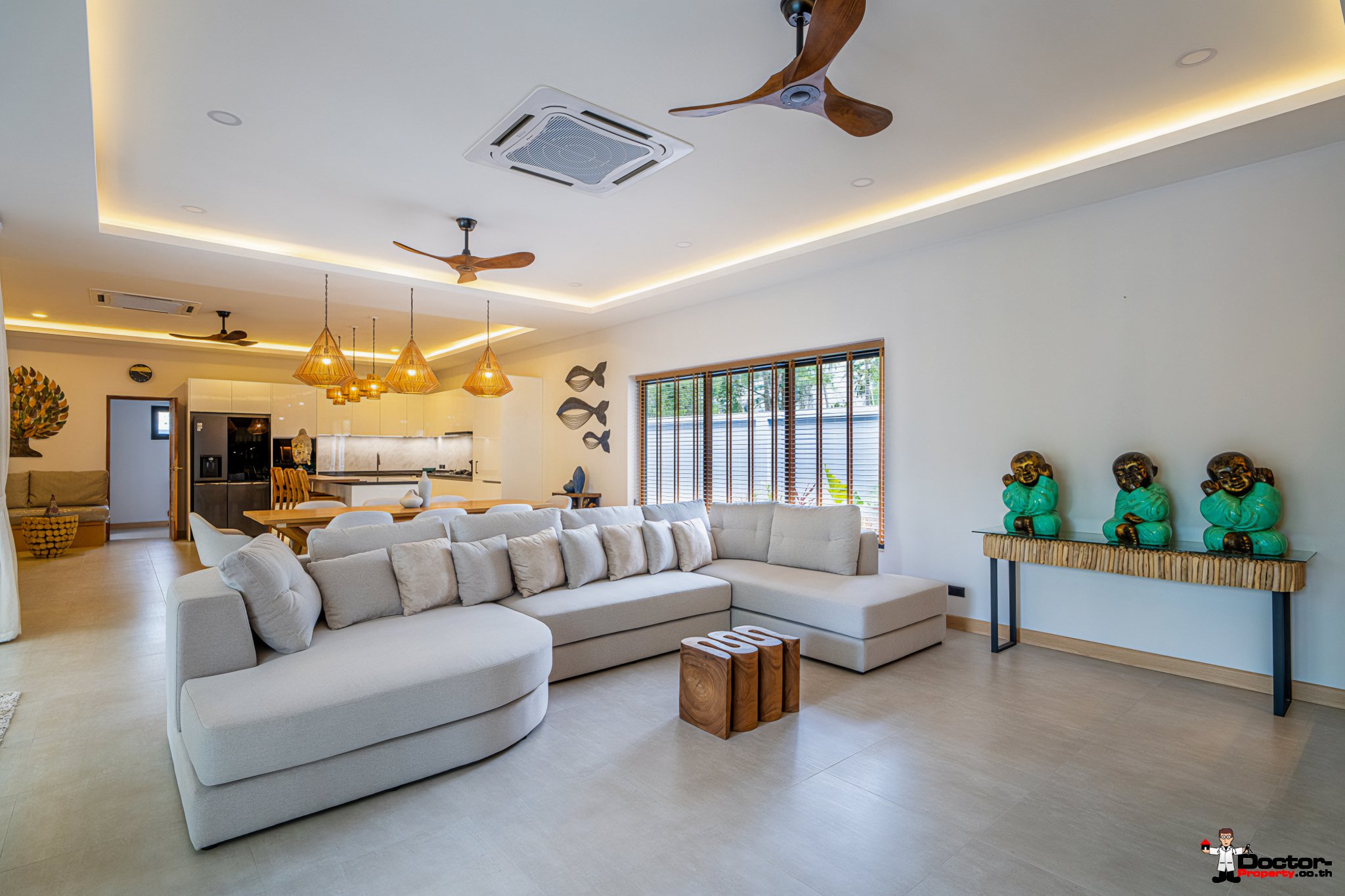 Step inside and be welcomed to a modern tropical retreat designed with elegance and comfort in mind. This spacious villa sits on a generous plot of 595 sqm, with a living size of 300 sqm, offering ample room for relaxation and entertainment. Featuring three beautifully appointed bedrooms, each with its own en-suite bathroom. The highlight of the property is the private infinity swimming pool, seamlessly integrated into the open-living concept that connects indoor and outdoor spaces. Large sliding glass doors invite natural light and tropical breezes, creating a harmonious flow between the living area and dining space.