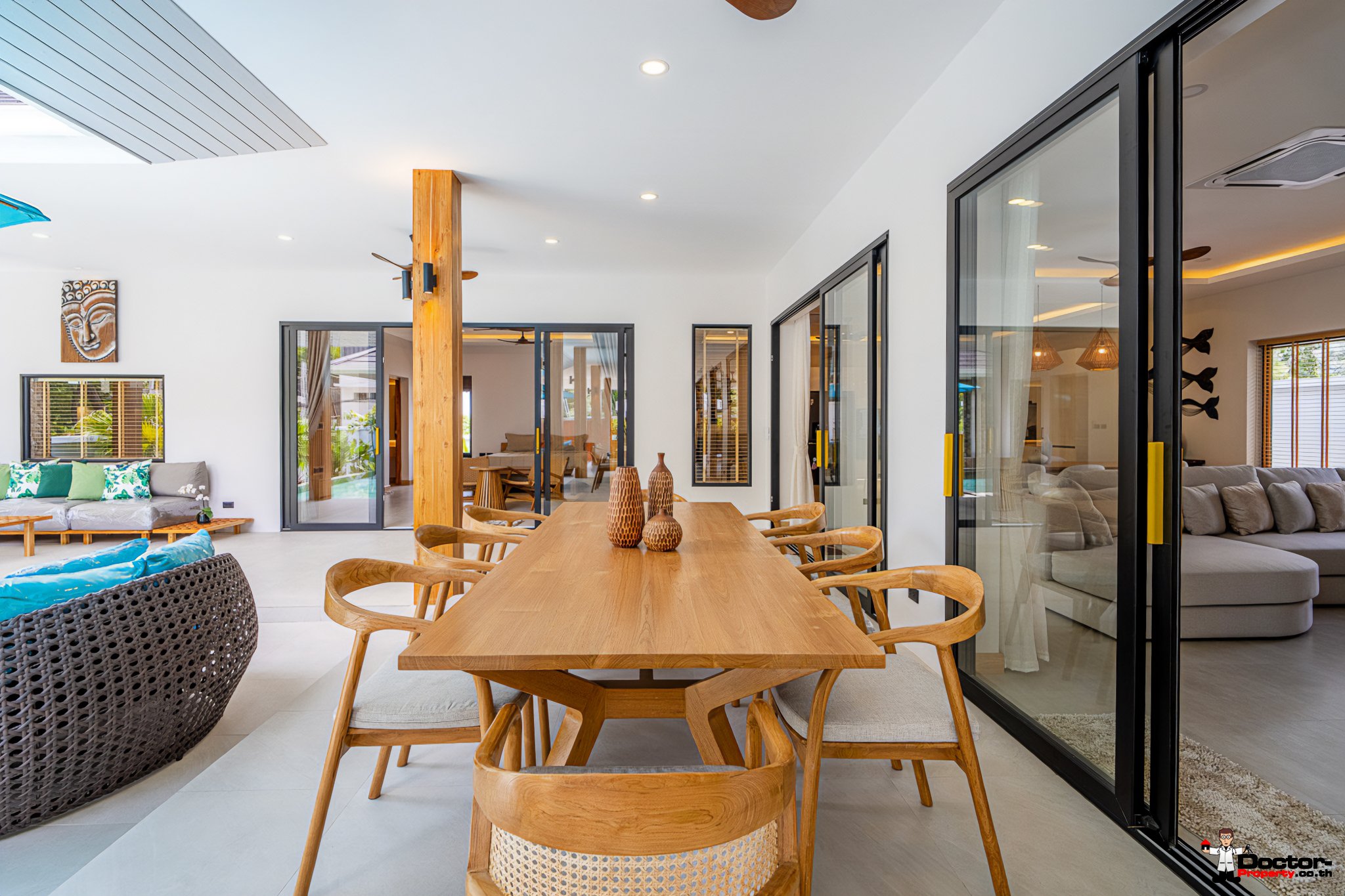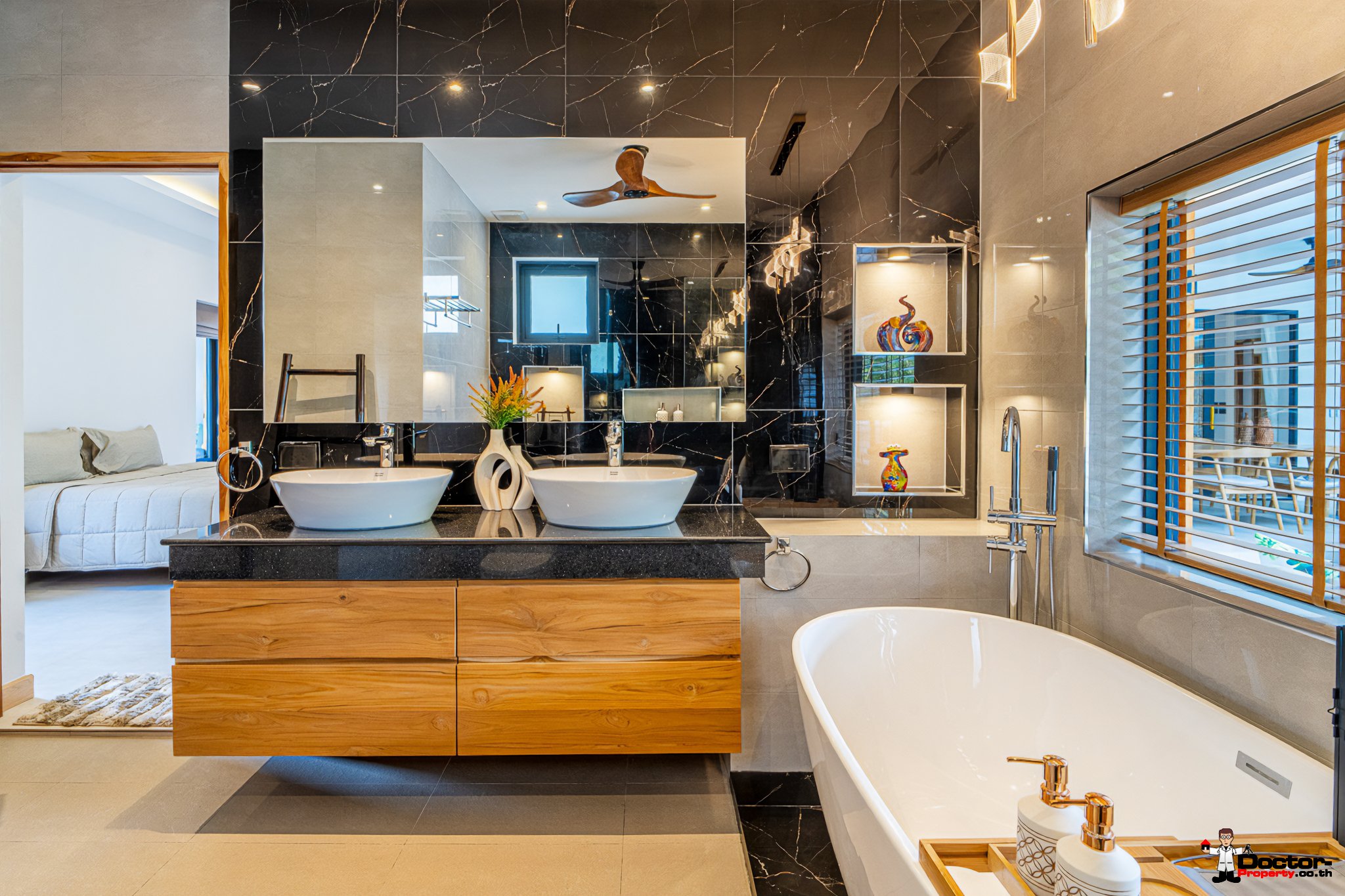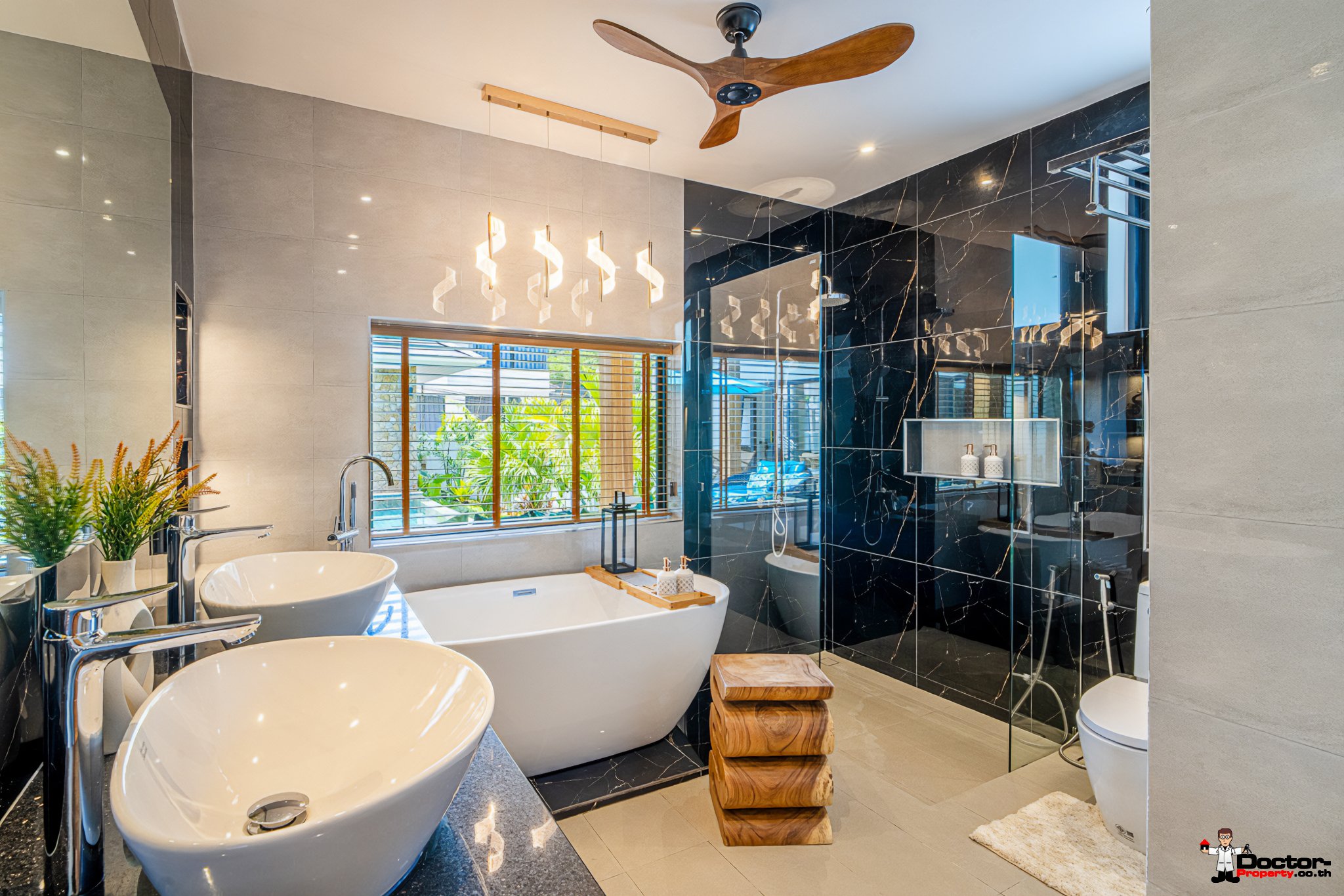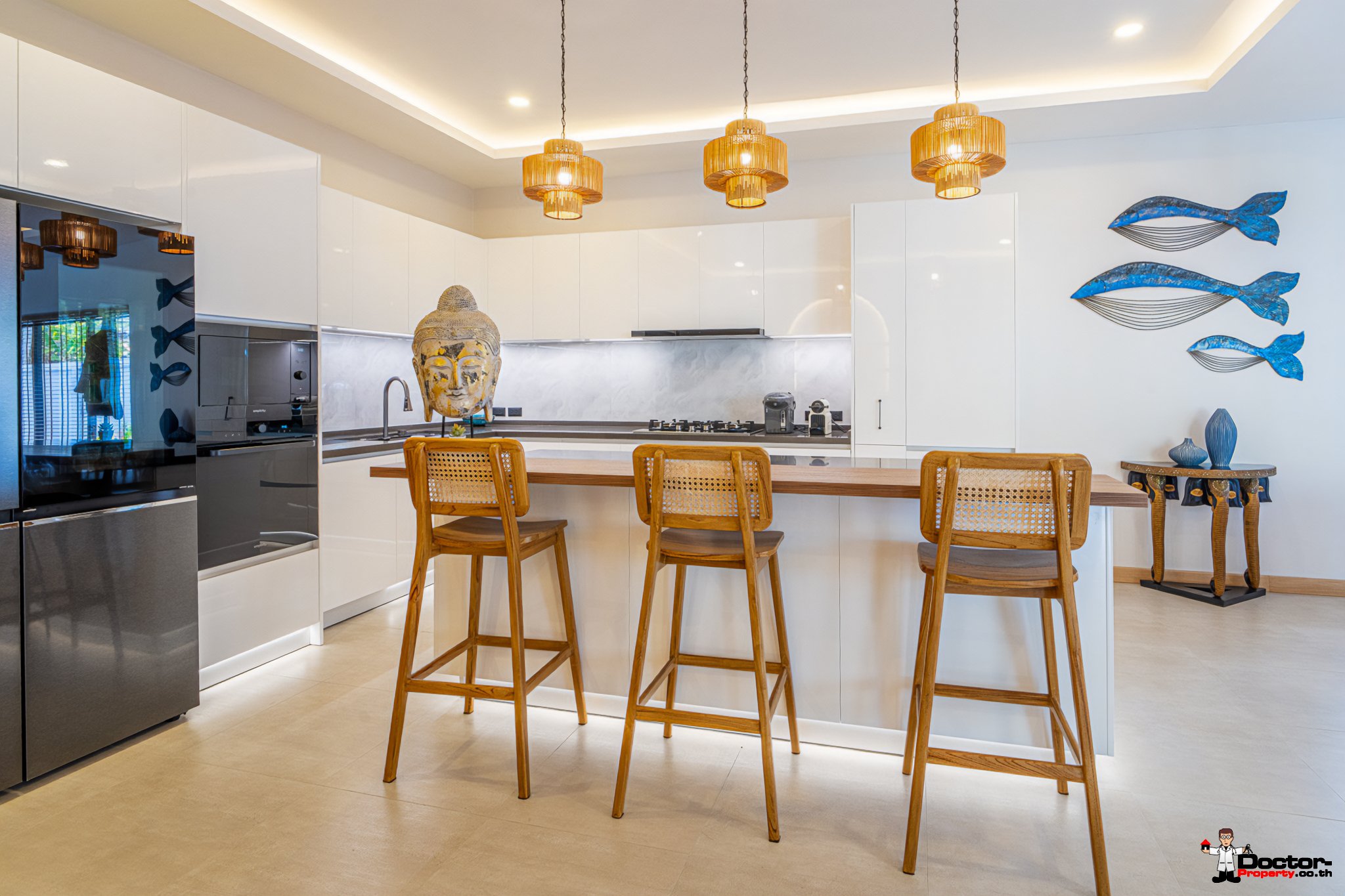 Step inside and be welcomed to a modern tropical retreat designed with elegance and comfort in mind. This spacious villa sits on a generous plot of 595 sqm, with a living size of 300 sqm, offering ample room for relaxation and entertainment. Featuring three beautifully appointed bedrooms, each with its own en-suite bathroom. The highlight of the property is the private infinity swimming pool, seamlessly integrated into the open-living concept that connects indoor and outdoor spaces. Large sliding glass doors invite natural light and tropical breezes, creating a harmonious flow between the living area and dining space.
