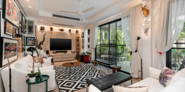 These Beachfront Villas are designed to make the most out of the natural beauty of the location with multiple areas for relaxing, dining and enjoying the views. The villas are located in a luxury community and sitting on a peaceful bay. Samrong Bay has a family beach which offers great swimming and water sports, restaurants and a five-star beach club within a two-minute walk.