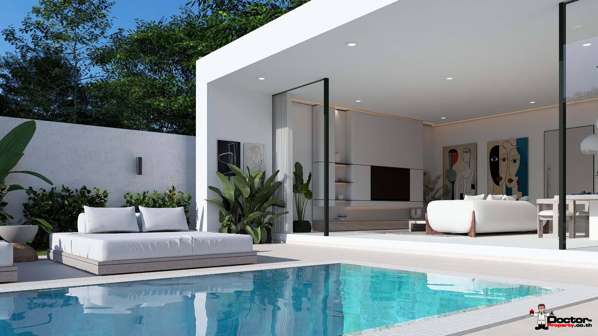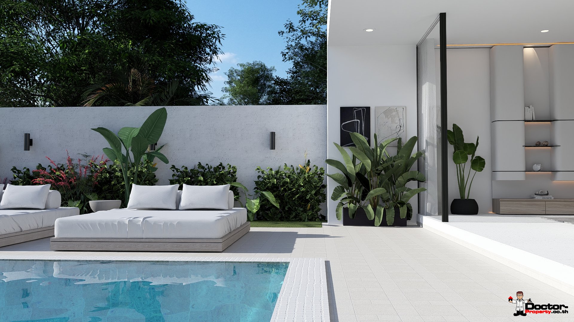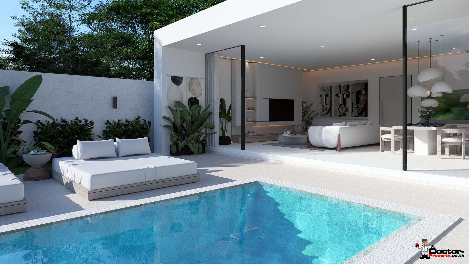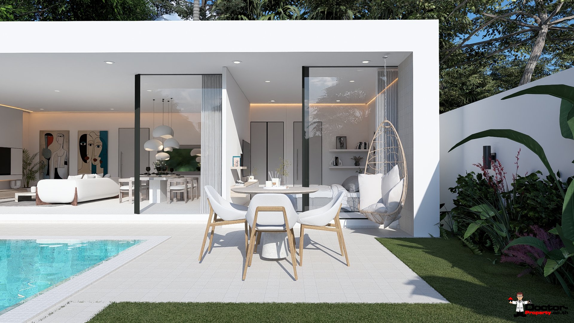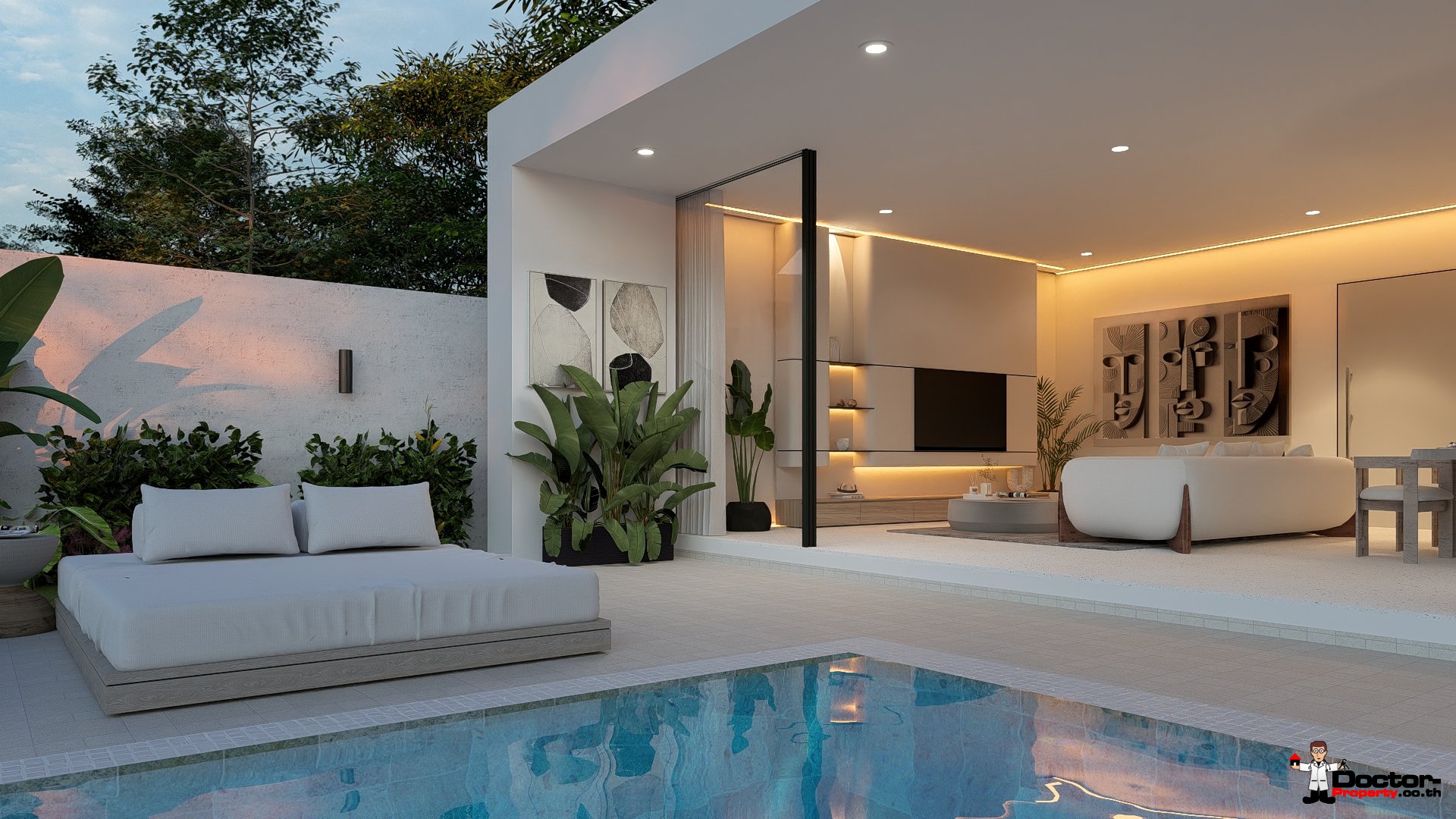 This type of villas is 10 units part of an exclusive development comprising 37 units. This contemporary one-bedroom pool villa has been thoughtfully designed to combine modern elegance with tropical living. With a building size of 107 sqm set upon an 157 sqm land plot, the villa offers a well-proportioned layout that maximises both comfort and privacy. The open-plan living and dining area is bright and inviting, with floor-to-ceiling glass doors opening directly onto the private swimming pool and terrace. The bedroom is spacious and complemented by a sleek en-suite bathroom.