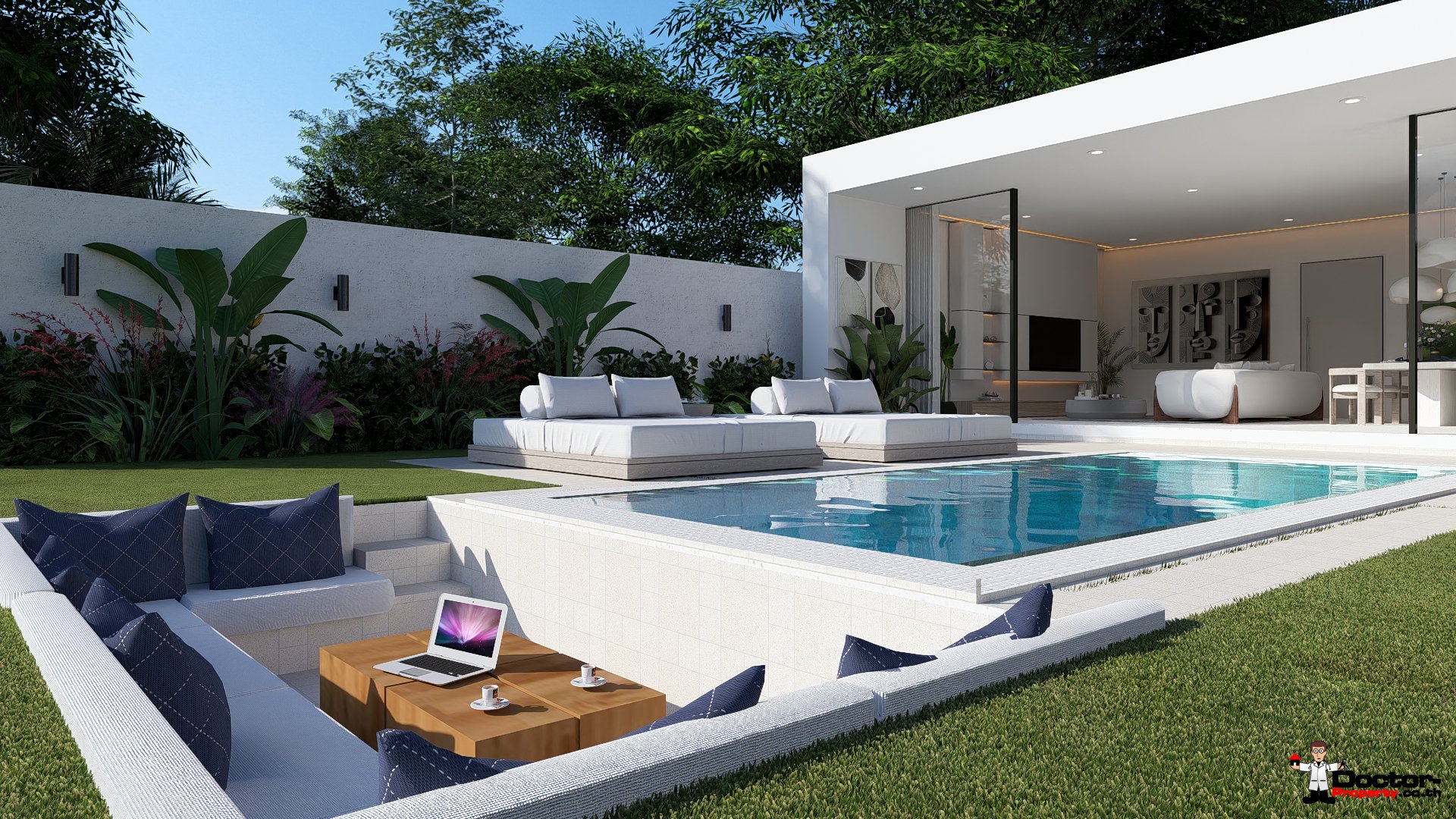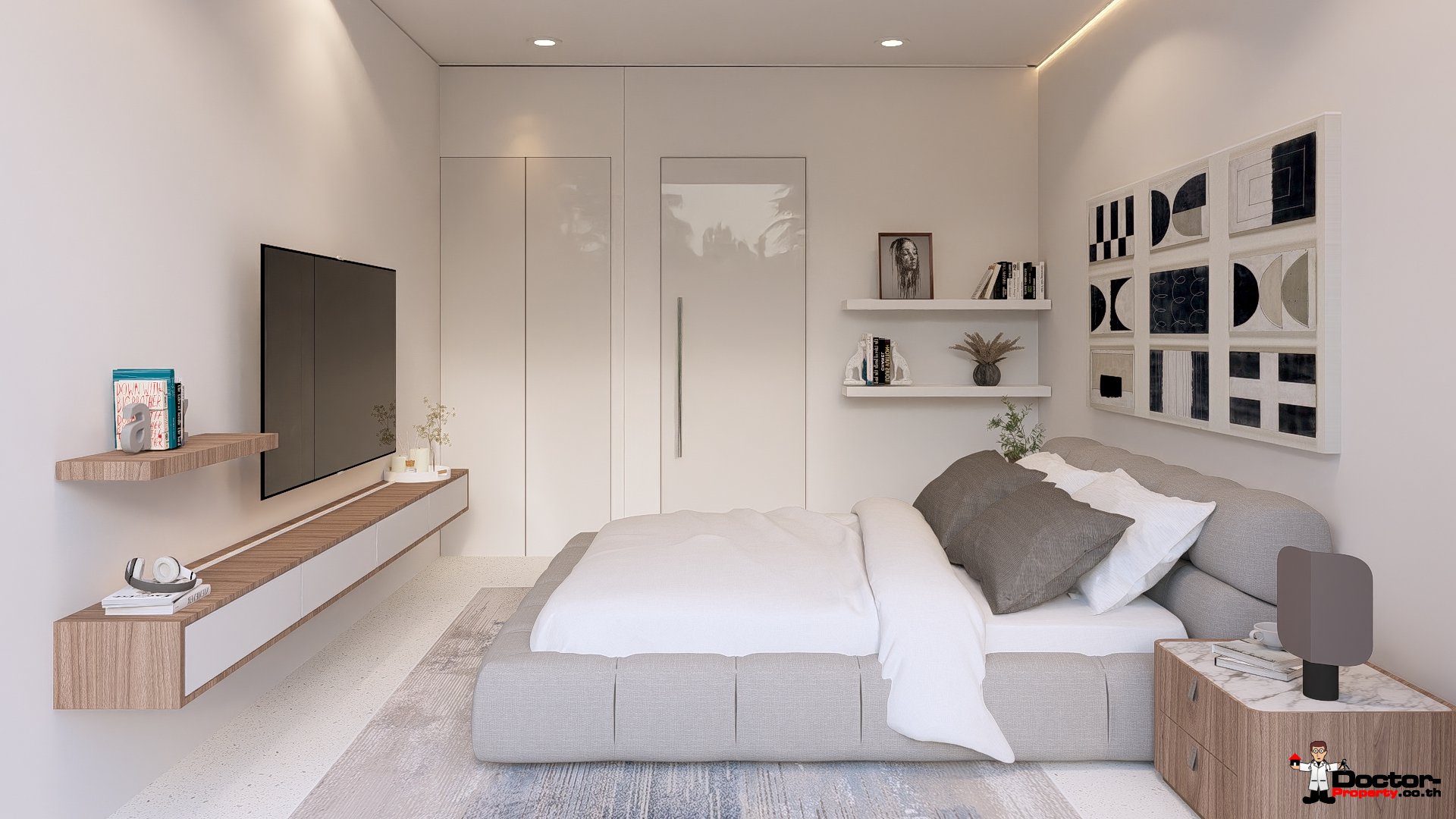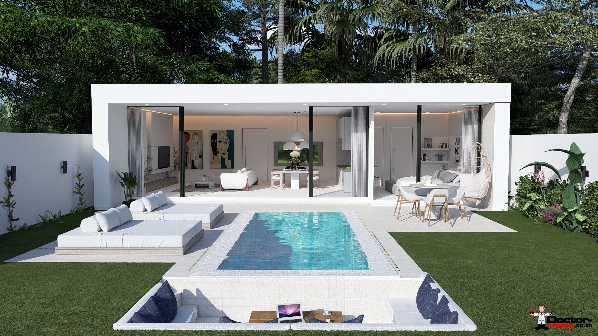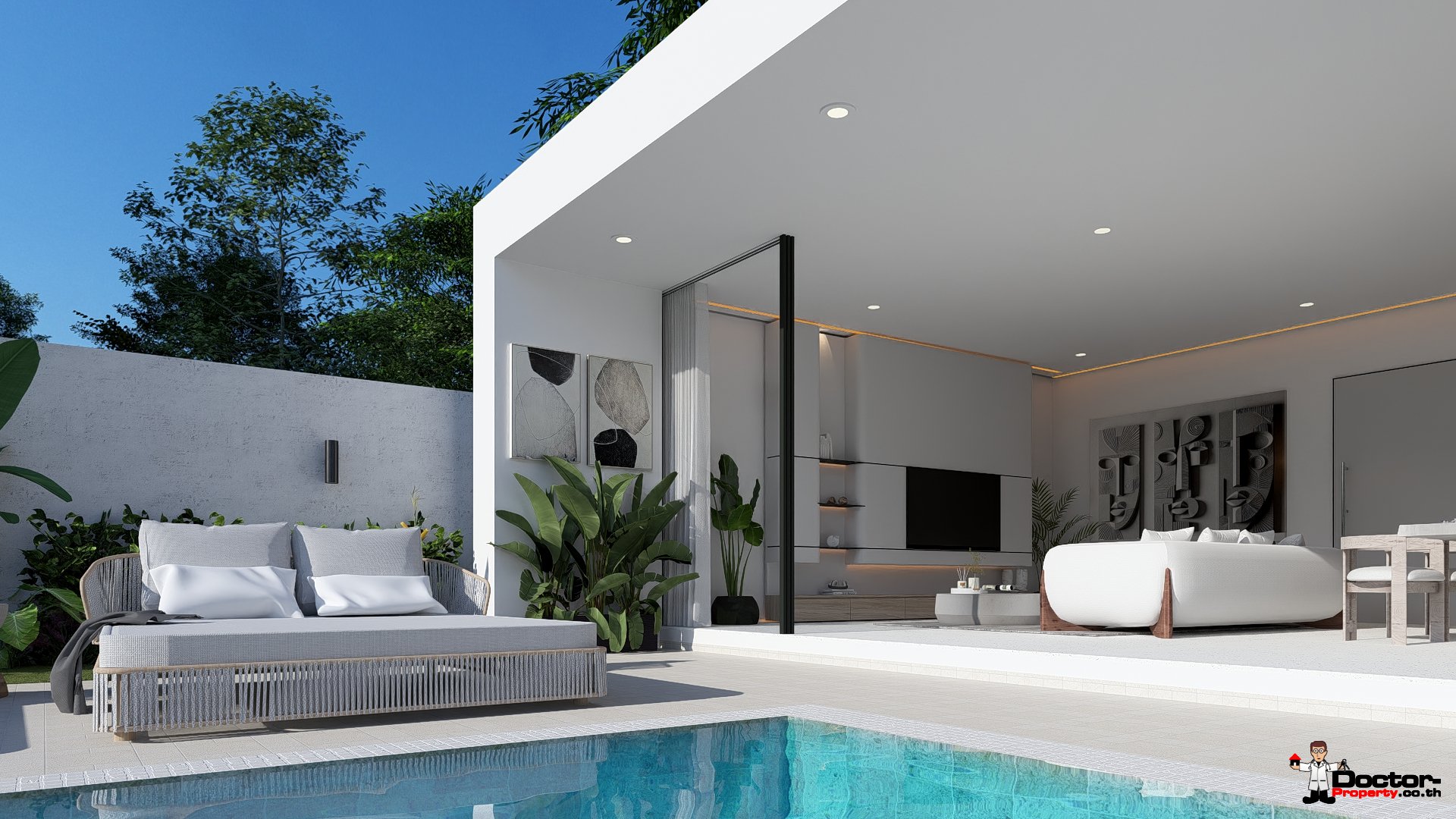 This type of villas is 10 units part of an exclusive development comprising 37 units. This contemporary one-bedroom pool villa has been thoughtfully designed to combine modern elegance with tropical living. With a building size of 107 sqm set upon an 157 sqm land plot, the villa offers a well-proportioned layout that maximises both comfort and privacy. The open-plan living and dining area is bright and inviting, with floor-to-ceiling glass doors opening directly onto the private swimming pool and terrace. The bedroom is spacious and complemented by a sleek en-suite bathroom.