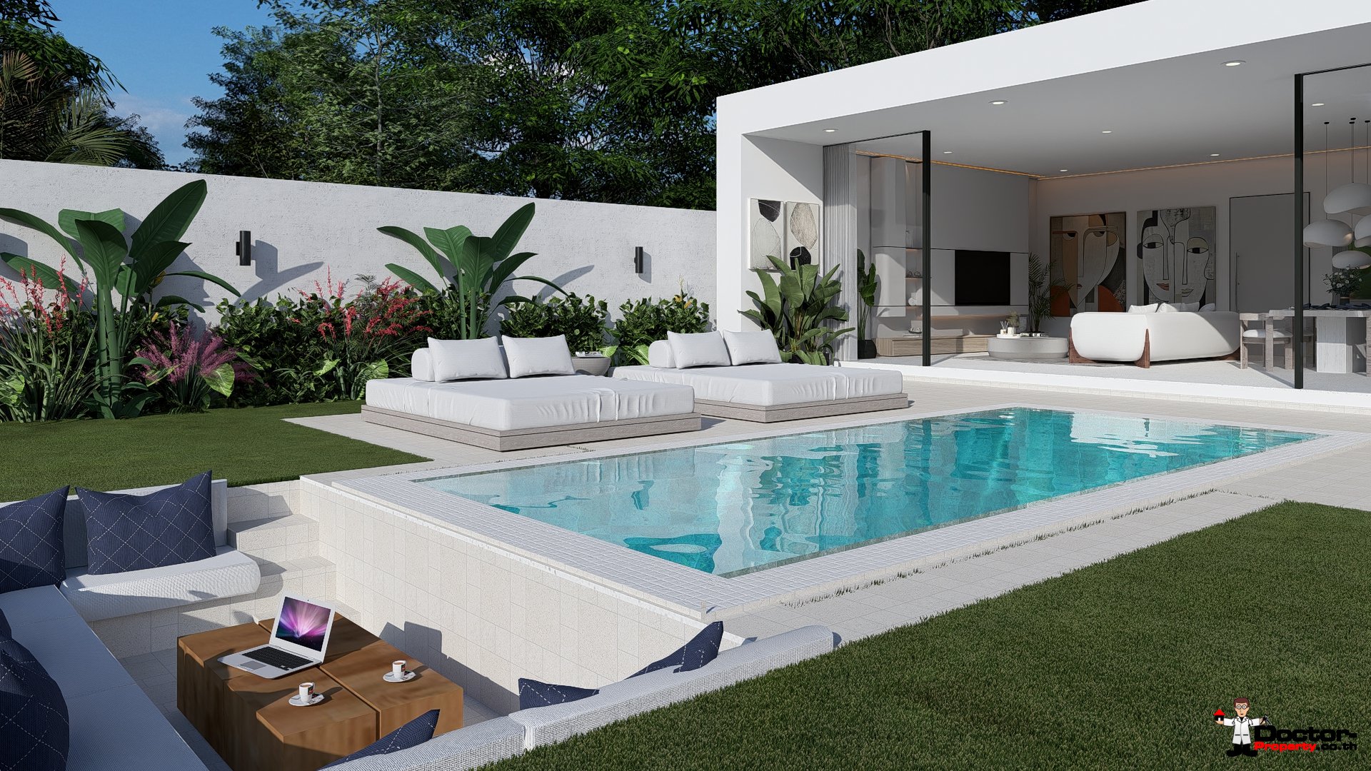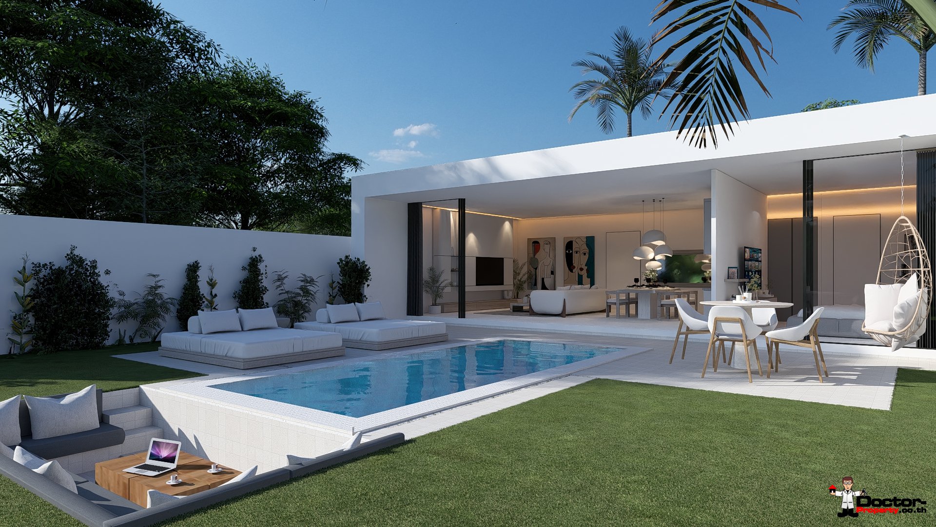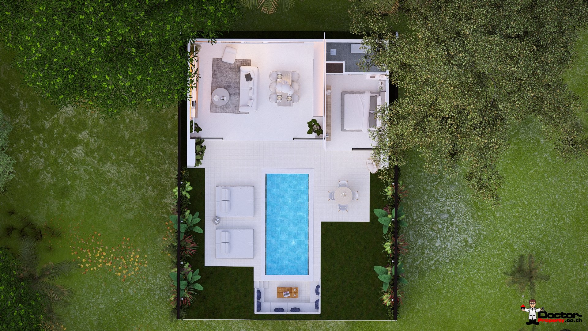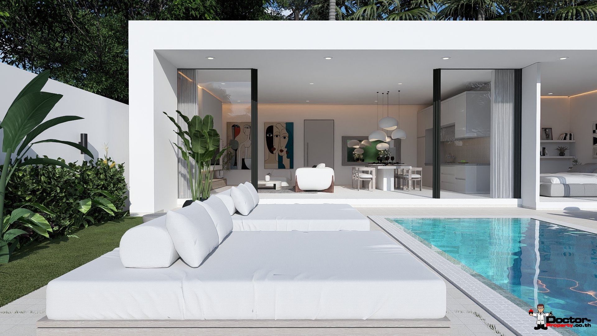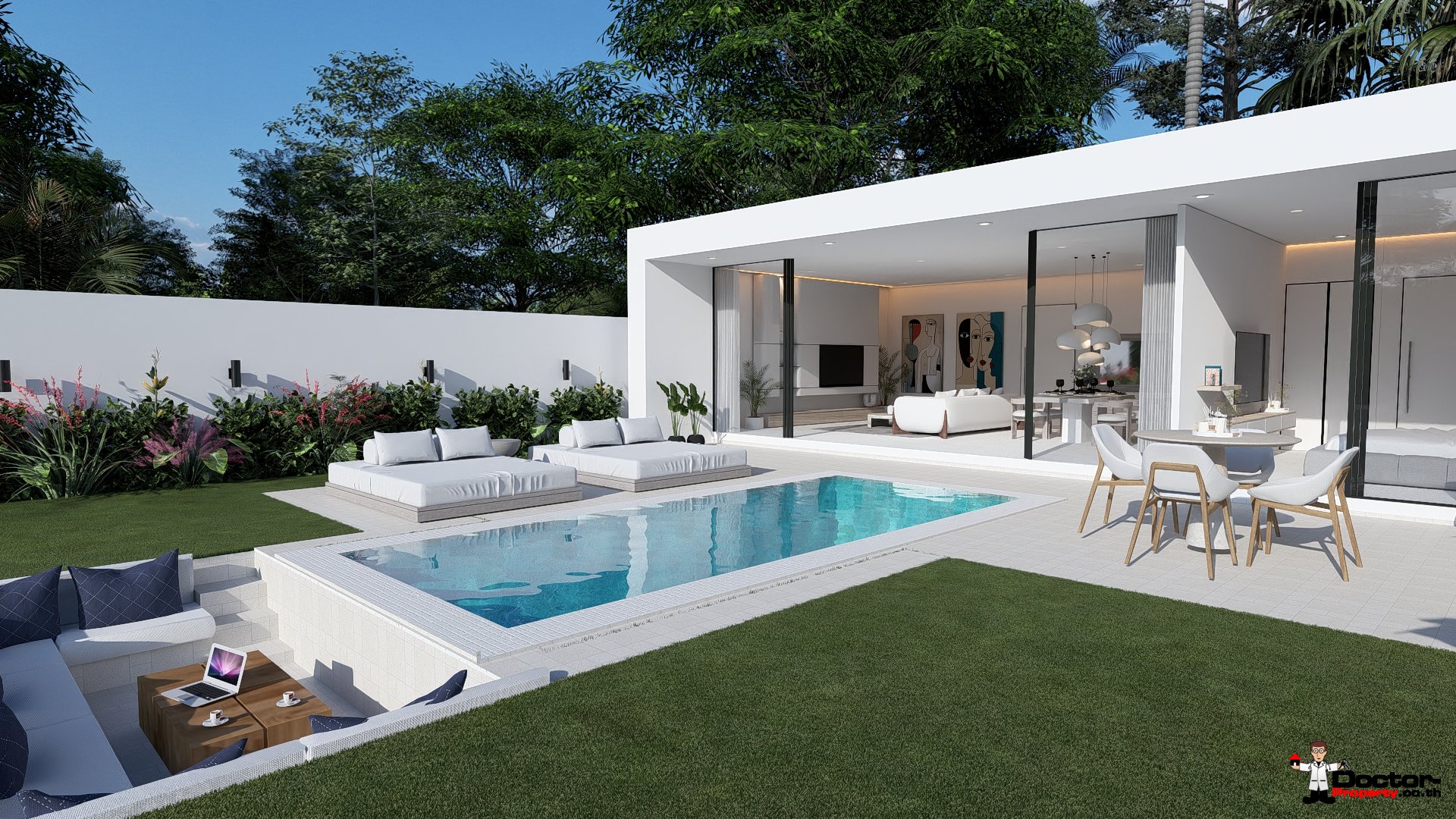 This type of villas is 10 units part of an exclusive development comprising 37 units. This contemporary one-bedroom pool villa has been thoughtfully designed to combine modern elegance with tropical living. With a building size of 107 sqm set upon an 157 sqm land plot, the villa offers a well-proportioned layout that maximises both comfort and privacy. The open-plan living and dining area is bright and inviting, with floor-to-ceiling glass doors opening directly onto the private swimming pool and terrace. The bedroom is spacious and complemented by a sleek en-suite bathroom.