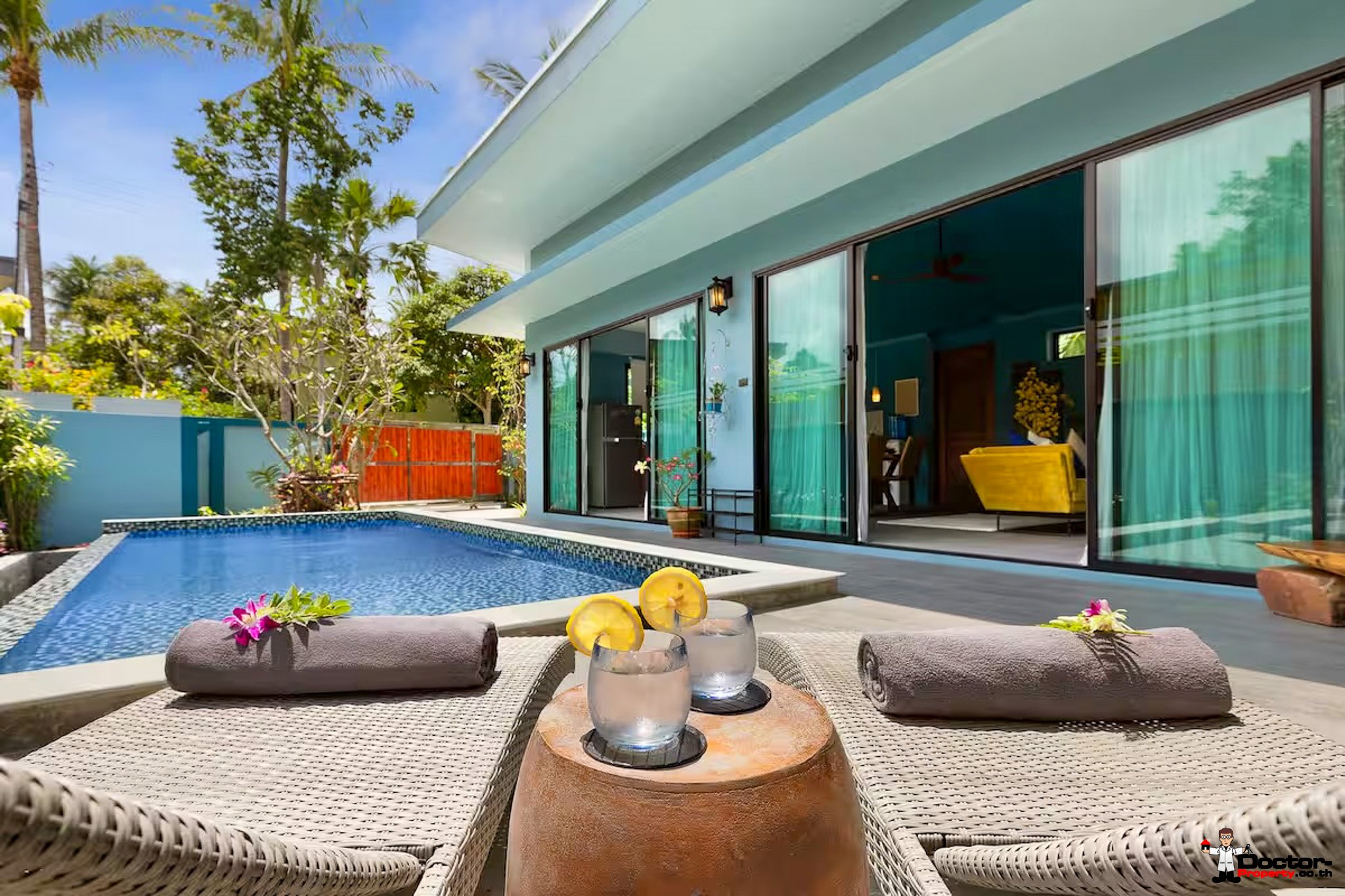 วิลล่าหรูหรา 3 ห้องนอน 3 ห้องน้ำแห่งนี้ ได้รับการออกแบบอย่างพิถีพิถันเพื่อผสมผสานความสะดวกสบาย สไตล์ และฟังก์ชันการใช้งาน ตั้งอยู่บนพื้นที่ 395 ตารางเมตร พื้นที่ใช้สอยกว้างขวาง 210 ตารางเมตร ห่างจากชายหาดเพียง 800 เมตร ให้ความสมดุลที่สมบูรณ์แบบระหว่างความเป็นส่วนตัวและการเข้าถึง ใจกลางวิลล่ามีสระว่ายน้ำเกลือขนาด 8 เมตรที่น่าประทับใจ เหมาะสำหรับทั้งการพักผ่อนและการออกกำลังกาย ล้อมรอบด้วยระเบียงอาบแดดสำหรับการพักผ่อนกลางแจ้ง การตกแต่งภายในได้รับการตกแต่งอย่างครบครันด้วยมาตรฐานระดับสูง ผสมผสานการออกแบบร่วมสมัยเข้ากับเสน่ห์แบบทรอปิคอล ห้องนอนแต่ละห้องกว้างขวางและตกแต่งอย่างดี พร้อมห้องน้ำในตัวที่ให้ความเป็นส่วนตัวและสะดวกสบาย พื้นที่นั่งเล่นและรับประทานอาหารแบบเปิดโล่งเชื่อมต่อเข้ากับห้องครัวทันสมัยอย่างลงตัว สร้างบรรยากาศที่อบอุ่นเป็นกันเองสำหรับทั้งครอบครัวและแขกที่มาพัก