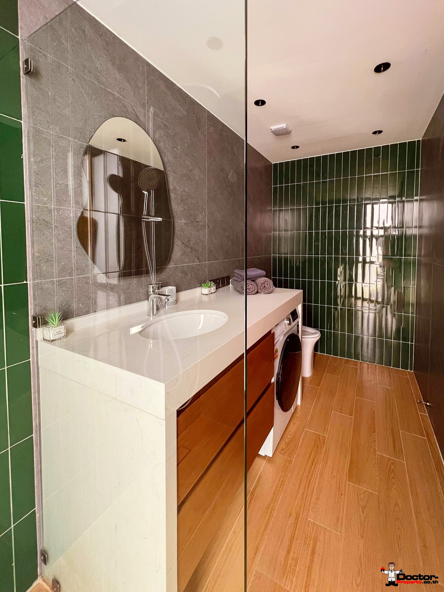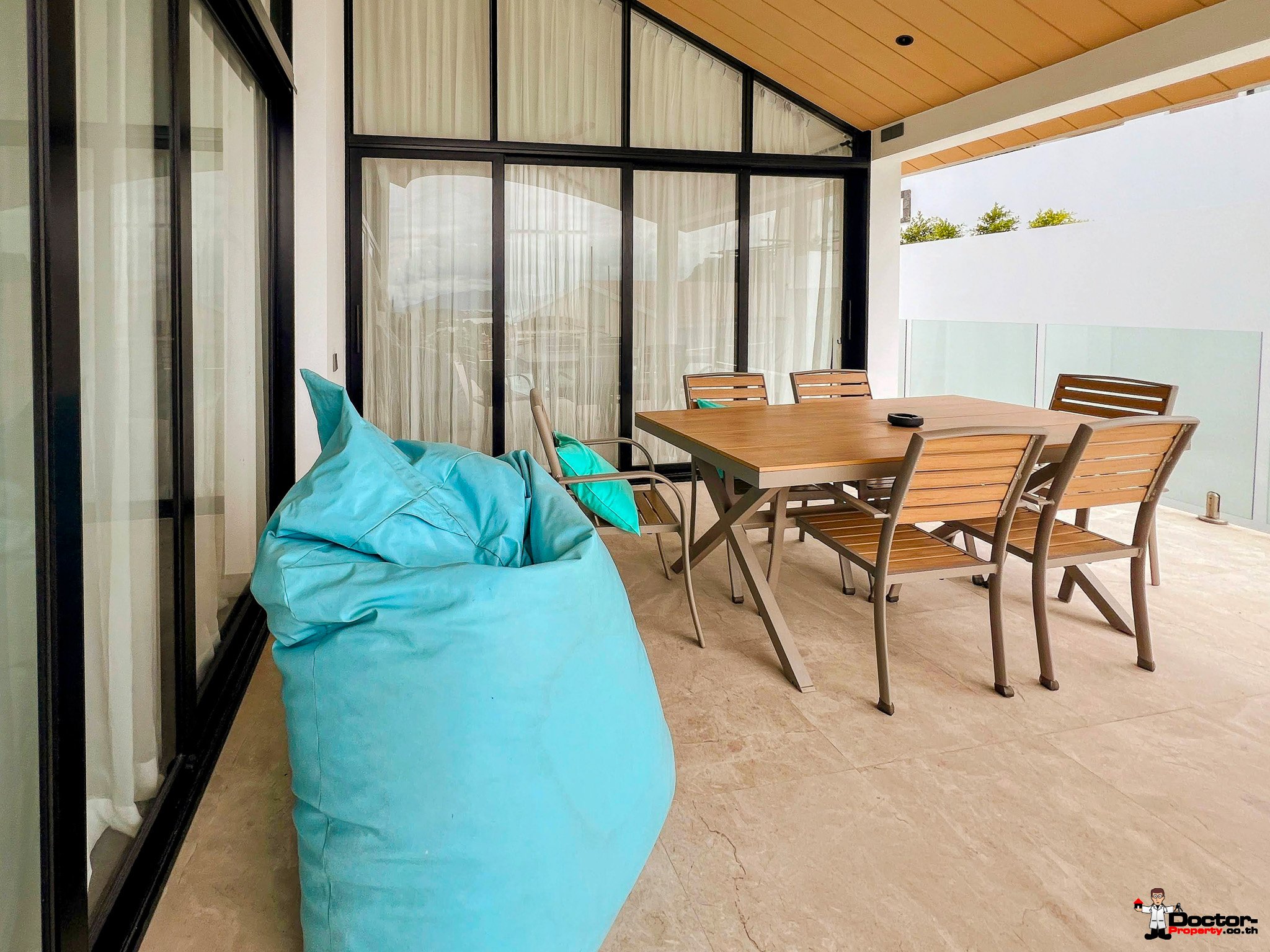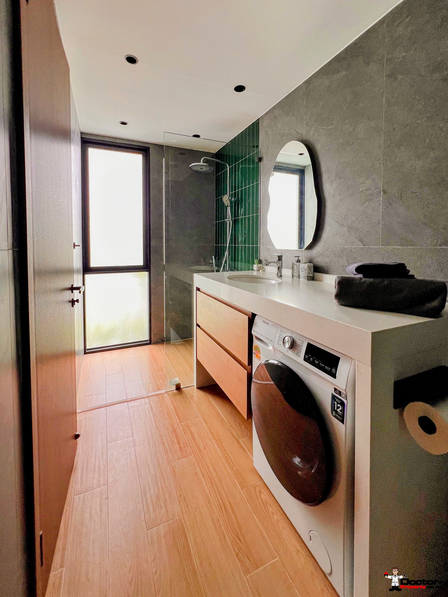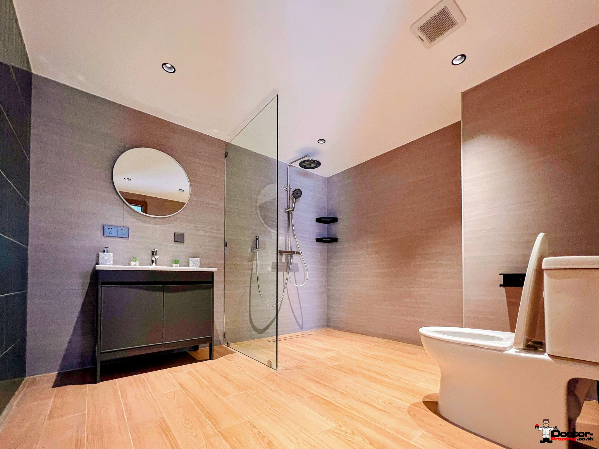 วิลล่าสามชั้นที่โดดเด่นแห่งนี้ได้รับการออกแบบอย่างพิถีพิถันเพื่อมอบพื้นที่ ความสะดวกสบาย และทัศนียภาพที่ดีที่สุด ตั้งอยู่บนที่ดินขนาด 250 ตารางเมตร มีพื้นที่กว้างขวางถึง 240 ตารางเมตร กระจายตัวอยู่ในหลายชั้น วิลล่าประกอบด้วยห้องนอนกว้างขวางสี่ห้องและห้องน้ำทันสมัยห้าห้อง มั่นใจได้ว่าสามารถรองรับครอบครัวหรือแขกได้อย่างเพียงพอ พื้นที่นั่งเล่นและรับประทานอาหารแบบเปิดโล่งสว่างไสวและโปร่งสบาย เชื่อมต่อกับห้องครัวพร้อมอุปกรณ์ครบครันและเครื่องใช้ไฟฟ้าร่วมสมัย หน้าต่างบานใหญ่และประตูบานเลื่อนเปิดรับแสงธรรมชาติได้ทั่วถึง ขณะที่ชั้นบนมองเห็นวิวทะเลบางส่วน เสริมเสน่ห์แบบทรอปิคอลของวิลล่า สระว่ายน้ำส่วนตัวพร้อมระเบียงอาบแดดกลางแจ้ง มอบบรรยากาศที่สมบูรณ์แบบสำหรับการพักผ่อน ผสานกับภูมิทัศน์โดยรอบที่ให้ทั้งความเป็นส่วนตัวและความเงียบสงบ