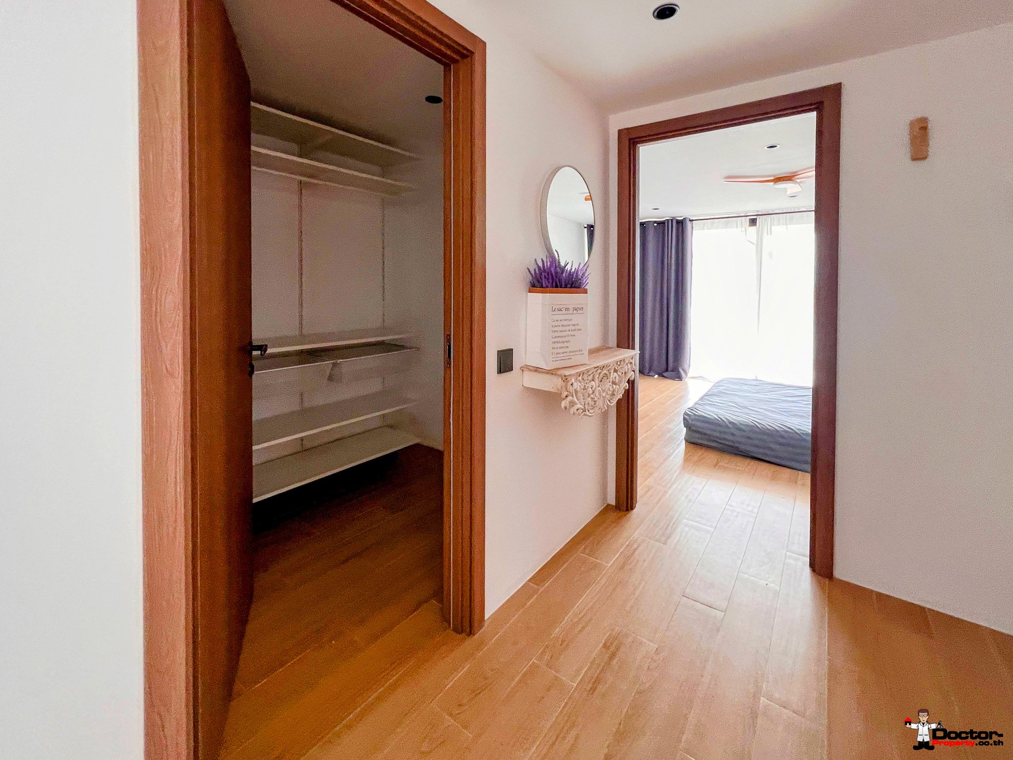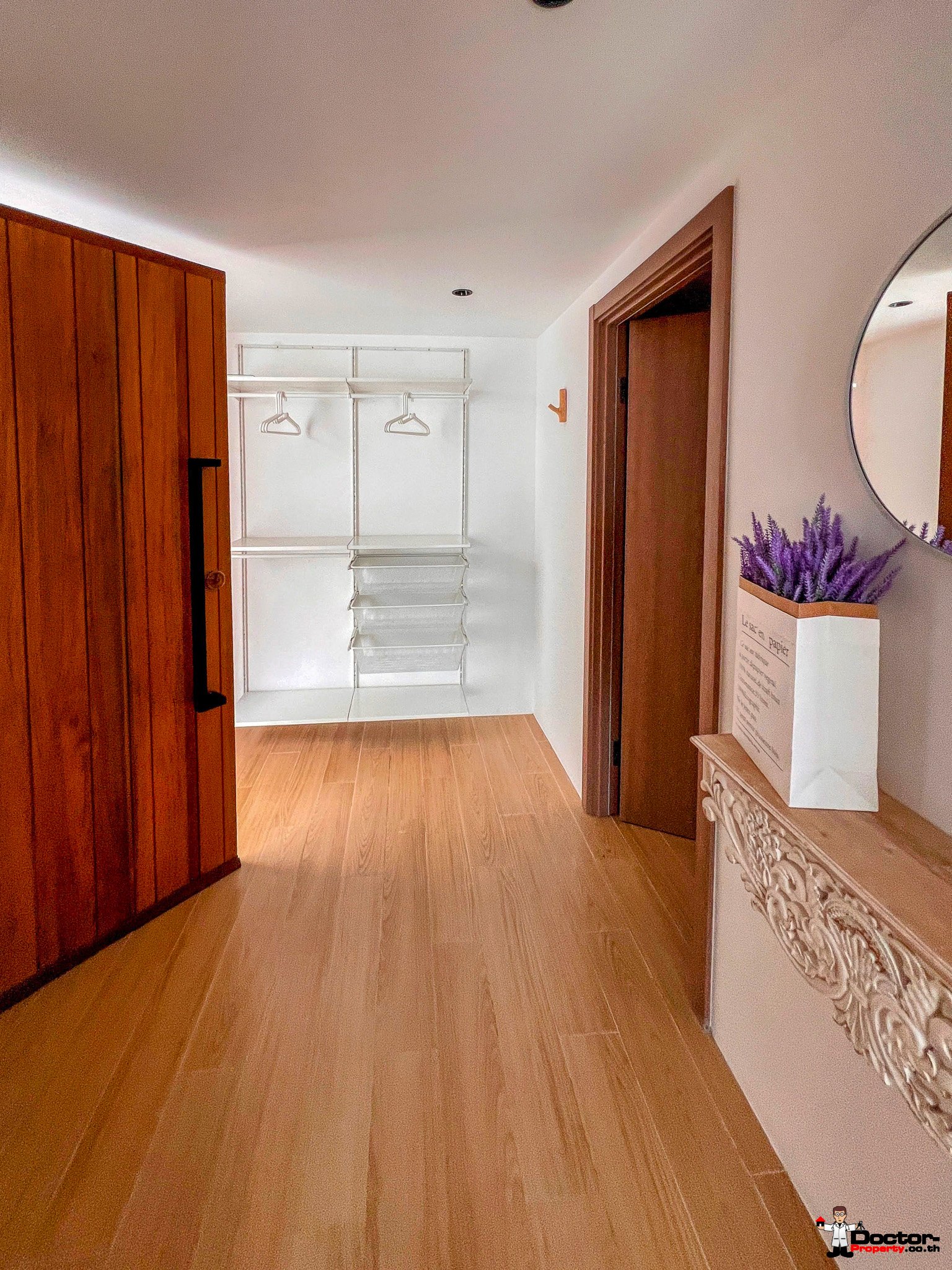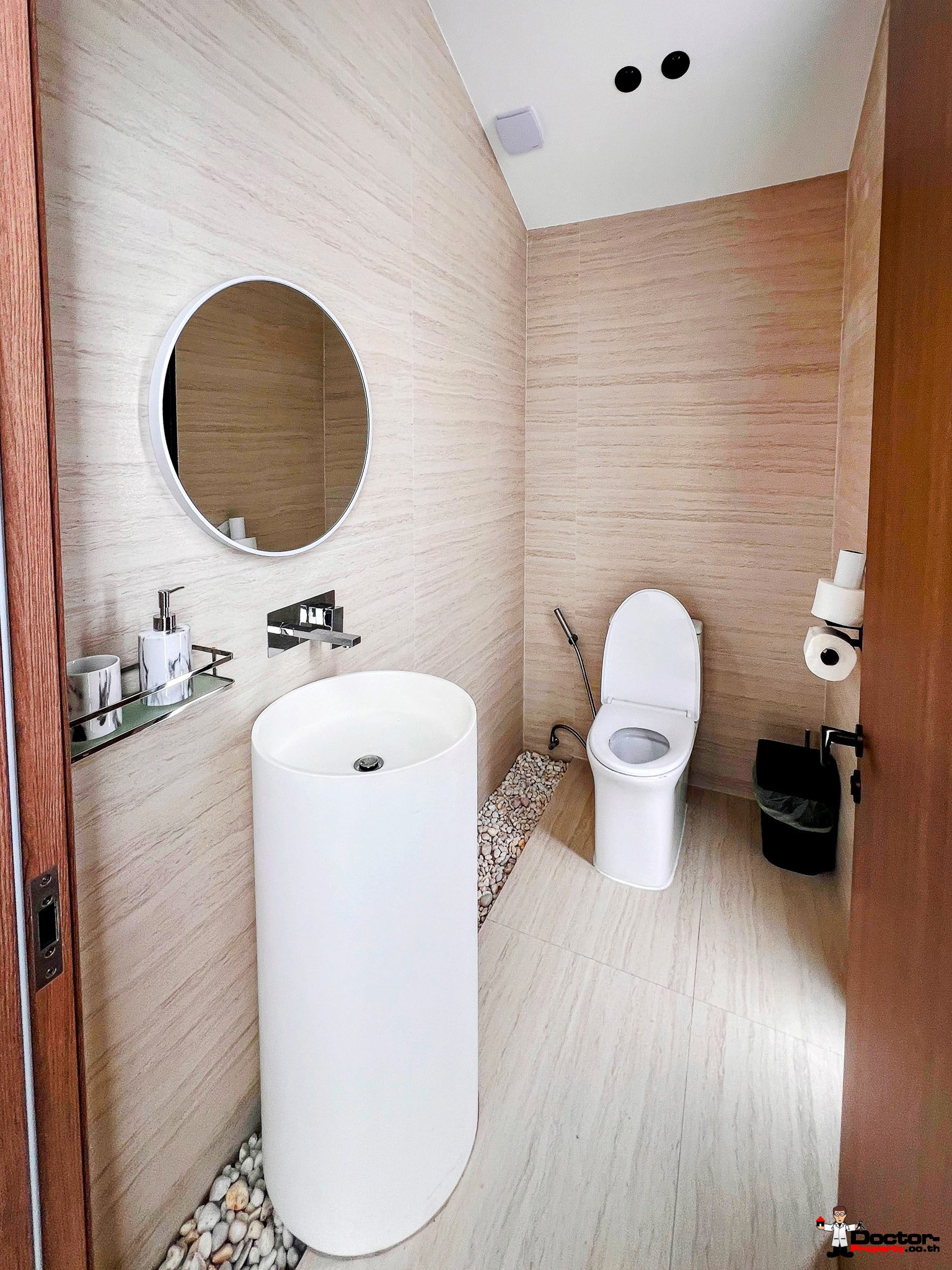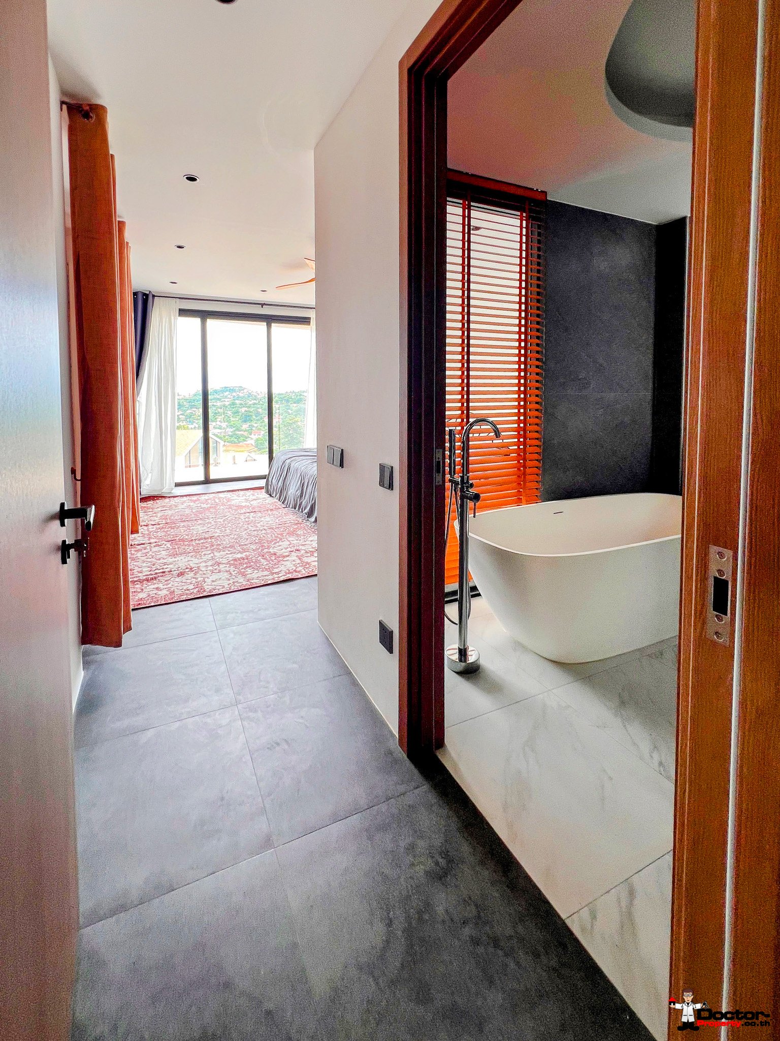 วิลล่าสามชั้นที่โดดเด่นแห่งนี้ได้รับการออกแบบอย่างพิถีพิถันเพื่อมอบพื้นที่ ความสะดวกสบาย และทัศนียภาพที่ดีที่สุด ตั้งอยู่บนที่ดินขนาด 250 ตารางเมตร มีพื้นที่กว้างขวางถึง 240 ตารางเมตร กระจายตัวอยู่ในหลายชั้น วิลล่าประกอบด้วยห้องนอนกว้างขวางสี่ห้องและห้องน้ำทันสมัยห้าห้อง มั่นใจได้ว่าสามารถรองรับครอบครัวหรือแขกได้อย่างเพียงพอ พื้นที่นั่งเล่นและรับประทานอาหารแบบเปิดโล่งสว่างไสวและโปร่งสบาย เชื่อมต่อกับห้องครัวพร้อมอุปกรณ์ครบครันและเครื่องใช้ไฟฟ้าร่วมสมัย หน้าต่างบานใหญ่และประตูบานเลื่อนเปิดรับแสงธรรมชาติได้ทั่วถึง ขณะที่ชั้นบนมองเห็นวิวทะเลบางส่วน เสริมเสน่ห์แบบทรอปิคอลของวิลล่า สระว่ายน้ำส่วนตัวพร้อมระเบียงอาบแดดกลางแจ้ง มอบบรรยากาศที่สมบูรณ์แบบสำหรับการพักผ่อน ผสานกับภูมิทัศน์โดยรอบที่ให้ทั้งความเป็นส่วนตัวและความเงียบสงบ