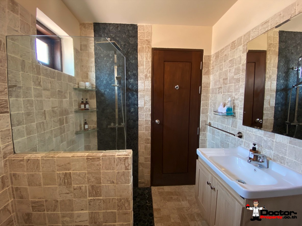 ทางตอนใต้ของเกาะสมุยวิลล่า 4 ห้องนอนที่สวยงามแห่งนี้ตั้งอยู่บนชายหาดและมองเห็นทิวทัศน์อันงดงามของทะเล ห่างจากหาดละไมเมืองชายฝั่งทะเลที่ใหญ่กว่าเพียง 11 กิโลเมตร ที่นี่คุณจะได้พบกับสิ่งอำนวยความสะดวกที่สำคัญที่สุด เช่น ร้านอาหาร บาร์ สุขภาพ ธนาคาร โรงเรียนนานาชาติ และแหล่งช้อปปิ้งที่หลากหลาย ห่างจากสนามบินนานาชาติสมุย 45 นาทีหากเดินทางโดยรถยนต์