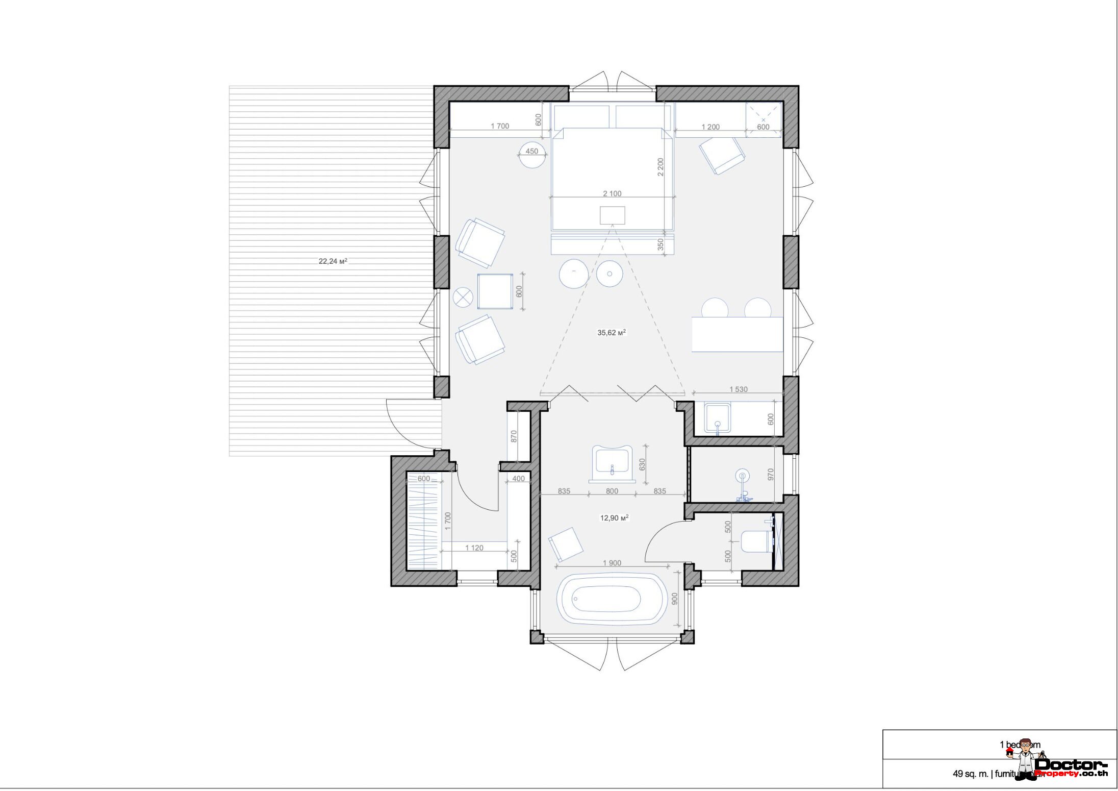 วิลล่าหนึ่งห้องนอนสุดหรูหลังนี้ถือเป็นโอกาสพิเศษในการเป็นเจ้าของบ้านสไตล์ร่วมสมัยบนทำเลทองบนเกาะสมุย ท่ามกลางบรรยากาศอันหรูหราของเฉวงน้อย ตัวบ้านได้รับการออกแบบอย่างพิถีพิถันเพื่อตอบสนองความต้องการของชีวิตสมัยใหม่ ผสมผสานความสะดวกสบาย และสไตล์ที่หรูหรา ด้วยพื้นที่ใช้สอยประมาณ 49 ตารางเมตร วิลล่าหลังนี้จึงได้สัดส่วนอย่างลงตัว มอบความสมดุลที่ลงตัวระหว่างพื้นที่ใช้สอยส่วนตัวและพื้นที่ใช้สอยอเนกประสงค์