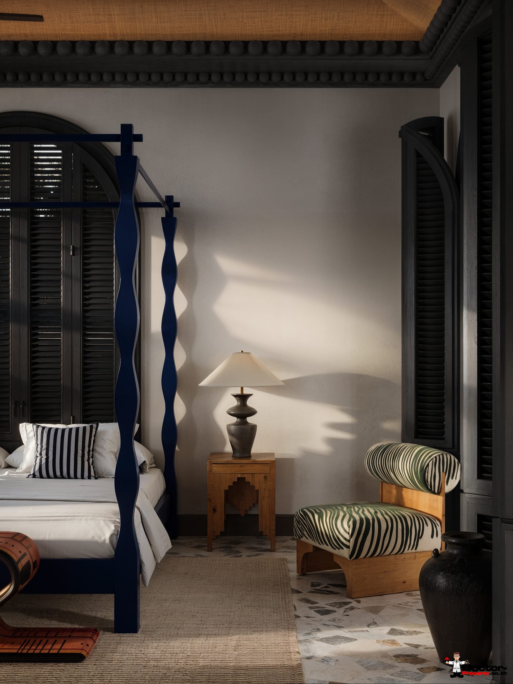การออกแบบภายในได้รับการออกแบบอย่างพิถีพิถันเพื่อให้แสงสว่างและการไหลเวียนของอากาศเป็นไปอย่างมีประสิทธิภาพสูงสุด พื้นที่ใช้สอยแบบเปิดโล่งที่กว้างขวางผสานพื้นที่นั่งเล่นและรับประทานอาหารเข้ากับห้องครัวที่ตกแต่งอย่างครบครัน สร้างสภาพแวดล้อมที่ลงตัวเหมาะสำหรับทั้งการอยู่อาศัยและสังสรรค์ หน้าต่างบานใหญ่ช่วยให้แสงธรรมชาติส่องผ่านเข้ามาในบ้าน ช่วยเพิ่มความรู้สึกโล่งโปร่งสบายและเชื่อมต่อกับบรรยากาศเขตร้อน ห้องนอนมีขนาดกว้างขวาง ให้บรรยากาศที่เงียบสงบ ส่วนห้องน้ำตกแต่งด้วยเฟอร์นิเจอร์และอุปกรณ์ตกแต่งที่ทันสมัย สะท้อนถึงความมุ่งมั่นในคุณภาพและความใส่ใจในรายละเอียด
