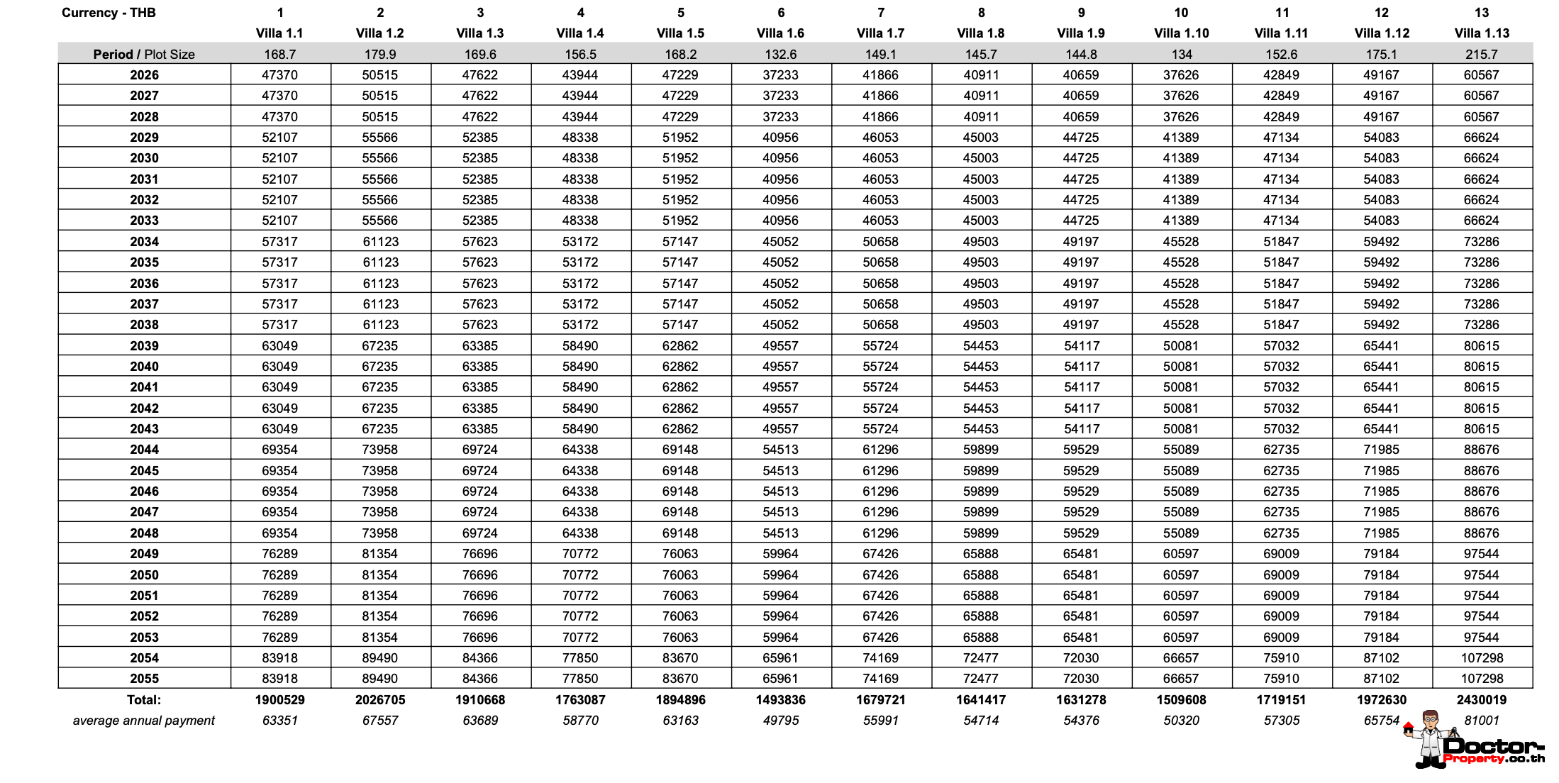 | Villa No. | Beds/Bath | Land (m2) | Build (m2) | Price (THB) Ex. Land |