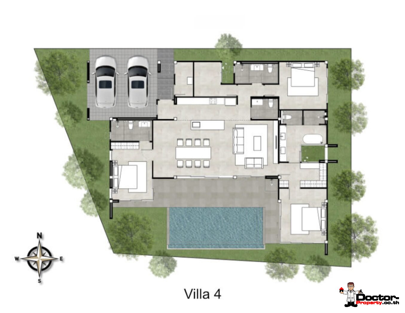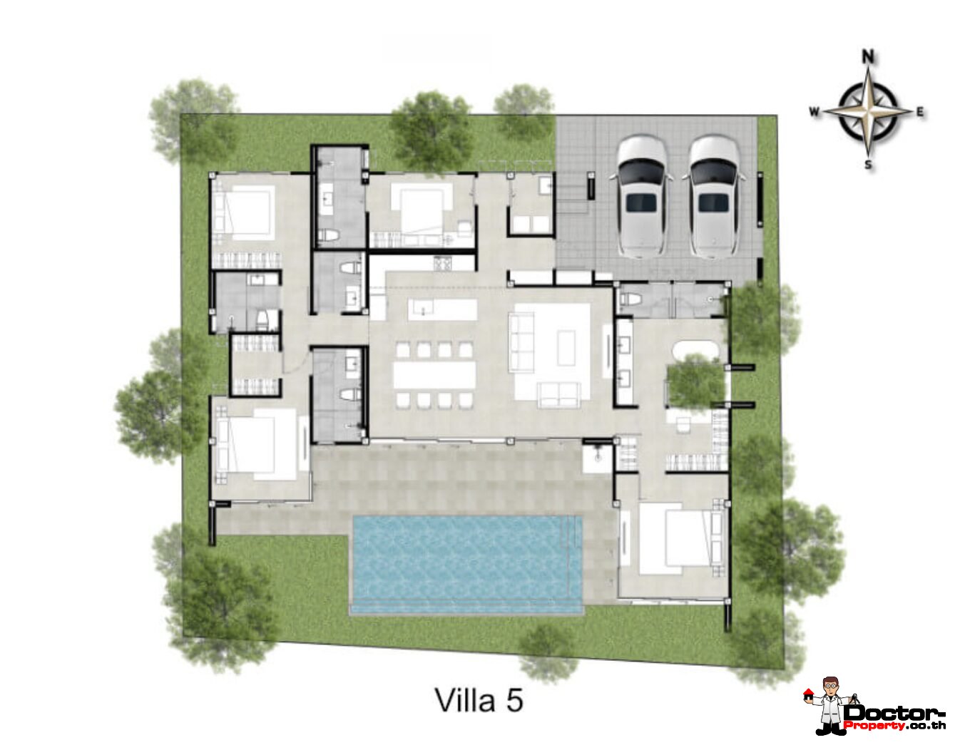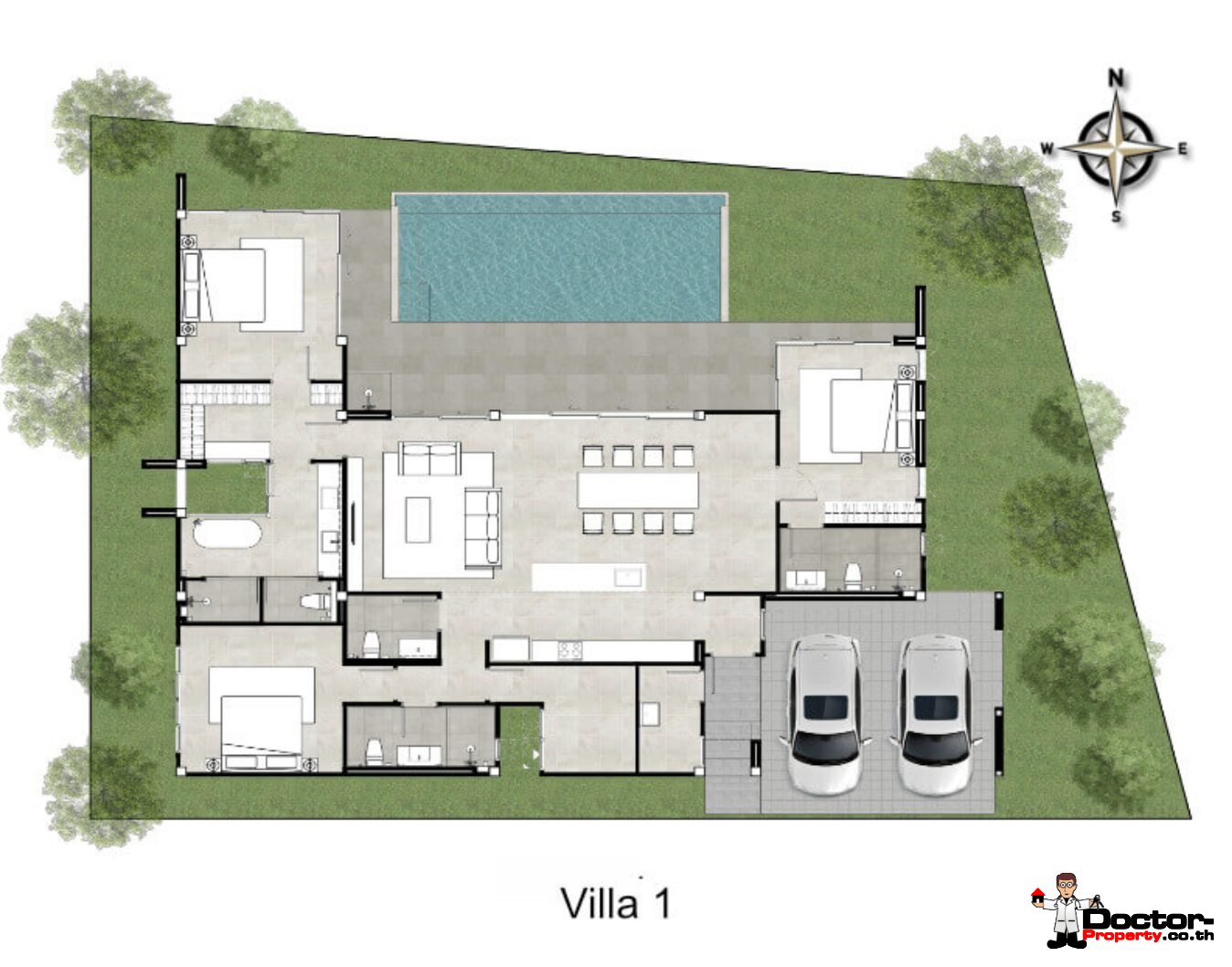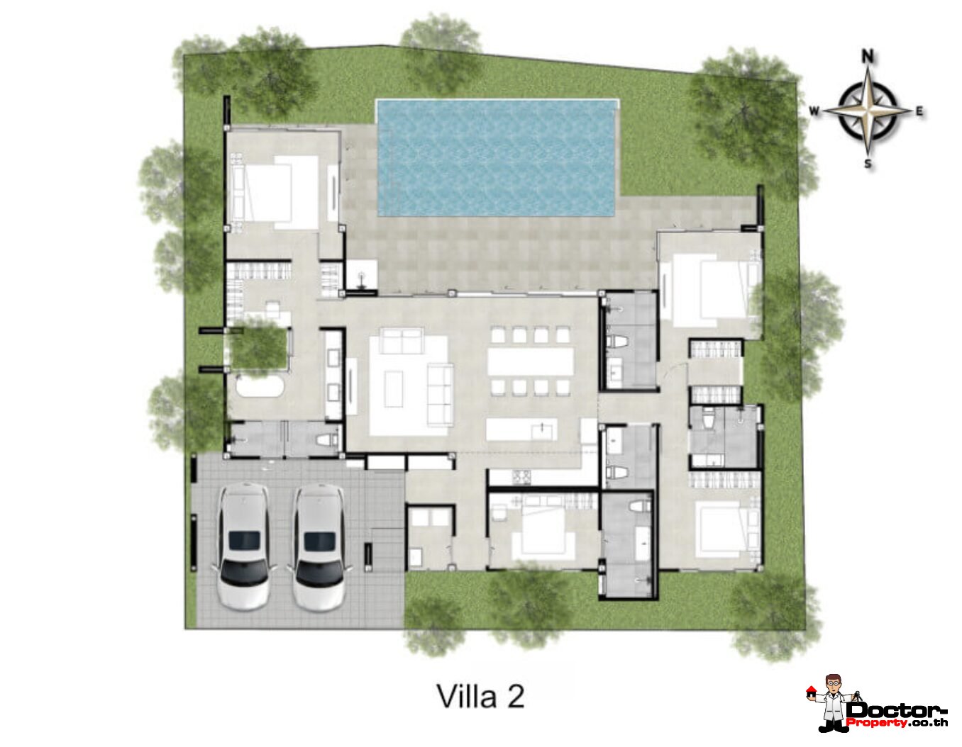 วิลล่าแบบ A มี 3 ห้องนอน 3.5 ห้องน้ำ พื้นที่ใช้สอย 295 ตารางเมตร แต่ละวิลล่ามีสระว่ายน้ำส่วนตัวระบบน้ำเค็มขนาด 8 x 3 เมตร พื้นที่นั่งเล่นแบบเปิดโล่ง และสวนหย่อมที่ตกแต่งอย่างสวยงาม เหมาะสำหรับการใช้ชีวิตบนเกาะเขตร้อน การออกแบบเน้นแสงธรรมชาติ พื้นที่ภายในกว้างขวาง และการเชื่อมต่อระหว่างพื้นที่ภายในและภายนอกอย่างลงตัว ทำให้เหมาะสำหรับครอบครัวหรือนักลงทุนที่กำลังมองหาที่พักผ่อนอย่างมีสไตล์ วิลล่าแบบ B มีขนาดใหญ่กว่า โดยมีพื้นที่ใช้สอย 306 ตารางเมตร ประกอบด้วย 4 ห้องนอนและ 4.5 ห้องน้ำ วิลล่าเหล่านี้มีพื้นที่ใช้สอยกว้างขวาง ความเป็นส่วนตัวสูง และศักยภาพในการให้เช่าที่ดีเยี่ยม เหมาะสำหรับผู้ที่ต้องการพื้นที่ใช้สอยที่กว้างขวางกว่า