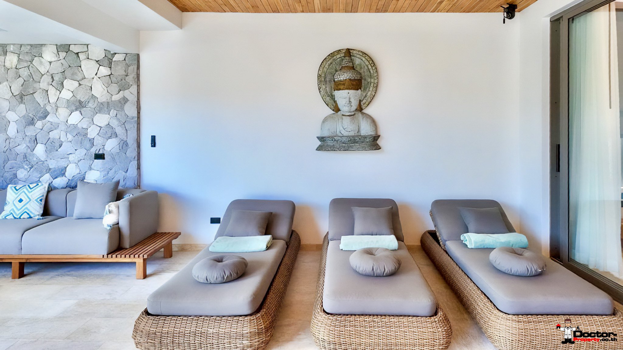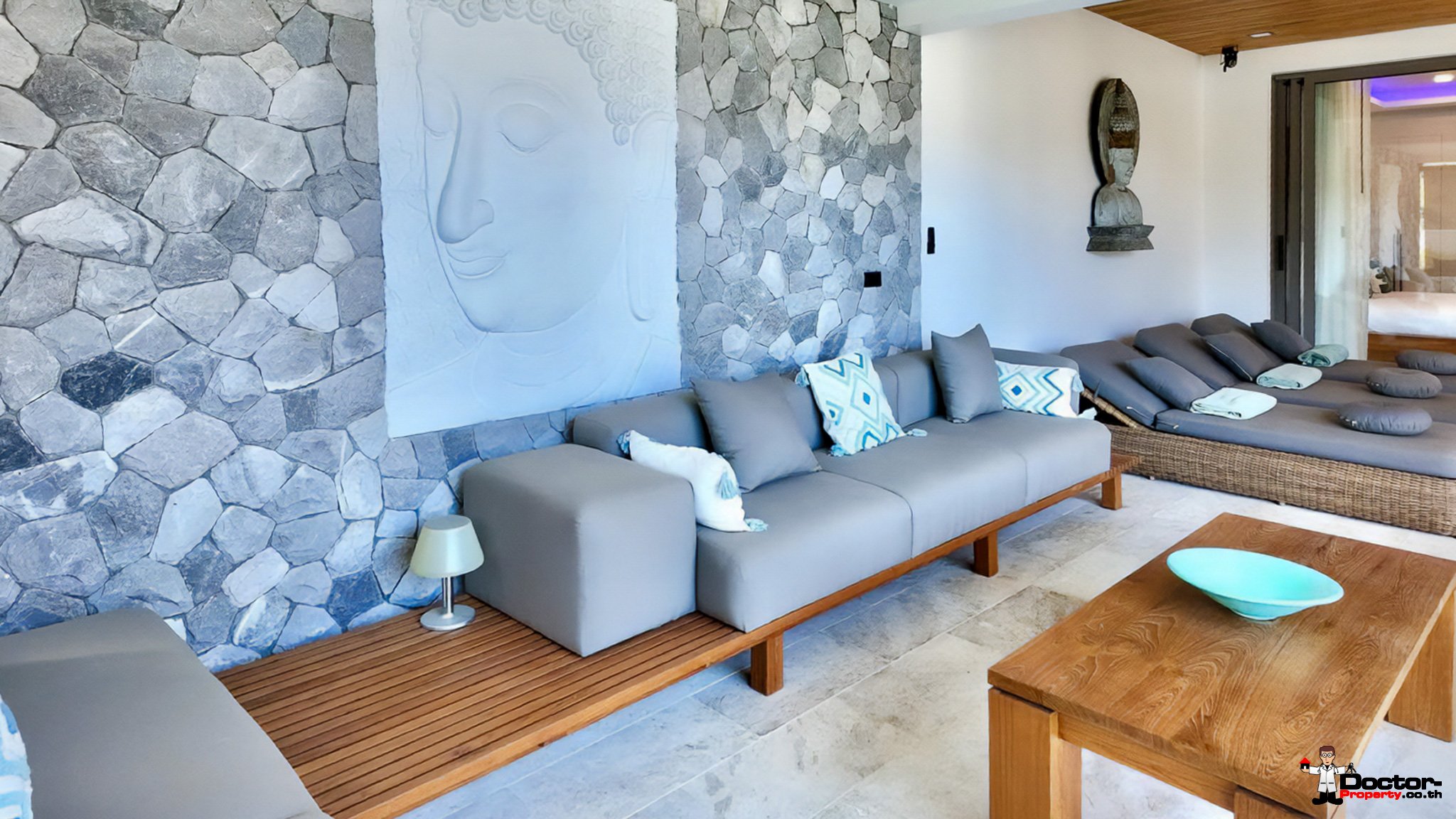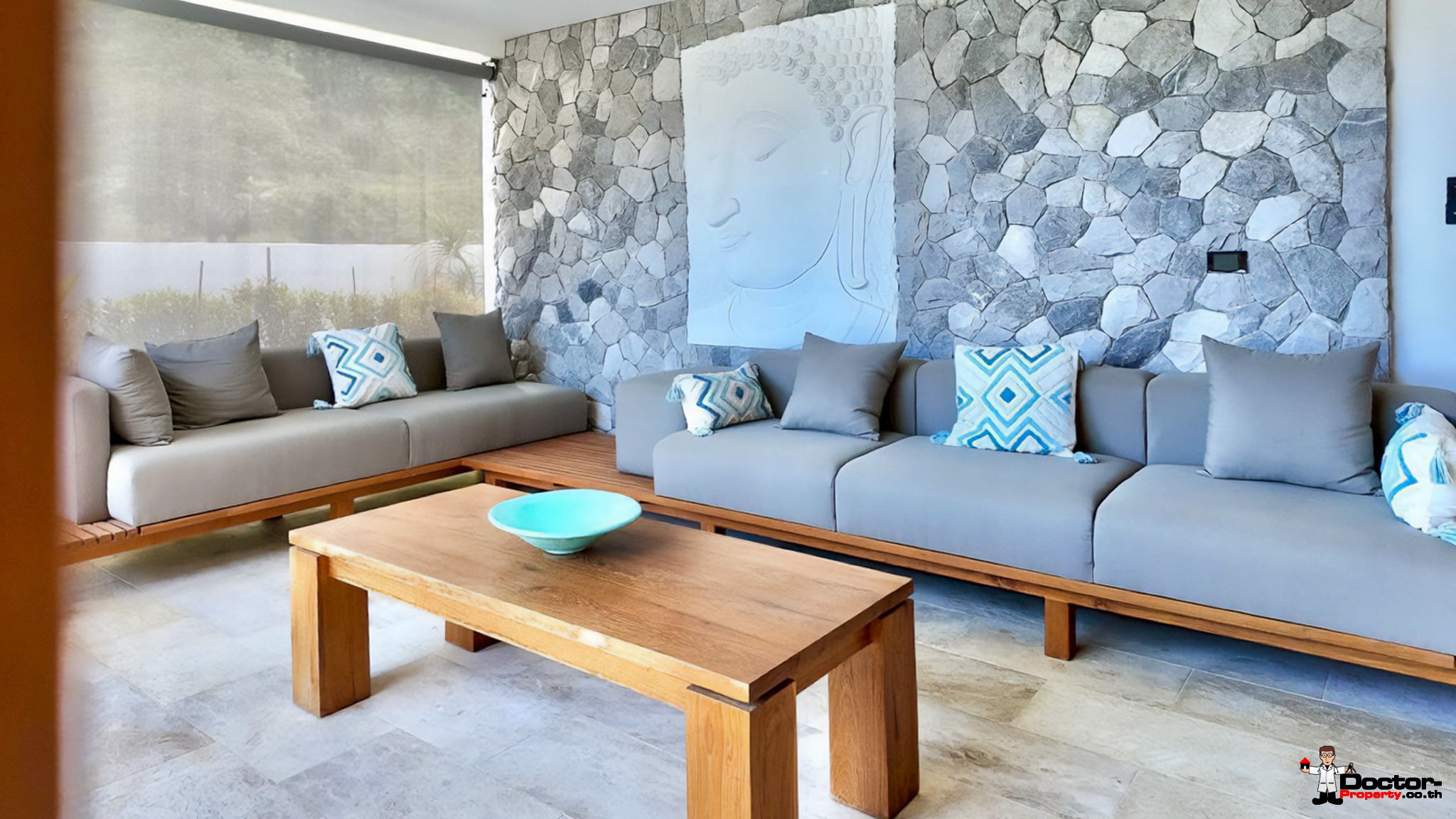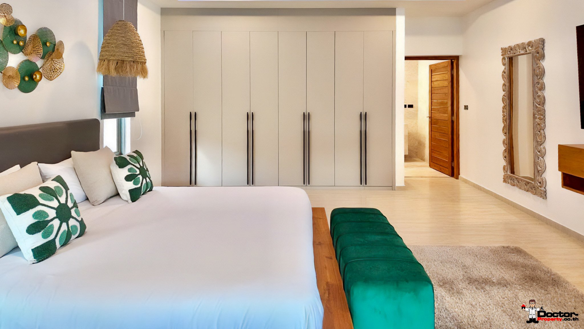 วิลล่าหลังนี้ตั้งอยู่บนพื้นที่กว้างขวาง 930 ตารางเมตร พื้นที่ใช้สอยรวม 510 ตารางเมตร ได้รับการออกแบบอย่างพิถีพิถันเพื่อมอบทั้งความสะดวกสบายและความหรูหรา ประกอบด้วยห้องนอนกว้างขวาง 5 ห้อง แต่ละห้องมีห้องน้ำในตัว และห้องน้ำสำหรับแขกอีก 1 ห้อง เพื่อความเป็นส่วนตัวและความสะดวกสบายสำหรับครอบครัวและผู้มาเยือน การตกแต่งภายในตกแต่งด้วยเฟอร์นิเจอร์ไม้สักและรายละเอียดต่างๆ ครบครัน เสริมด้วยหินทราเวอร์ทีนในห้องน้ำทุกห้องและบนระเบียง มอบความงามอันประณีตแต่ยังคงความเป็นธรรมชาติ ทุกห้องมีตู้เสื้อผ้าแบบบิลท์อินและแบบวอล์กอิน ส่วนห้องนั่งเล่นและห้องรับประทานอาหารแบบเปิดโล่งเชื่อมต่อกับพื้นที่กลางแจ้งได้อย่างกลมกลืน