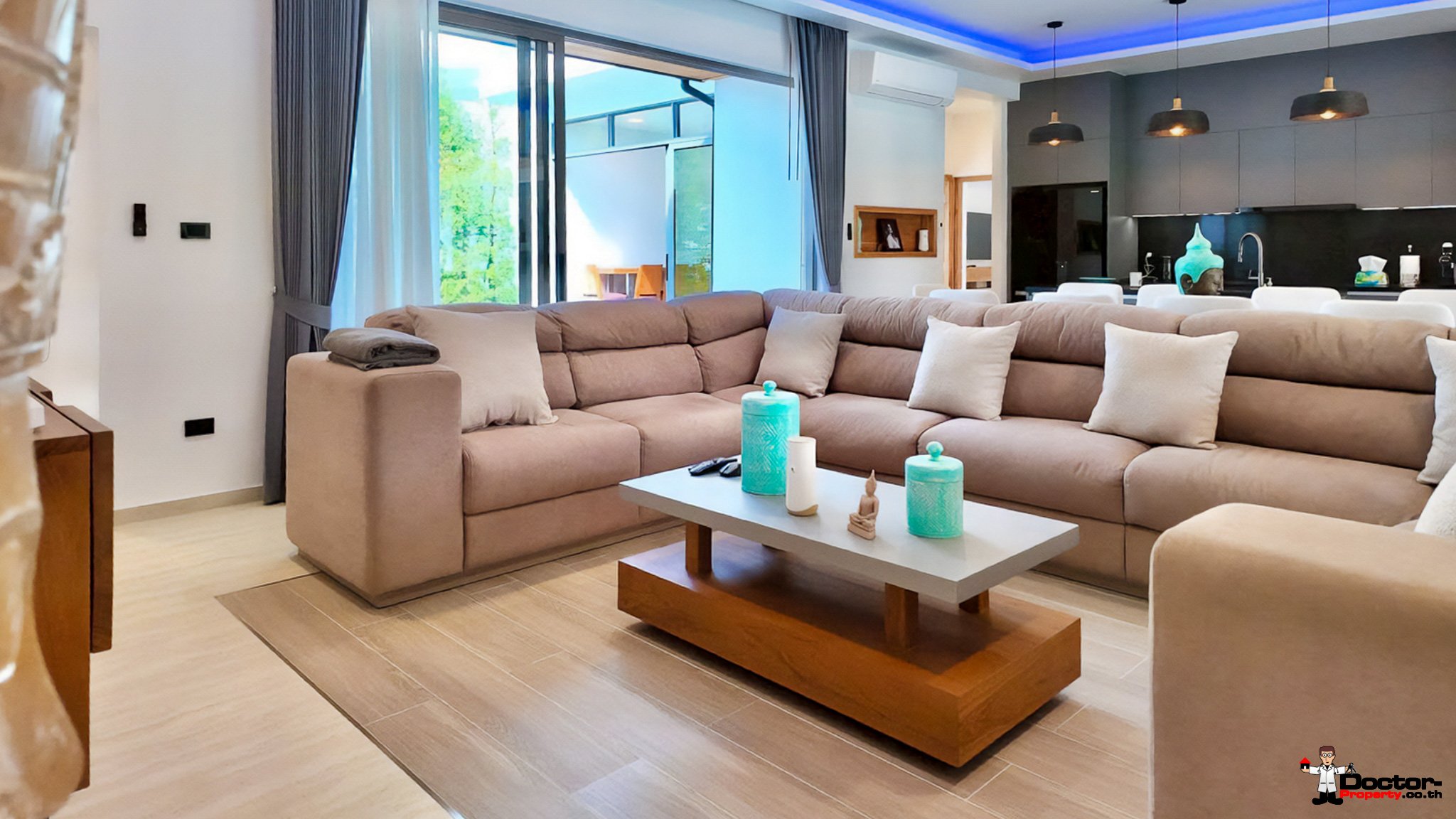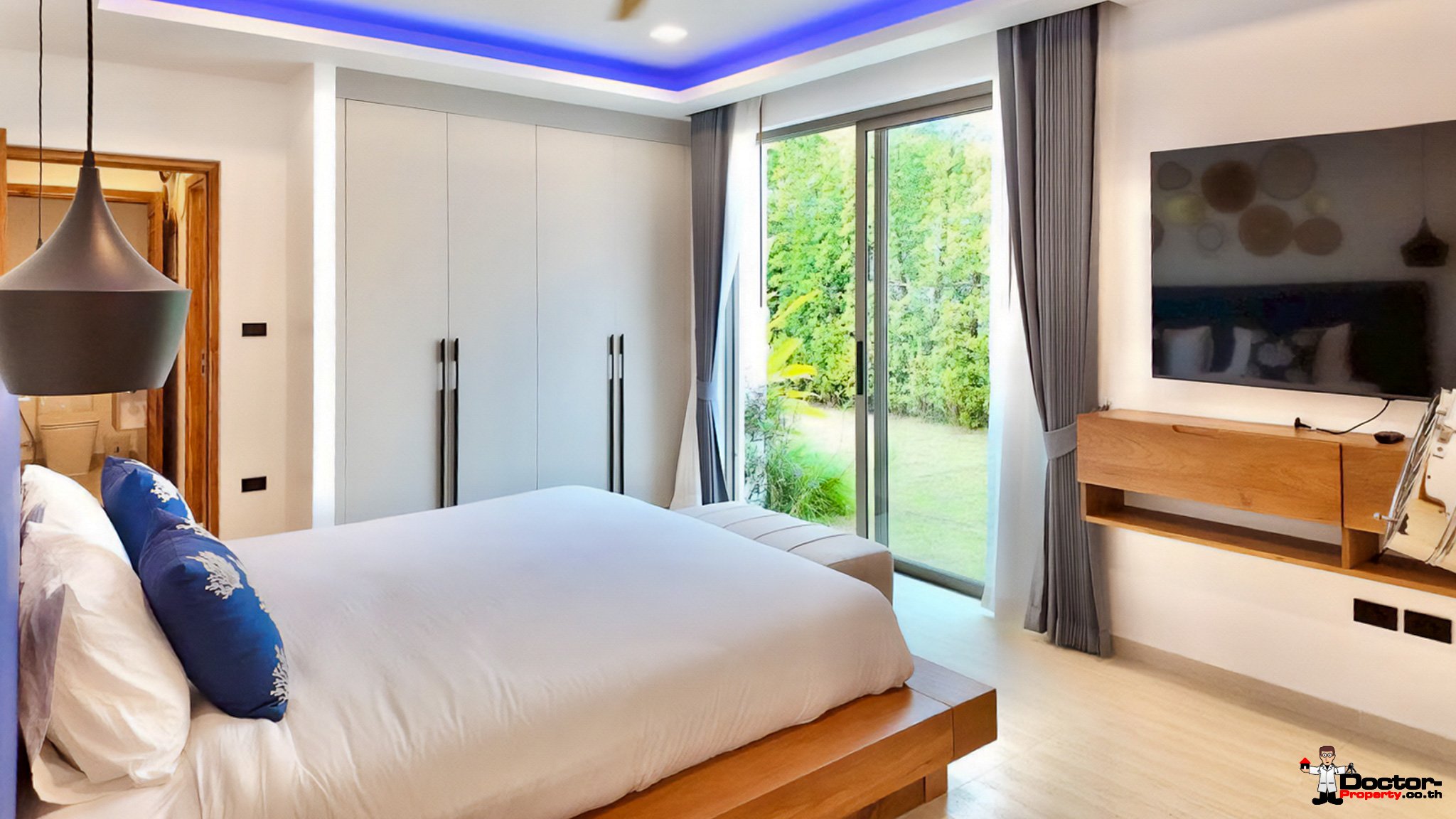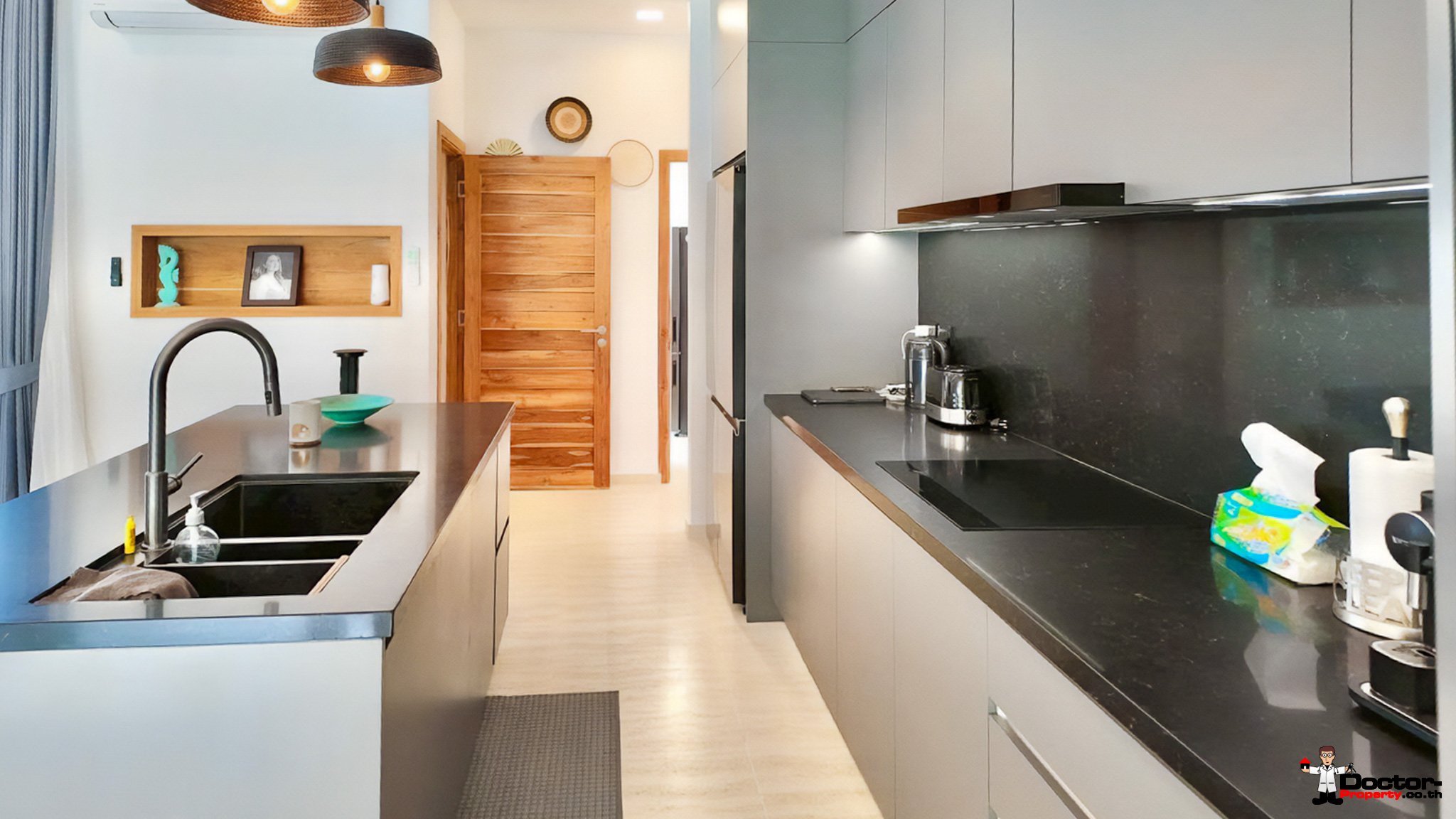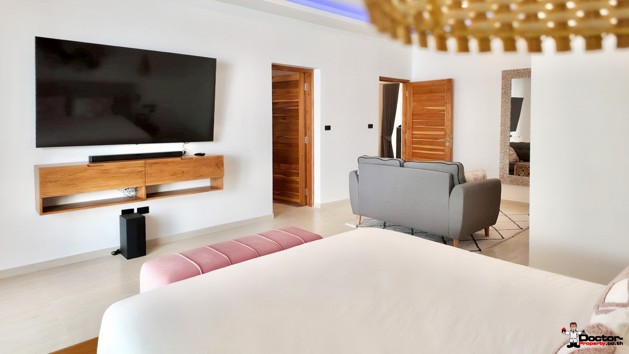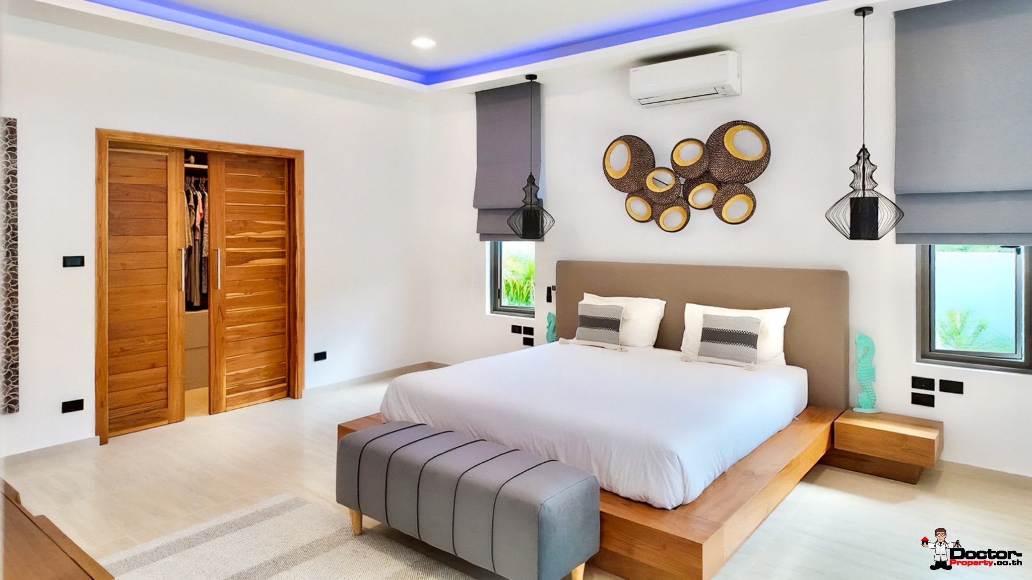 วิลล่าหลังนี้ตั้งอยู่บนพื้นที่กว้างขวาง 930 ตารางเมตร พื้นที่ใช้สอยรวม 510 ตารางเมตร ได้รับการออกแบบอย่างพิถีพิถันเพื่อมอบทั้งความสะดวกสบายและความหรูหรา ประกอบด้วยห้องนอนกว้างขวาง 5 ห้อง แต่ละห้องมีห้องน้ำในตัว และห้องน้ำสำหรับแขกอีก 1 ห้อง เพื่อความเป็นส่วนตัวและความสะดวกสบายสำหรับครอบครัวและผู้มาเยือน การตกแต่งภายในตกแต่งด้วยเฟอร์นิเจอร์ไม้สักและรายละเอียดต่างๆ ครบครัน เสริมด้วยหินทราเวอร์ทีนในห้องน้ำทุกห้องและบนระเบียง มอบความงามอันประณีตแต่ยังคงความเป็นธรรมชาติ ทุกห้องมีตู้เสื้อผ้าแบบบิลท์อินและแบบวอล์กอิน ส่วนห้องนั่งเล่นและห้องรับประทานอาหารแบบเปิดโล่งเชื่อมต่อกับพื้นที่กลางแจ้งได้อย่างกลมกลืน