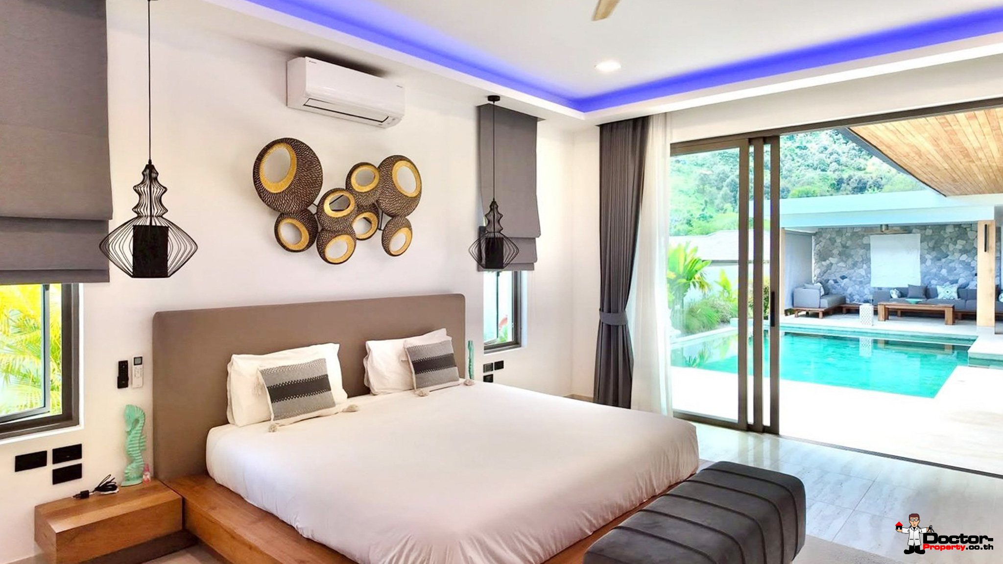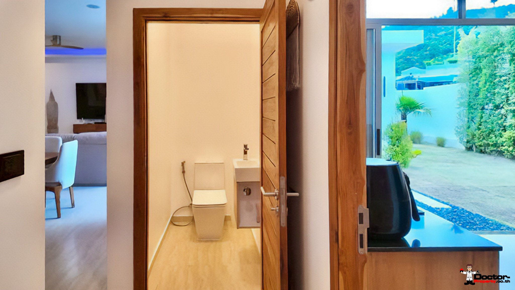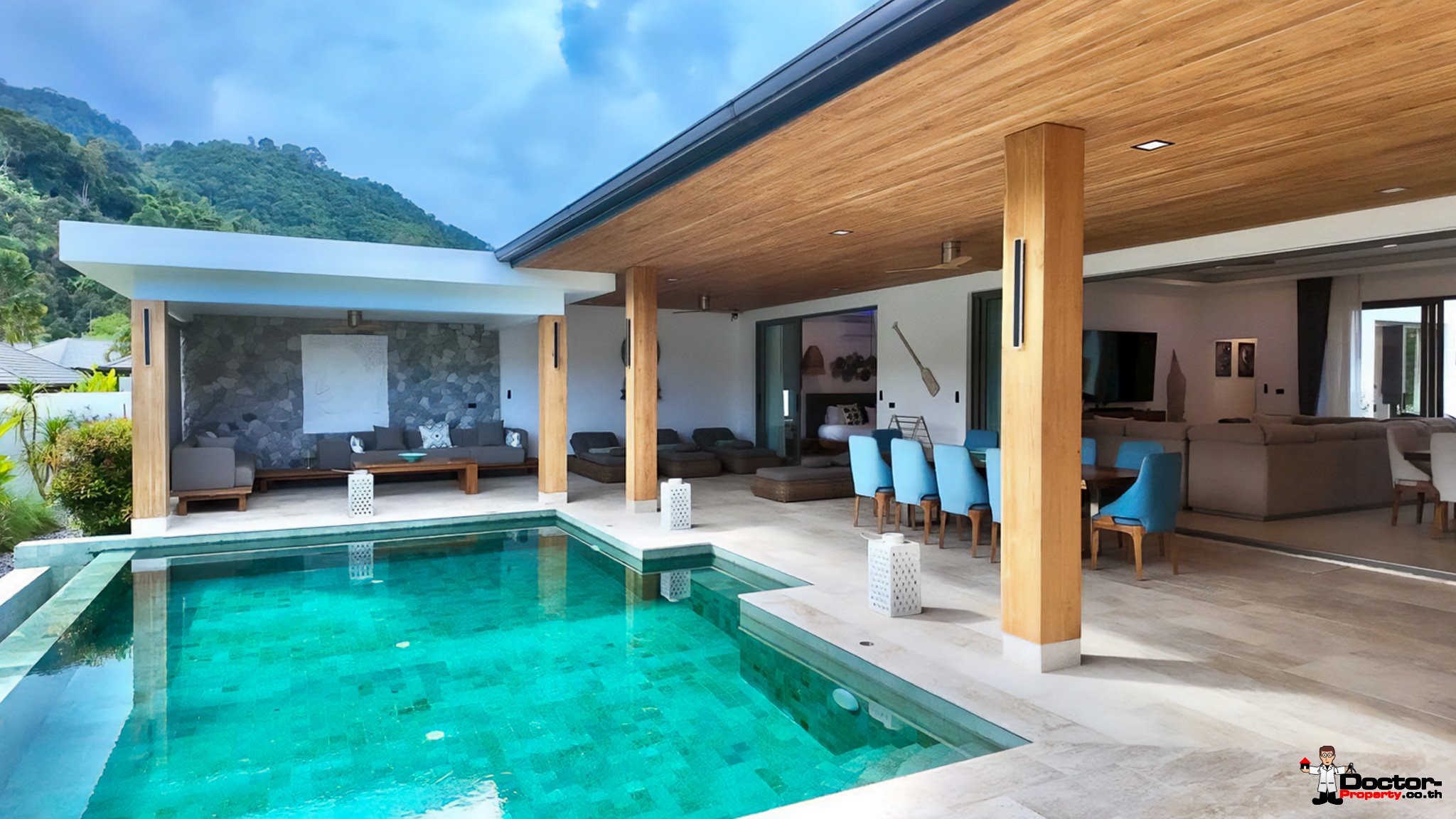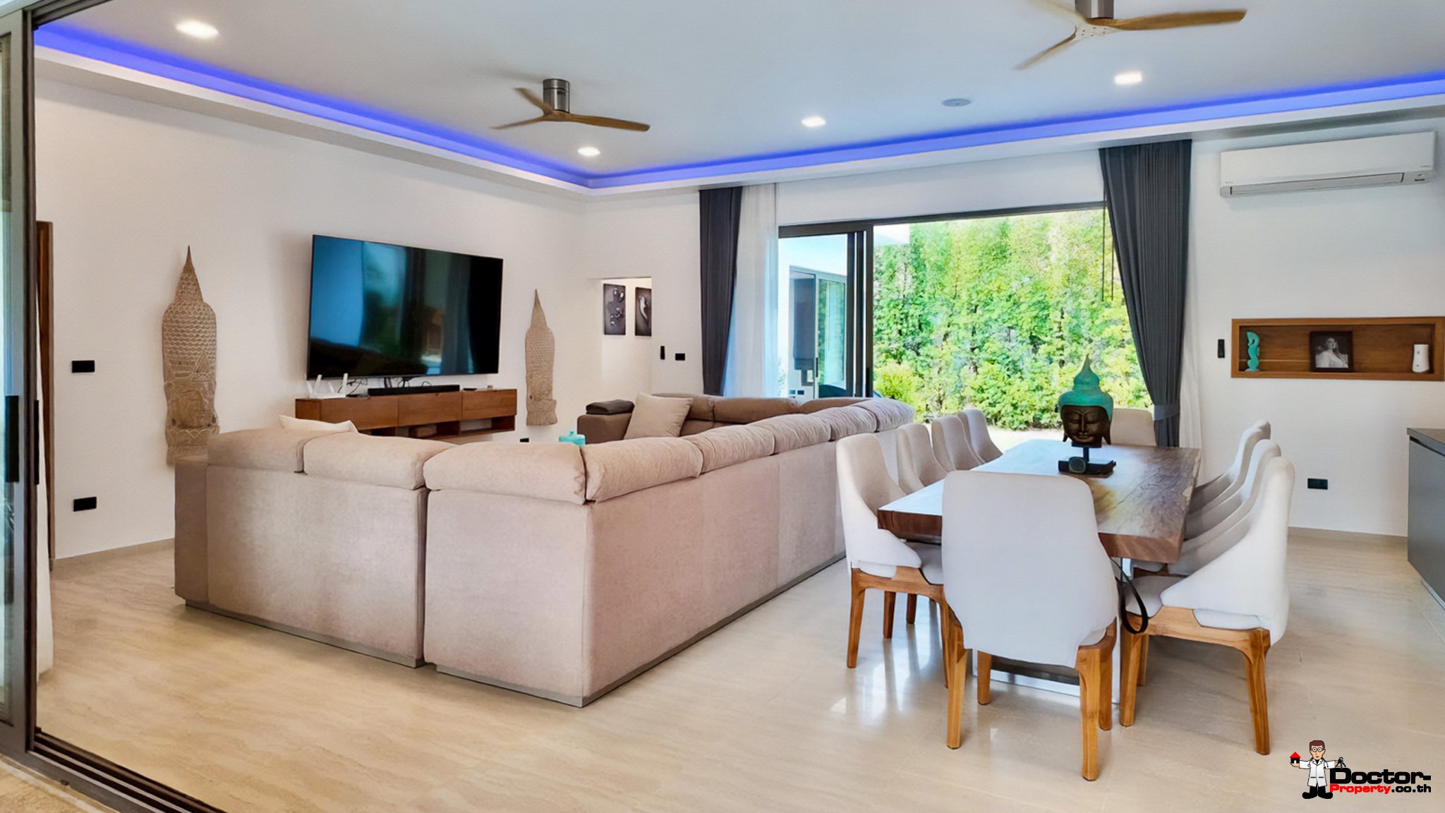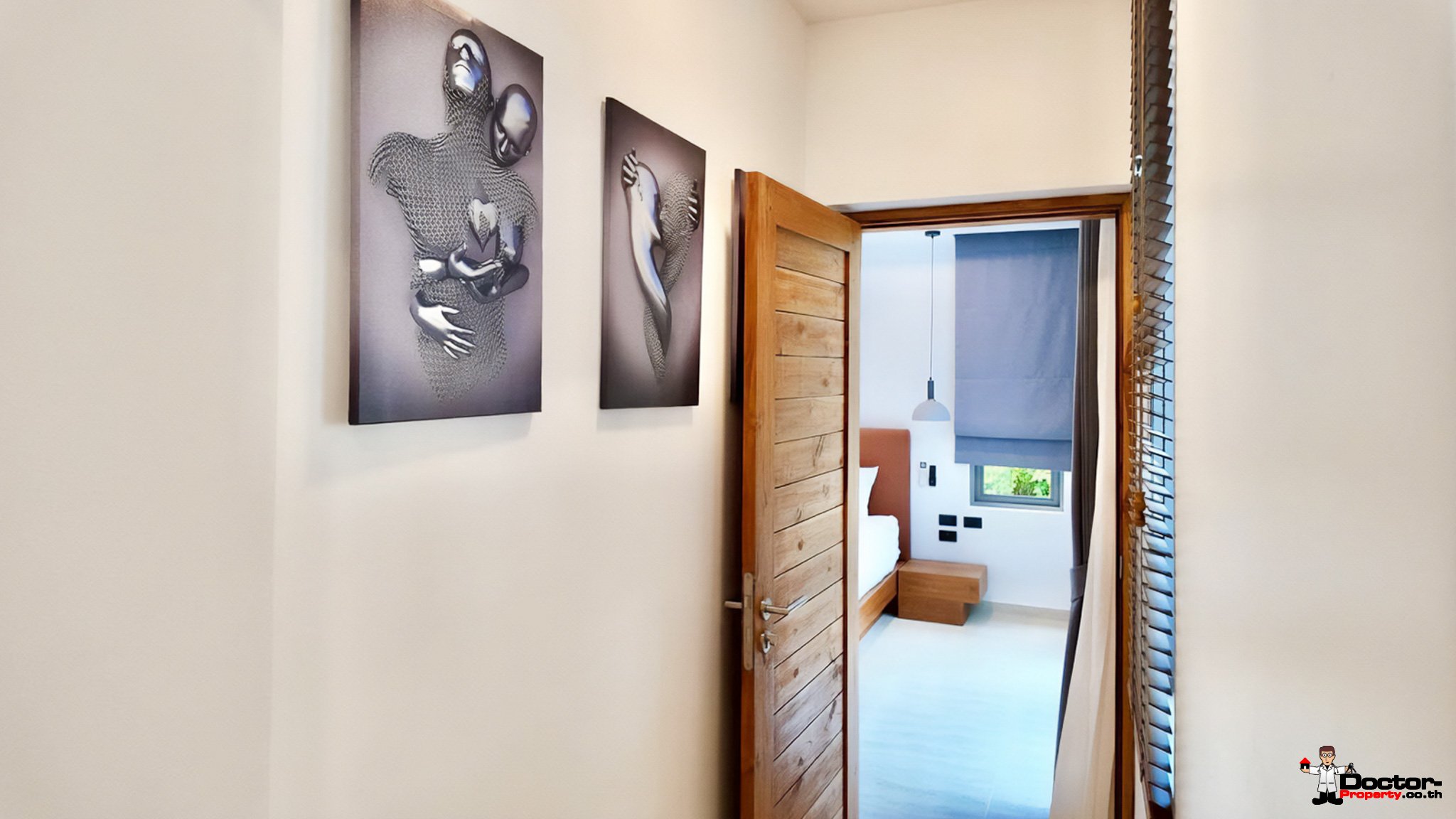 วิลล่าหลังนี้ตั้งอยู่บนพื้นที่กว้างขวาง 930 ตารางเมตร พื้นที่ใช้สอยรวม 510 ตารางเมตร ได้รับการออกแบบอย่างพิถีพิถันเพื่อมอบทั้งความสะดวกสบายและความหรูหรา ประกอบด้วยห้องนอนกว้างขวาง 5 ห้อง แต่ละห้องมีห้องน้ำในตัว และห้องน้ำสำหรับแขกอีก 1 ห้อง เพื่อความเป็นส่วนตัวและความสะดวกสบายสำหรับครอบครัวและผู้มาเยือน การตกแต่งภายในตกแต่งด้วยเฟอร์นิเจอร์ไม้สักและรายละเอียดต่างๆ ครบครัน เสริมด้วยหินทราเวอร์ทีนในห้องน้ำทุกห้องและบนระเบียง มอบความงามอันประณีตแต่ยังคงความเป็นธรรมชาติ ทุกห้องมีตู้เสื้อผ้าแบบบิลท์อินและแบบวอล์กอิน ส่วนห้องนั่งเล่นและห้องรับประทานอาหารแบบเปิดโล่งเชื่อมต่อกับพื้นที่กลางแจ้งได้อย่างกลมกลืน