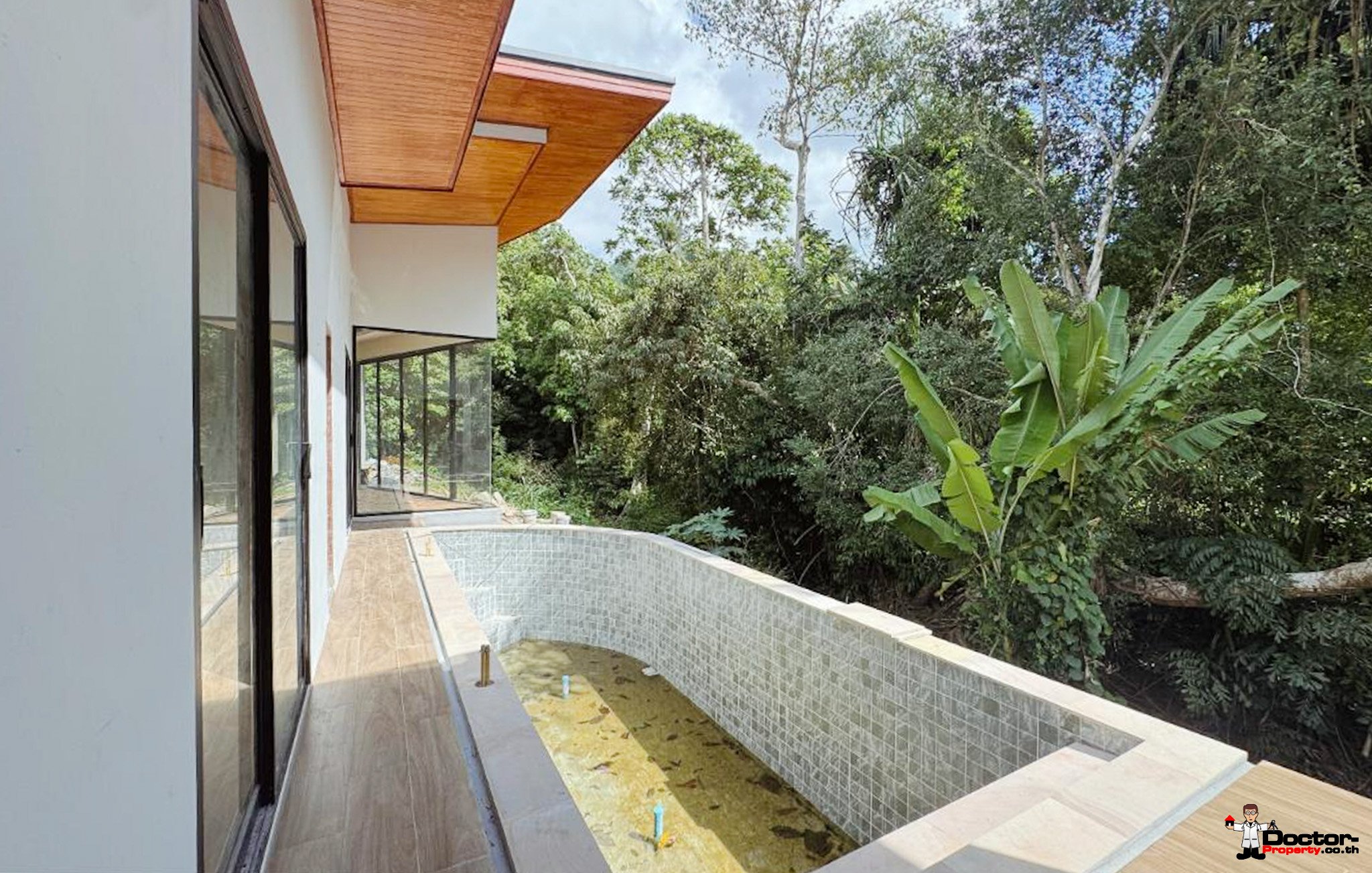 ตัววิลล่าเองมีพื้นที่กว้างขวางถึง 116 ตารางเมตร ตั้งอยู่บนที่ดินขนาด 336 ตารางเมตร ออกแบบด้วยสถาปัตยกรรมสมัยใหม่และเส้นสายที่เรียบง่าย มอบพื้นที่อยู่อาศัยร่วมสมัยที่สามารถปรับแต่งให้เข้ากับสไตล์ส่วนตัวของคุณได้ วิลล่านี้ไม่มีเฟอร์นิเจอร์ ทำให้คุณสามารถสร้างสรรค์การตกแต่งภายในในแบบของคุณเองได้ จุดเด่นของบ้านคือสระว่ายน้ำส่วนตัวขนาด 7 เมตร x 3 เมตร พร้อมระบบคลอรีนเพื่อการดูแลรักษาที่ง่ายดาย การใช้ชีวิตกลางแจ้งเป็นจุดเด่นสำคัญ ด้วยพื้นที่กว้างขวางสำหรับการพักผ่อนและผ่อนคลาย พร้อมชมวิวสวนโดยรอบและน้ำตกใกล้เคียง การผสมผสานระหว่างความสะดวกสบายภายในและความเงียบสงบภายนอก ทำให้วิลล่าแห่งนี้เหมาะอย่างยิ่งสำหรับการอยู่อาศัยถาวรและการพักผ่อนในวันหยุด