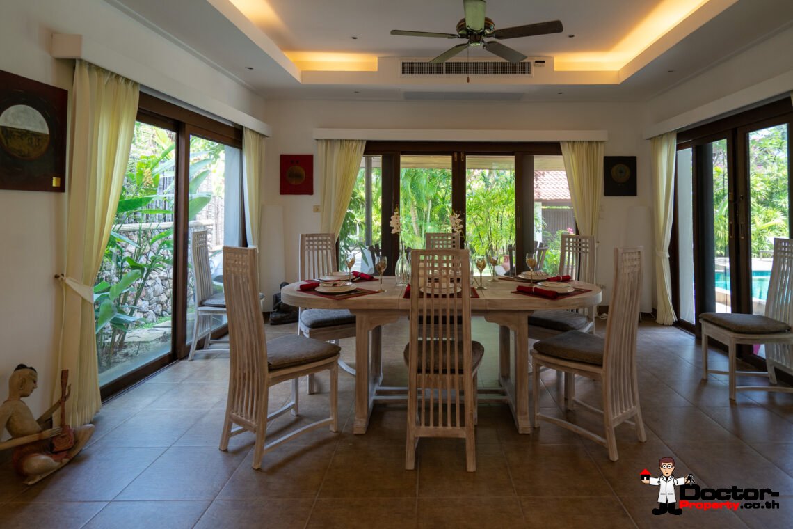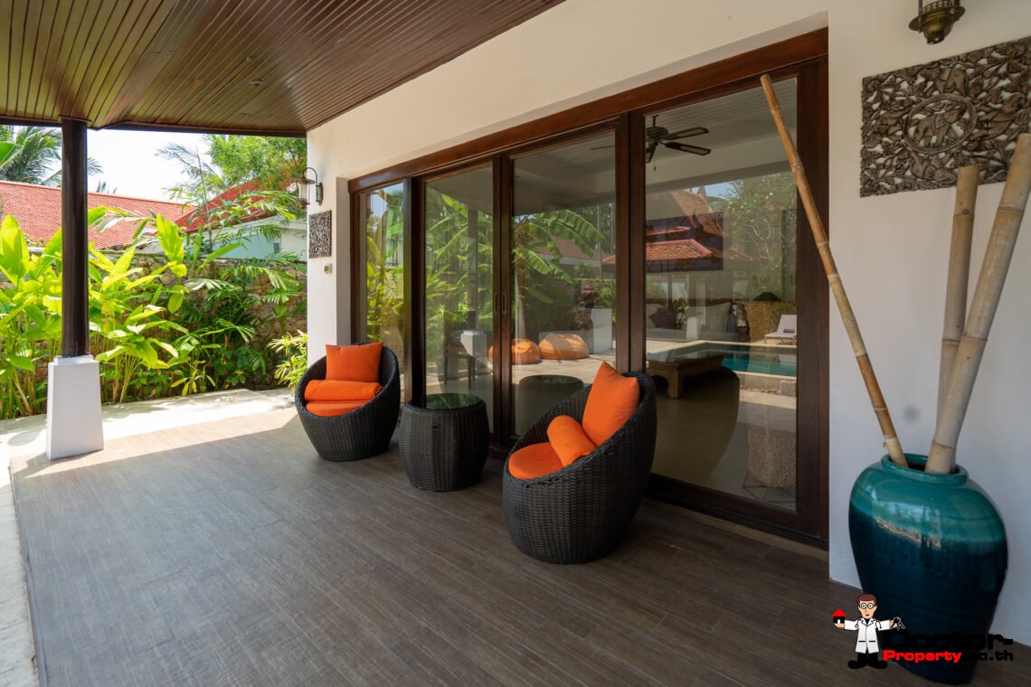 วิลล่าสวยงามแห่งนี้ มี 4 ห้องนอน ออกแบบสไตล์เอเชียดั้งเดิมพร้อมสระว่ายน้ำ เพียง 50 เมตร คุณจะพบกับหาดนาเทียน เกาะสมุย เมื่อเดินเข้าไป คุณจะพบกับวิลล่าสุดพิเศษที่เปิดพื้นที่กว้าง พร้อมกับมีห้องนอนที่สามารถเข้าถึงสระว่ายน้ำได้อย่างง่ายดาย พร้อมด้วยพื้นที่ห้องครัว และพื้นที่นั่งเล่นพร้อมทีวีอยู่กึ่งกลางของวิลล่าแห่งนี้ เมื่อเดินขึ้นบันได คุณจะพบกับห้องนอนใหญ่ เตียงคู่ และมีระบียงส่วนตัวแต่ละห้อง พร้อมวิวอันน่าทึ่ง นอกเหนือจากนี้ วิลล่าแห่งนี้สร้างเพิ่มเติม ในปี 2017 มีพื้นที่อพาร์ทเมนต์กับครัว พร้อมดาดฟ้า พร้อมพื้นที่นั่งเล่น คุณจะพบกับวิวทะเล และแสงแดดอันอบอุ่นตลอดทั้งวัน