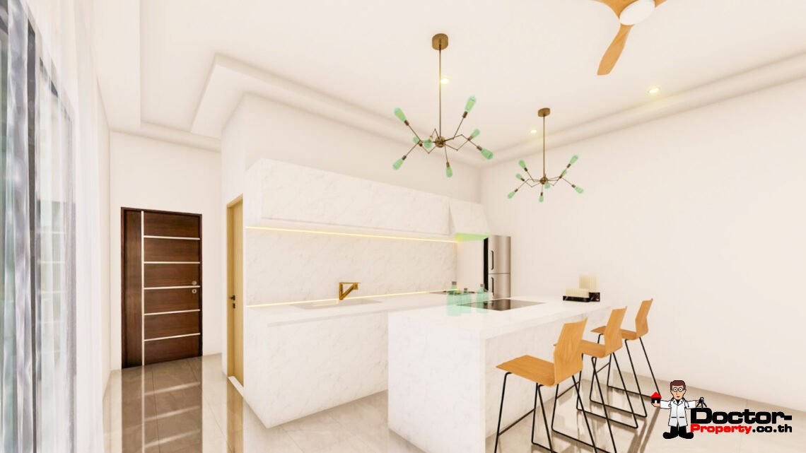 วิลล่ามีพื้นที่นั่งเล่นแบบเปิดโล่งกว้างขวางที่ไหลผ่านพื้นที่กลางแจ้งได้อย่างลงตัว ช่วยให้แสงธรรมชาติส่องถึงอย่างเต็มที่และสร้างบรรยากาศที่สดใสและโปร่งสบาย พื้นที่นั่งเล่นและรับประทานอาหารที่มีขนาดกว้างขวางเสริมด้วยครัวสไตล์ตะวันตกที่ทันสมัยพร้อมอุปกรณ์ครบครัน ประตูบานเลื่อนกระจกบานใหญ่เปิดออกสู่ระเบียงอาบแดดโดยตรง ช่วยให้สัมผัสประสบการณ์การใช้ชีวิตในร่มและกลางแจ้งที่เหนือระดับ สระว่ายน้ำส่วนตัวขนาด 8 x 3 เมตร ล้อมรอบด้วยสวนภูมิทัศน์ที่สวยงาม เป็นสถานที่พักผ่อนอันเงียบสงบ เหมาะสำหรับการพักผ่อนหย่อนใจท่ามกลางแสงแดดเขตร้อนในความเป็นส่วนตัวอย่างสมบูรณ์