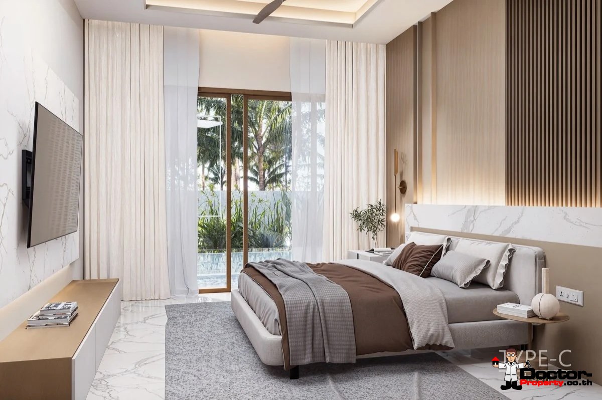 ภายในโครงการ วิลล่าประเภท C ประกอบด้วย 11 ยูนิต แต่ละยูนิตตั้งอยู่บนพื้นที่กว้างขวางประมาณ 400 ตารางเมตร บ้านพักเหล่านี้ได้รับการออกแบบอย่างพิถีพิถันเพื่อจัดสรรพื้นที่ใช้สอยอย่างมีประสิทธิภาพ ด้วยรูปแบบที่ส่งเสริมการเปลี่ยนผ่านระหว่างการใช้ชีวิตภายในและภายนอกอาคารได้อย่างราบรื่น ที่ดินผืนใหญ่มีพื้นที่กว้างขวางสำหรับสวนภูมิทัศน์ สระว่ายน้ำส่วนตัว และพื้นที่พักผ่อนหย่อนใจ เพื่อให้ผู้อยู่อาศัยได้สัมผัสทั้งความหรูหราและความเงียบสงบอย่างเท่าเทียมกัน แนวคิดทางสถาปัตยกรรมผสมผสานสุนทรียศาสตร์ร่วมสมัยเข้ากับสภาพภูมิอากาศเขตร้อน ผสมผสานแสงธรรมชาติที่ส่องเข้ามาอย่างทั่วถึง การระบายอากาศที่มีประสิทธิภาพ และการจัดวางพื้นที่ใช้สอยแบบเปิดโล่ง ปรัชญาการออกแบบที่พิถีพิถันนี้ทำให้วิลล่าแต่ละหลังไม่เพียงแต่มอบความสะดวกสบาย แต่ยังมอบประสบการณ์การใช้ชีวิตบนเกาะที่สมบูรณ์แบบอีกด้วย