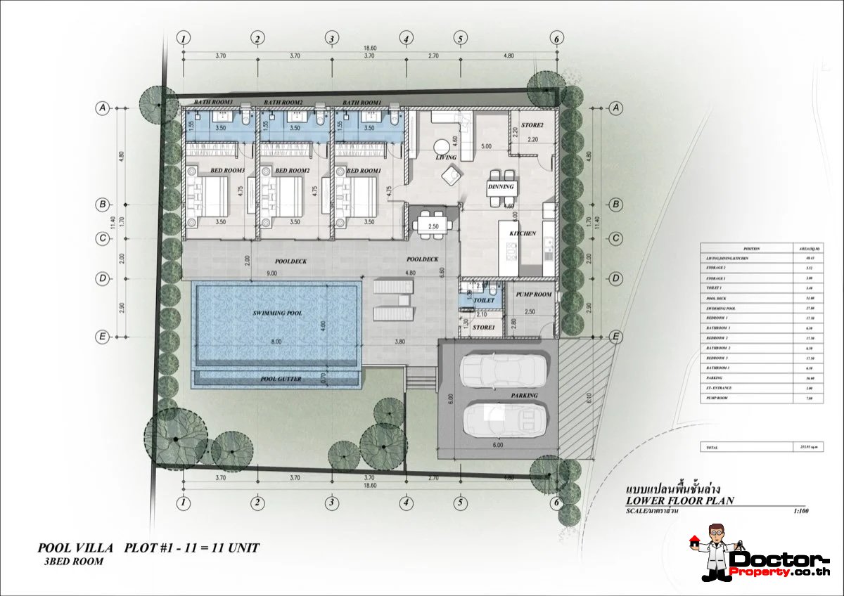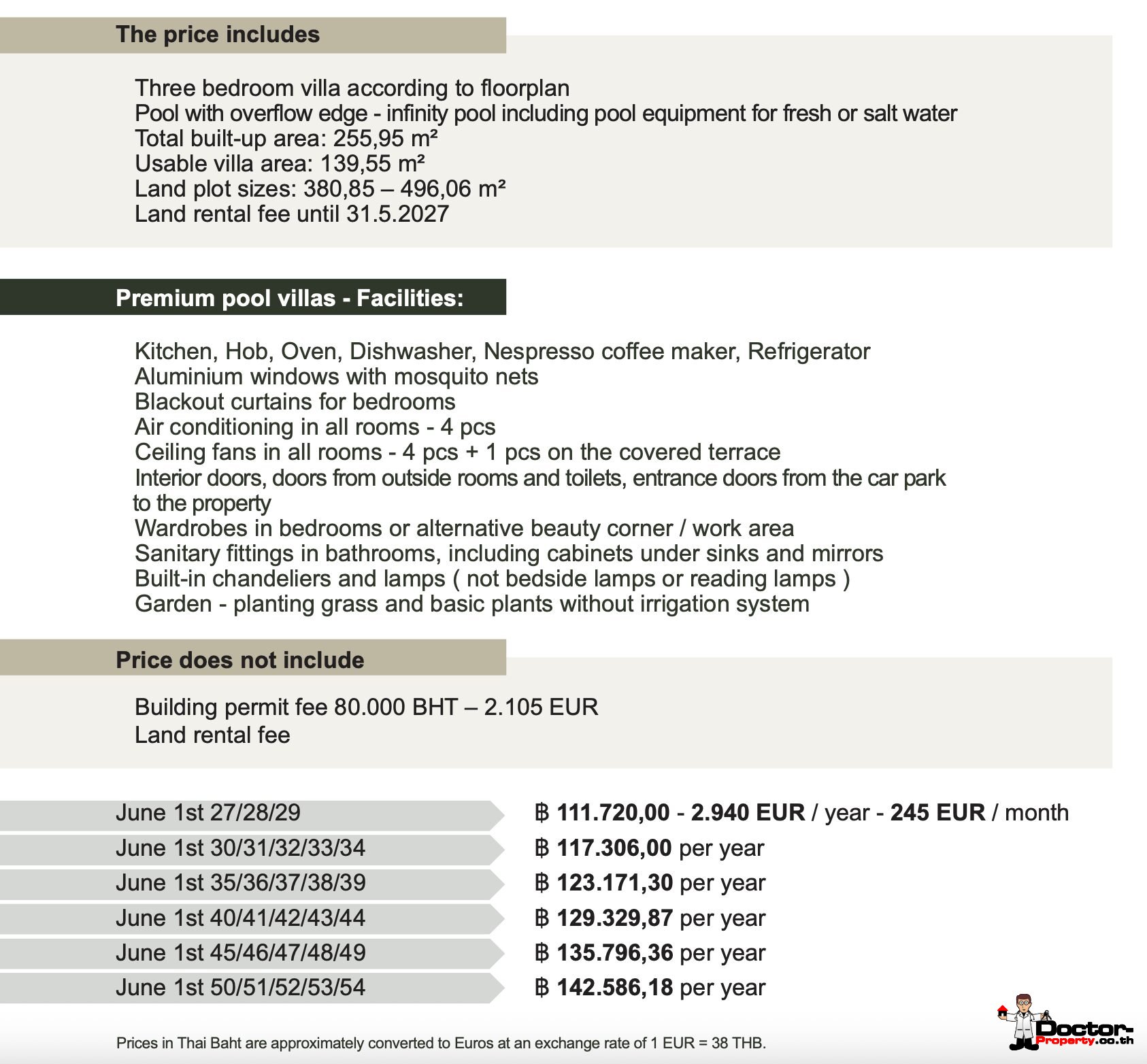 | Villa No. | Beds/Bath | Land (m2) | Build (m2) | Price (THB) Ex. Land |