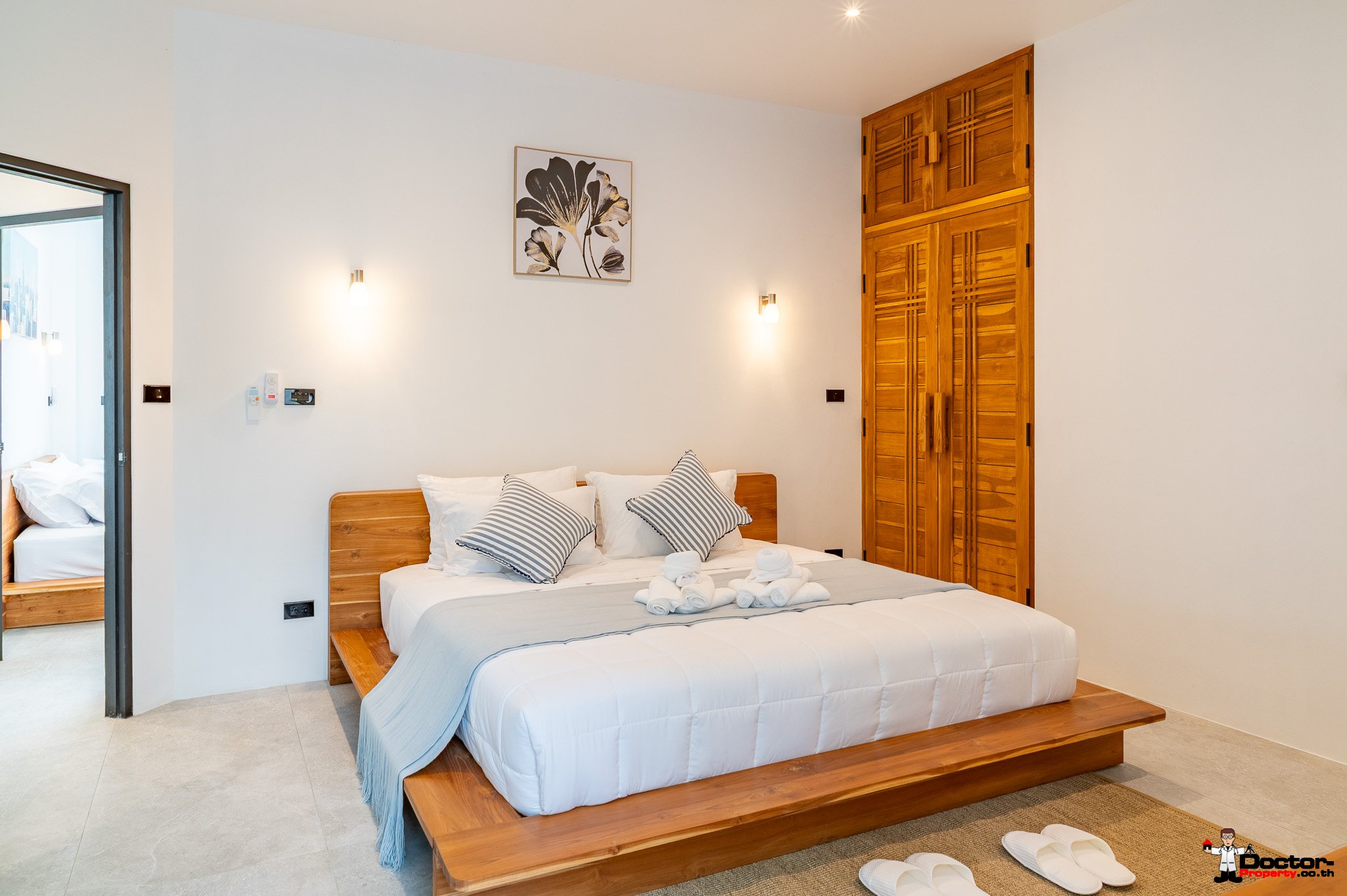 ขอแนะนำโครงการใหม่ที่ตั้งอยู่ในใจกลางละไม เกาะสมุย โครงการนี้มีวิลล่าสุดหรู 14 หลัง แต่ละหลังมีห้องนอน 3 ห้องและห้องน้ำ 3 ห้องภายในพื้นที่กว้างขวาง 150 ตารางเมตร เมื่อเข้าไป คุณจะพบกับสวนเขตร้อนอันเขียวชอุ่ม พื้นที่นั่งเล่นและรับประทานอาหารแบบเปิดโล่งได้รับการออกแบบมาเพื่อความสะดวกสบายและมีสไตล์ ทางด้านขวา คุณจะพบกับห้องนอน 1 พร้อมห้องน้ำในตัว ทางด้านซ้ายของวิลล่า ห้องนั่งเล่นและพื้นที่ครัวที่กว้างขวางได้รับการเติมเต็มด้วยห้องนอน 2 และ 3 ซึ่งแต่ละห้องมีห้องน้ำในตัวเช่นกัน เมื่อก้าวออกไป คุณจะพบกับสระว่ายน้ำส่วนตัว ศาลาอันมีเสน่ห์สำหรับการพักผ่อน พื้นที่เก็บของกลางแจ้ง และพื้นที่สำหรับจอดรถส่วนตัว 2 คัน