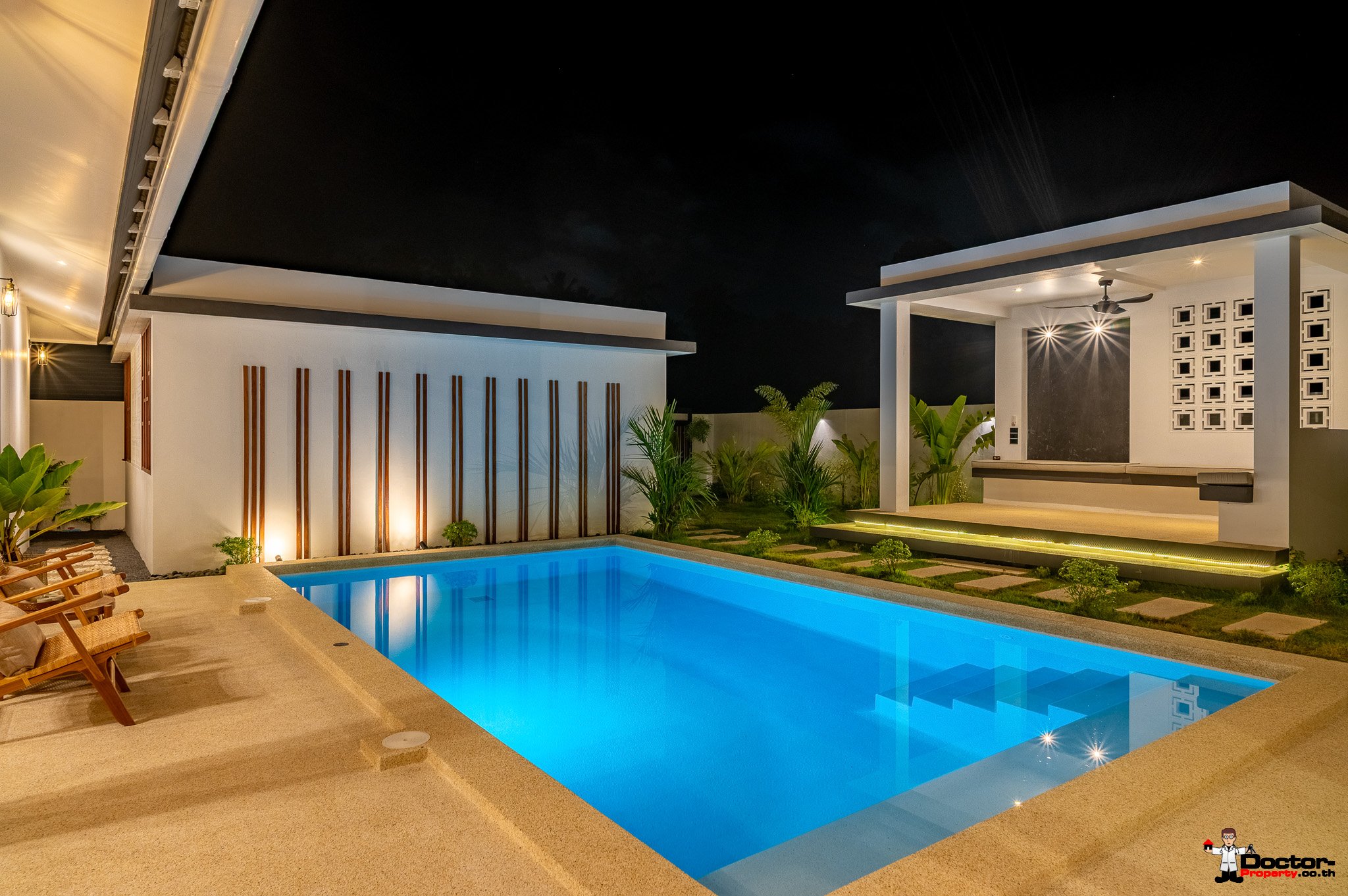 - สระว่ายน้ำส่วนตัว: เพลิดเพลินไปกับความหรูหราของสระว่ายน้ำส่วนตัวของคุณ ซึ่งเหมาะสำหรับการพักผ่อนหลังจากวันอันแสนยาวนาน หรือสำหรับการว่ายน้ำในตอนเช้าที่สดชื่น พื้นที่สระว่ายน้ำได้รับการออกแบบมาเพื่อความเป็นส่วนตัวและความผ่อนคลายสูงสุด มอบการพักผ่อนอันเงียบสงบภายในบ้านของคุณเอง