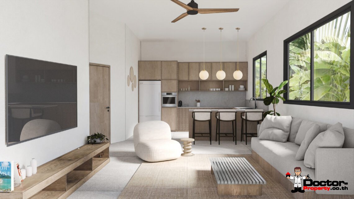 ขอแนะนำโครงการใหม่ที่ตั้งอยู่ในใจกลางละไม เกาะสมุย โครงการนี้มีวิลล่าสุดหรู 14 หลัง แต่ละหลังมีห้องนอน 3 ห้องและห้องน้ำ 3 ห้องภายในพื้นที่กว้างขวาง 150 ตารางเมตร เมื่อเข้าไป คุณจะพบกับสวนเขตร้อนอันเขียวชอุ่ม พื้นที่นั่งเล่นและรับประทานอาหารแบบเปิดโล่งได้รับการออกแบบมาเพื่อความสะดวกสบายและมีสไตล์ ทางด้านขวา คุณจะพบกับห้องนอน 1 พร้อมห้องน้ำในตัว ทางด้านซ้ายของวิลล่า ห้องนั่งเล่นและพื้นที่ครัวที่กว้างขวางได้รับการเติมเต็มด้วยห้องนอน 2 และ 3 ซึ่งแต่ละห้องมีห้องน้ำในตัวเช่นกัน เมื่อก้าวออกไป คุณจะพบกับสระว่ายน้ำส่วนตัว ศาลาอันมีเสน่ห์สำหรับการพักผ่อน พื้นที่เก็บของกลางแจ้ง และพื้นที่สำหรับจอดรถส่วนตัว 2 คัน