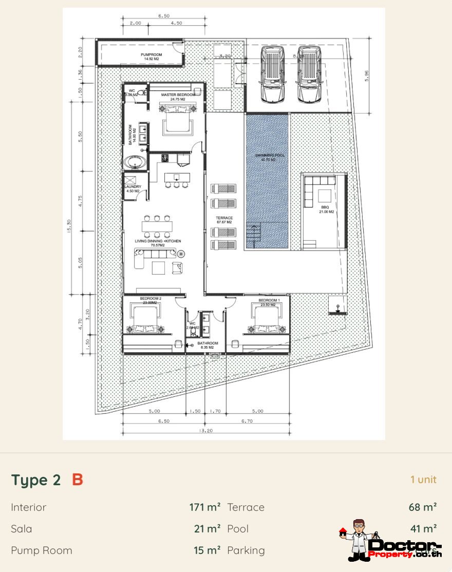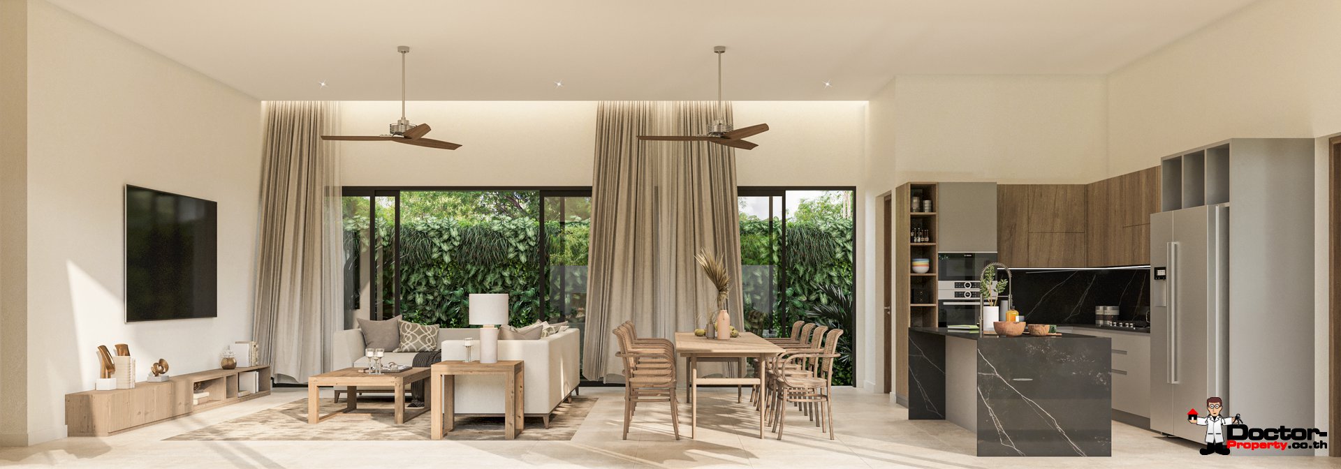 วิลล่าแต่ละหลังเป็นบ้านชั้นเดียว ตกแต่งบางส่วน สร้างตามมาตรฐานยุโรปด้วยความใส่ใจในรายละเอียดอย่างพิถีพิถัน พื้นที่ใช้สอยกว้างขวางตั้งแต่ 312 ถึง 316 ตารางเมตร ให้พื้นที่มากมายสำหรับการอยู่อาศัยของครอบครัวหรือการพักผ่อนในวันหยุด ภายในมีการจัดวางแบบเปิดโล่งที่เชื่อมต่อพื้นที่ภายในและภายนอกได้อย่างลงตัว ในขณะที่สระว่ายน้ำส่วนตัวเป็นจุดศูนย์กลางของการพักผ่อนและผ่อนคลาย การตกแต่งที่หรูหรา อุปกรณ์ที่ทันสมัย ​​และความสมดุลระหว่างฟังก์ชันการใช้งานและสไตล์ ทำให้วิลล่าเหล่านี้เป็นตัวเลือกที่เหมาะสำหรับผู้ที่มองหาวิถีชีวิตที่เงียบสงบแต่หรูหราบนเกาะสมุย