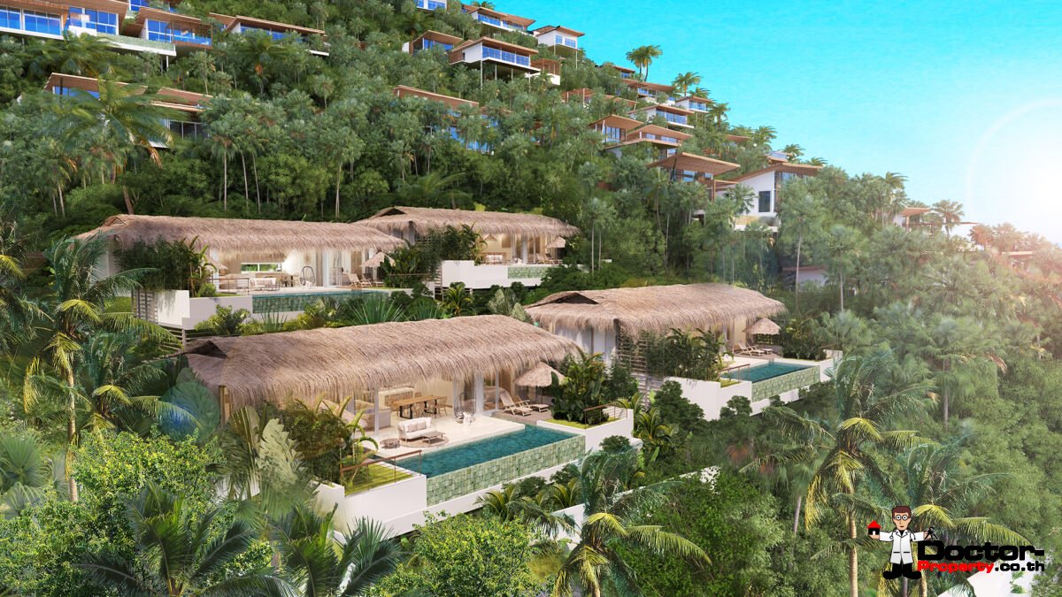 This is a well-constructed Estate of 30 customizable villas for sale, each villa is built and finished with slightly different designs. The estate is sitting on 33,600 sqm. of land looking directly north towards Koh Phangan and Angthong Marine Park. The Estate offers a breathtaking panorama view with seclusion for its residents. The villas plot sizes range is from 750 sqm. to 1700 sqm.